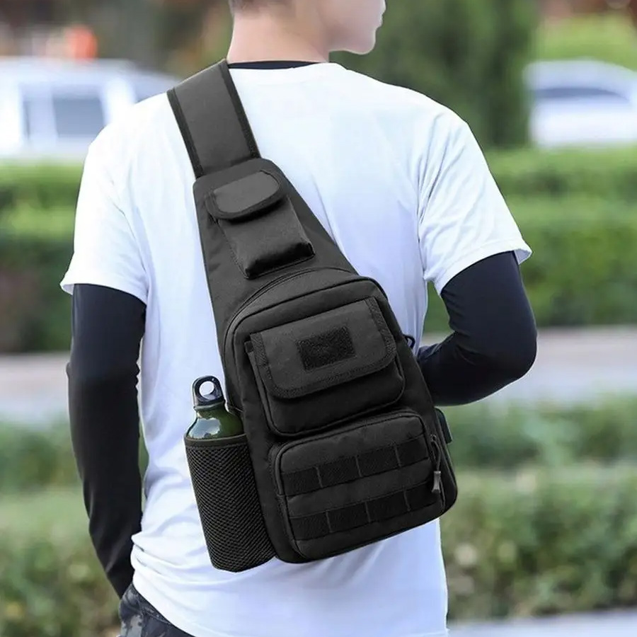 Чоловіча тактична сумка, велика укріплена сумка-слінг через чорне плече