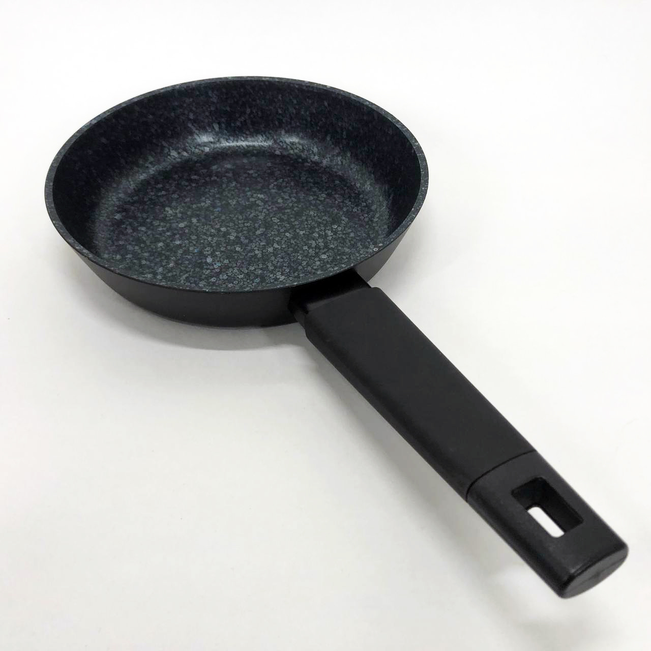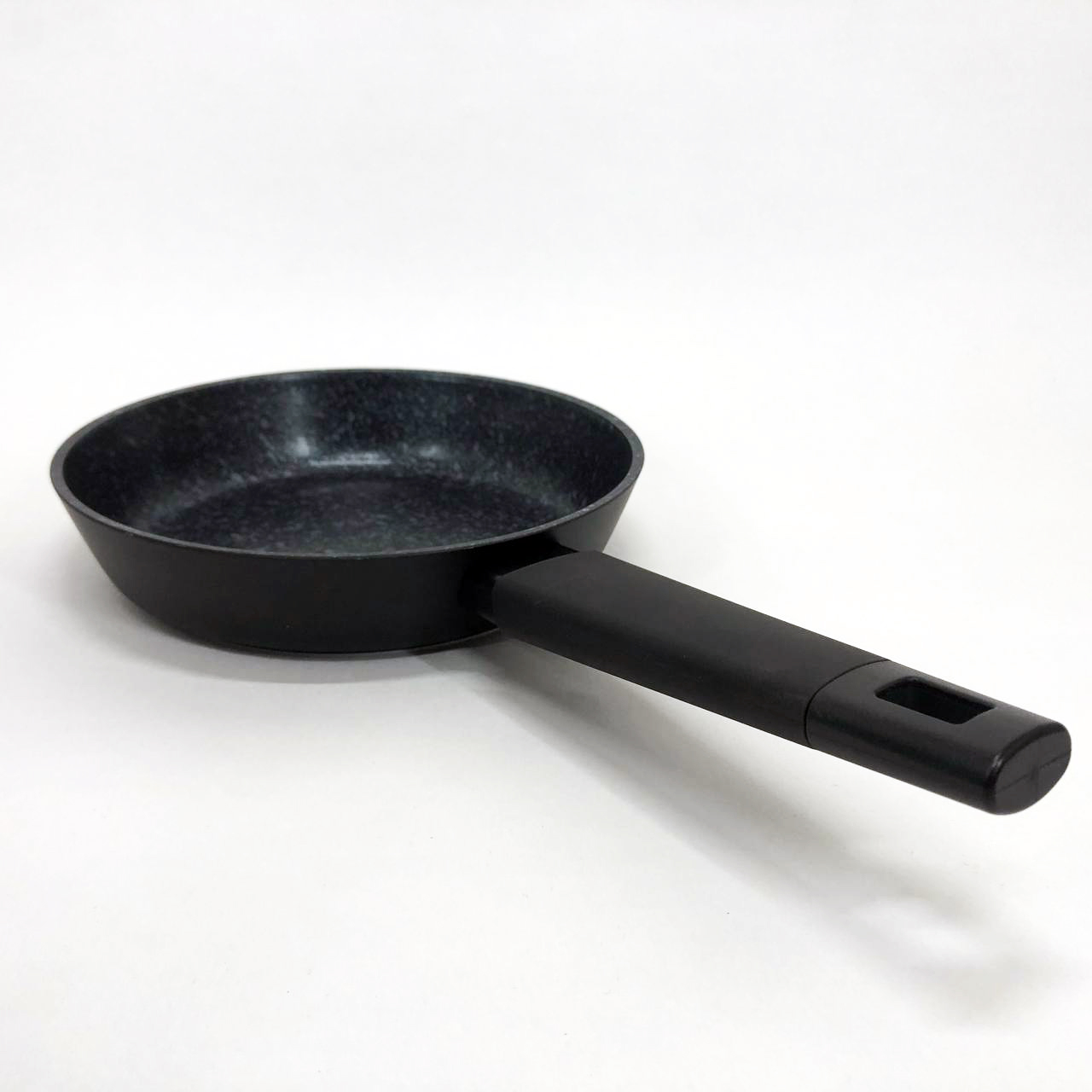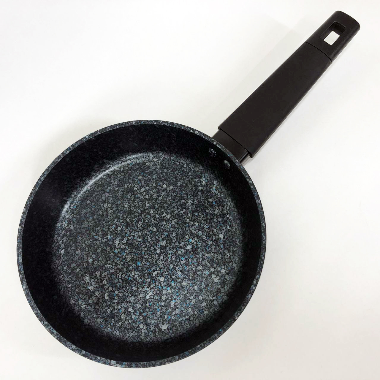 - Потовщений алюмінієвий корпус виготовлений за технологією гарячого кування, що дозволяє рівномірніше розподіляти температуру по всій поверхні сковороди.