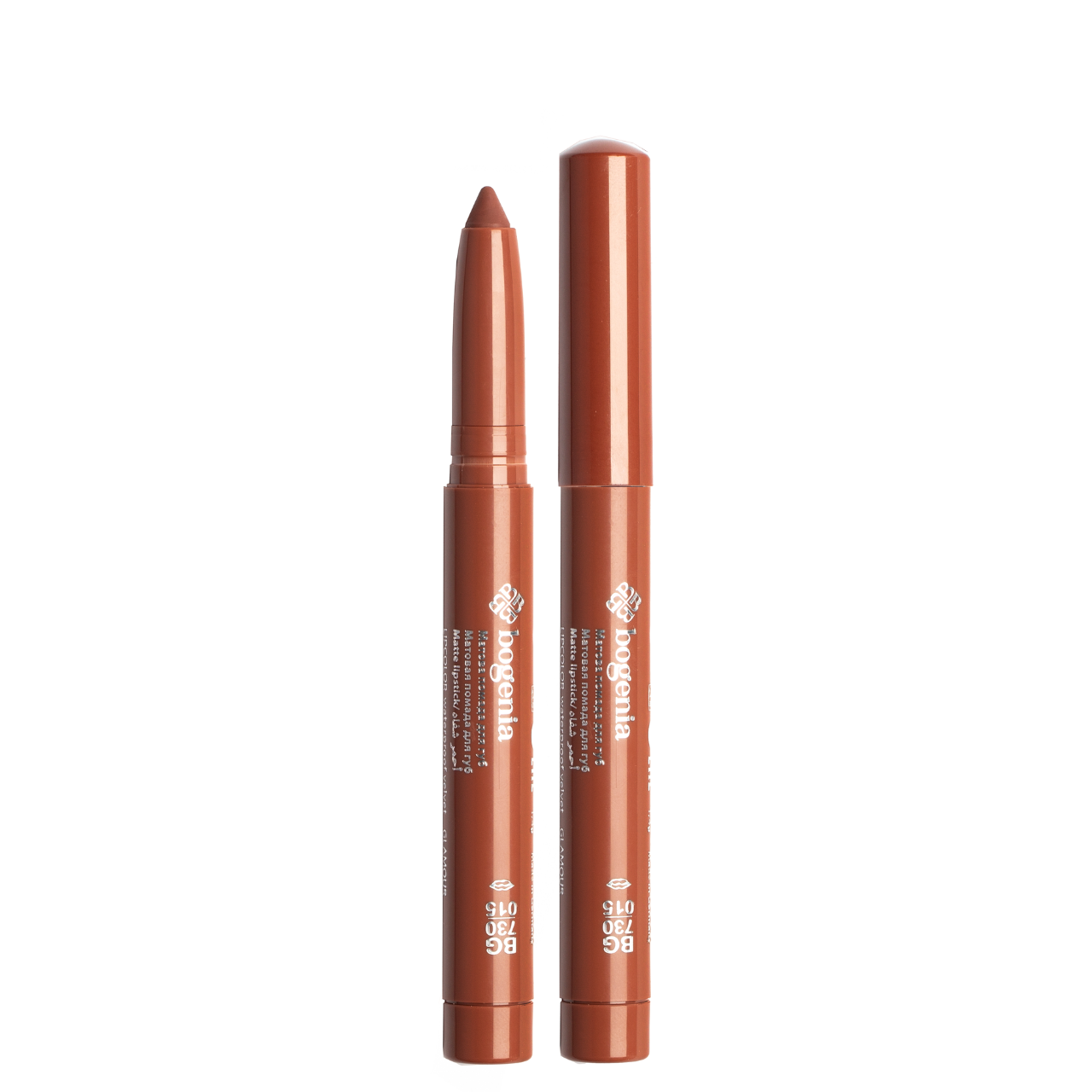 Помада-олівець для губ водостійка Bogenia Velvet Waterproof Matte BG730, 015 Glamor Світла коричнева. Зображення №2