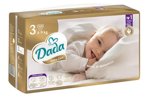 Підгузки Dada Extra Care 3 Midi призначені для дітей вагою від 4 до 9 кг. Використання інноваційної технології SeconDRY робить підгузки вдвічі більш сухими (порівняно з попереднім варіантом Dada Extra Care). Нова конструкція підгузника миттєво передає вологу всередину підгузка, де вона поглинається протягом тривалого часу. В результаті підгузок відразу стає сухим, що позитивно впливає на стан шкіри дитини. Гнучкі бортики гарантують дитині свободу рухів, а спеціальні плоскі гумки натискають на шкіру дитини в 4 рази легше, ніж звичайні круглі гумки. Нові підгузки Dada Extra Care 3 Midi продаються в упаковках по 50 штук.
