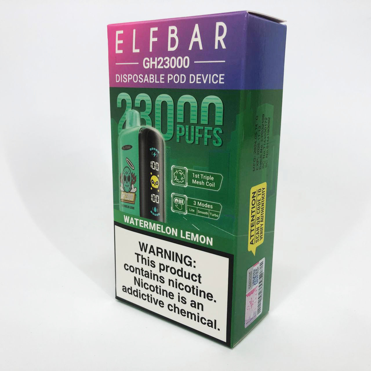 - Великий обсяг ємності. З неймовірним об’ємом упорскування 23 тисячі, Elf Bar GH23000 забезпечує тривале задоволення без необхідності постійної заміни або додаткових заправок.