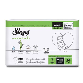Підгузки дитячі Sleepy Natural Midi-3 (4-9кг), 34шт