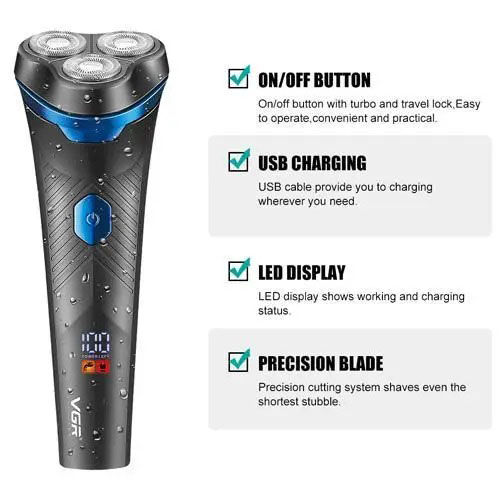 Електробритва VGR V-314 для чоловіків, роторна для вологого та сухого гоління, машинка чоловіча для гоління.