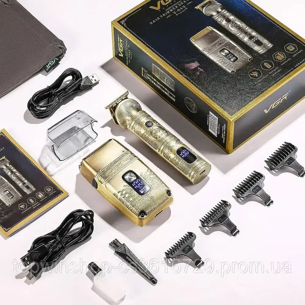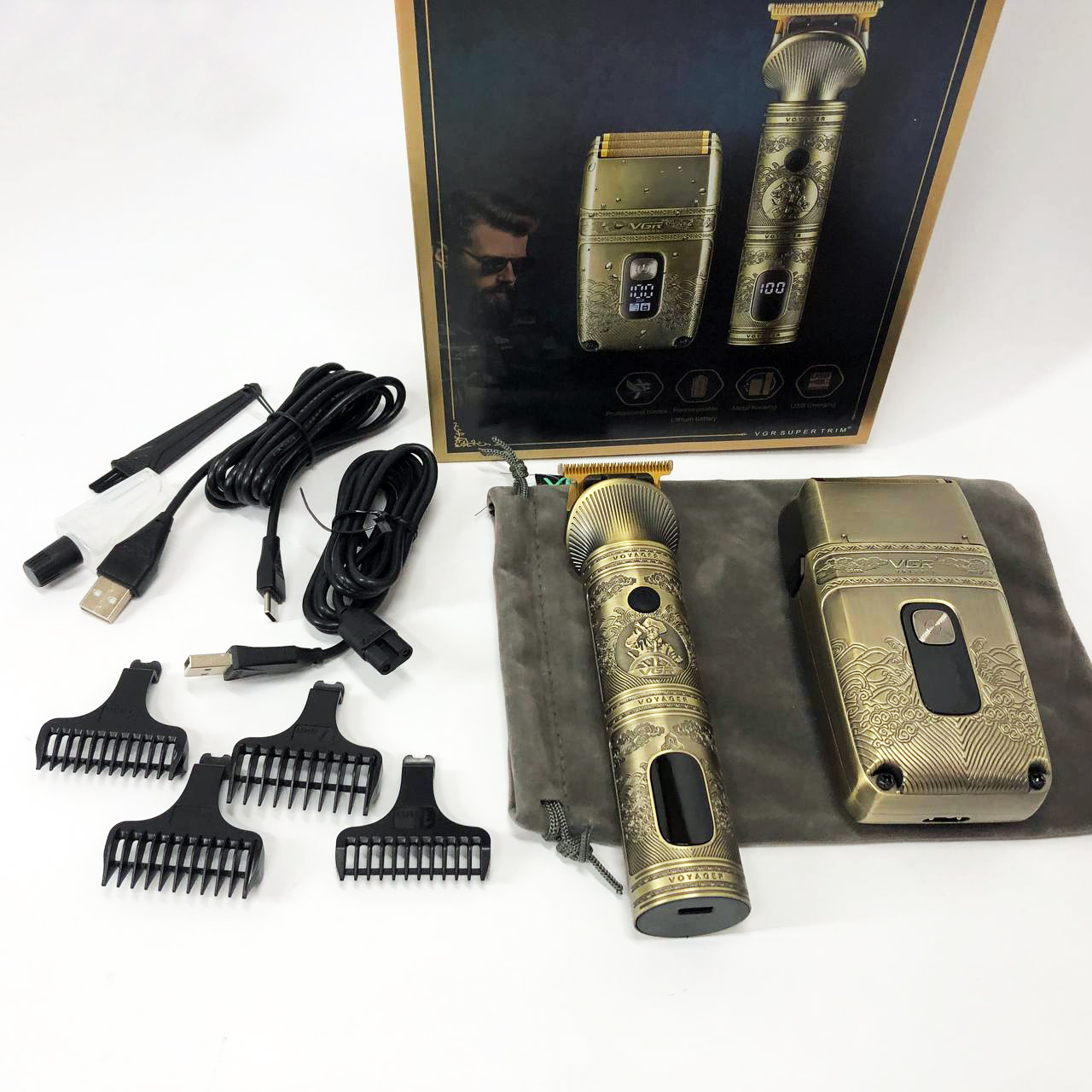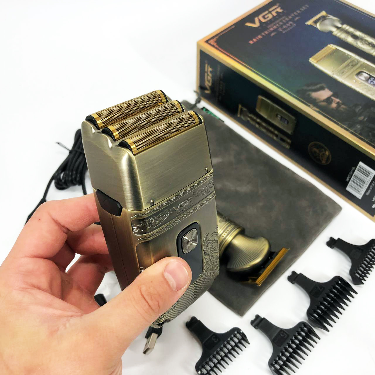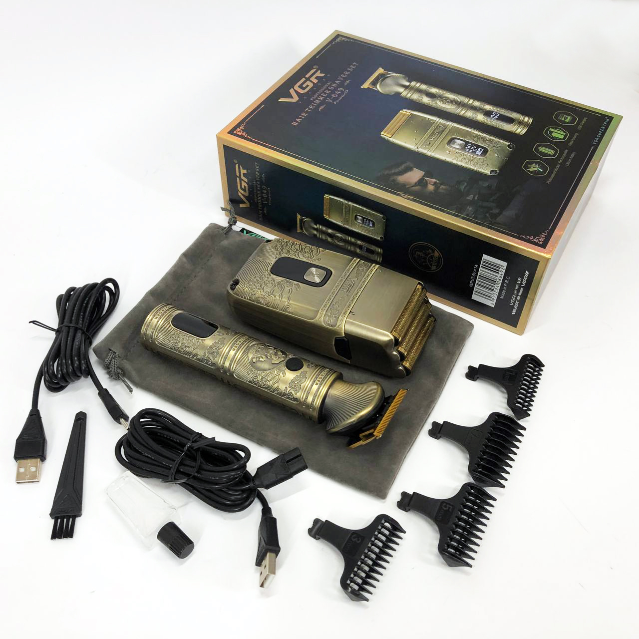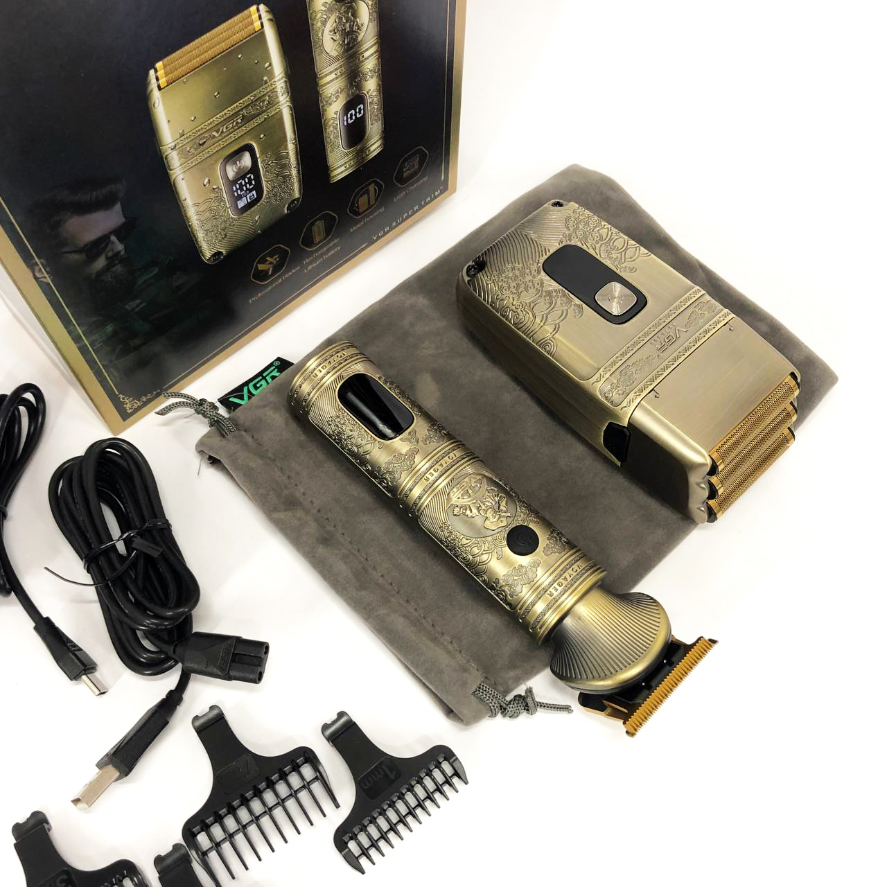Провідний професійний набір машинка для стрижки та шейвер VGR V-649, Чоловічий акумуляторний тример