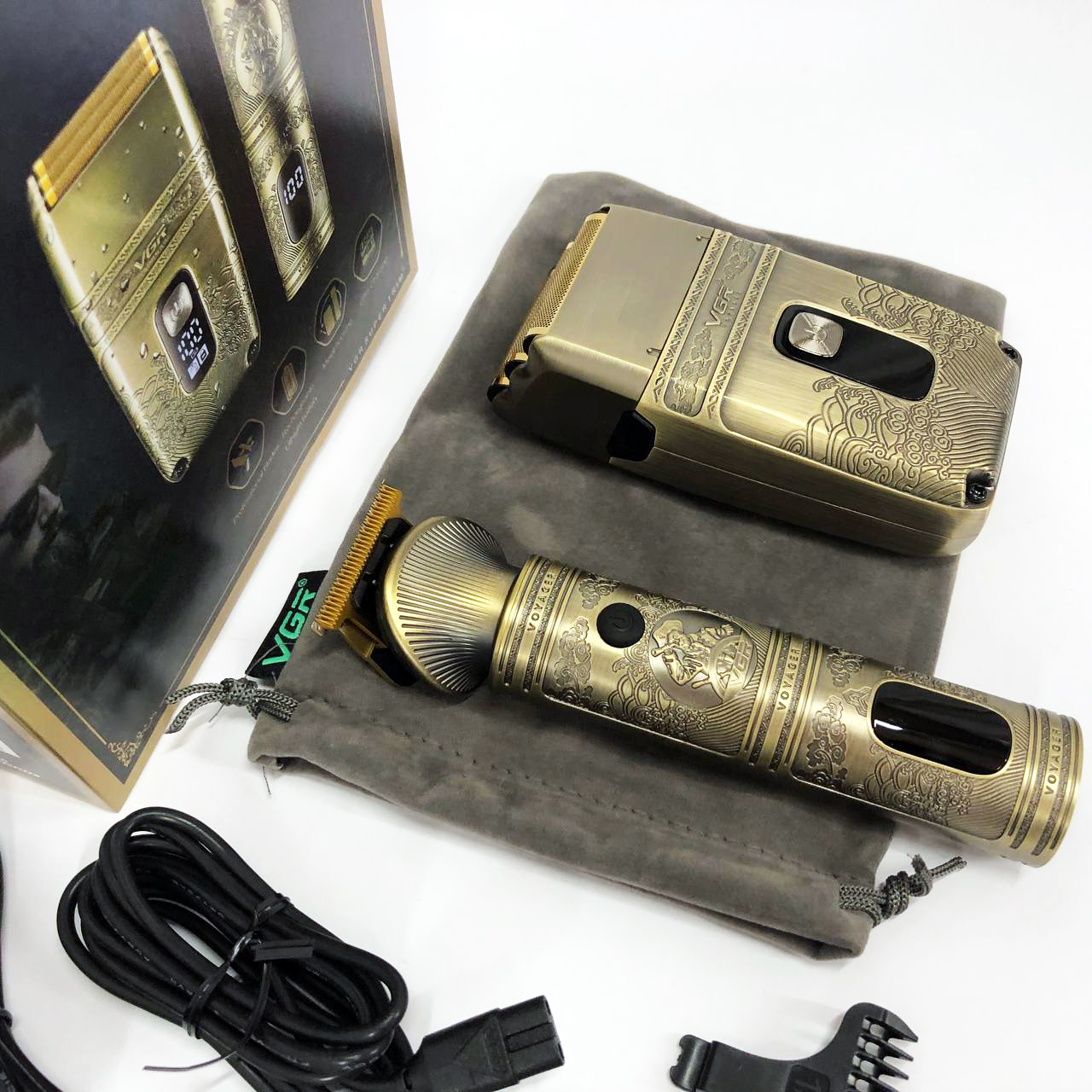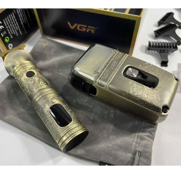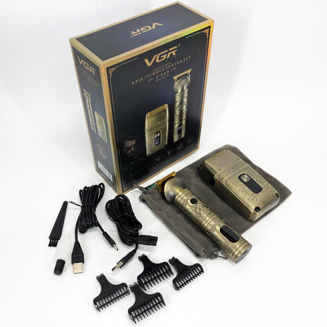 VGR Voyager V-649 Professional Hair Trimmer Shaver Set – це набір, що складається з тримера та електробритви. Тример для бороди і вусів і бритва мають ножі з нержавіючої сталі, що дозволяє їм справлятися навіть з найжорсткішим волоссям. Обидва інструменти мають захист від води IPX6, що дозволяє брати їх із собою в душ, не боячись зіпсувати, а також мають елегантний дизайн із гравіюванням.