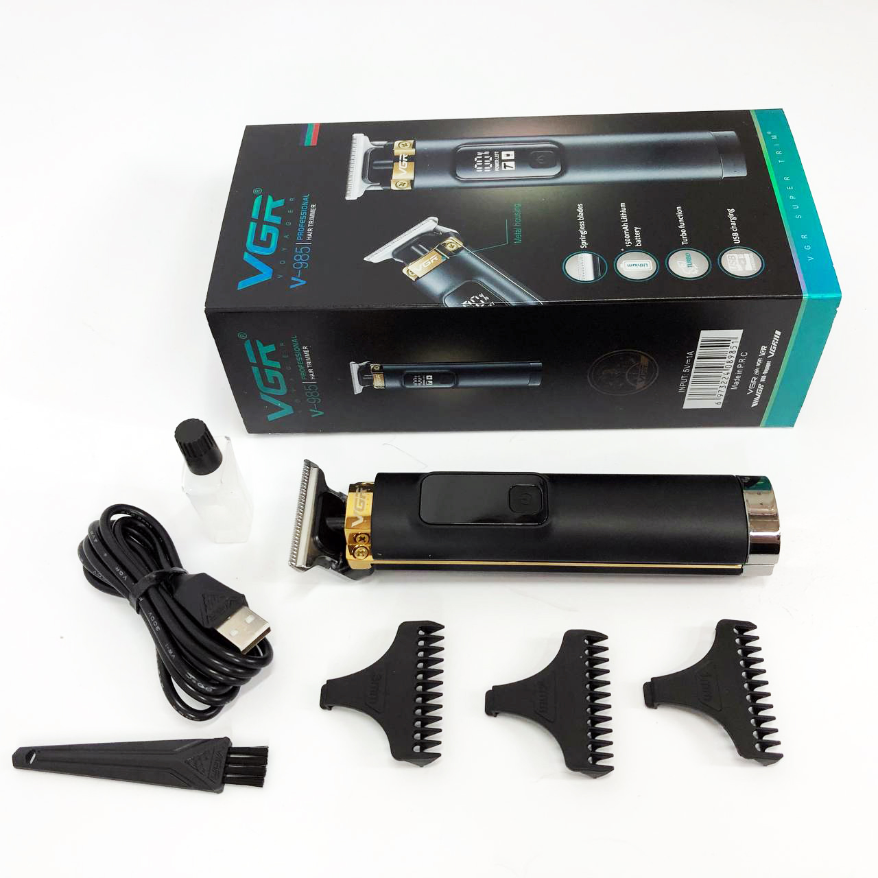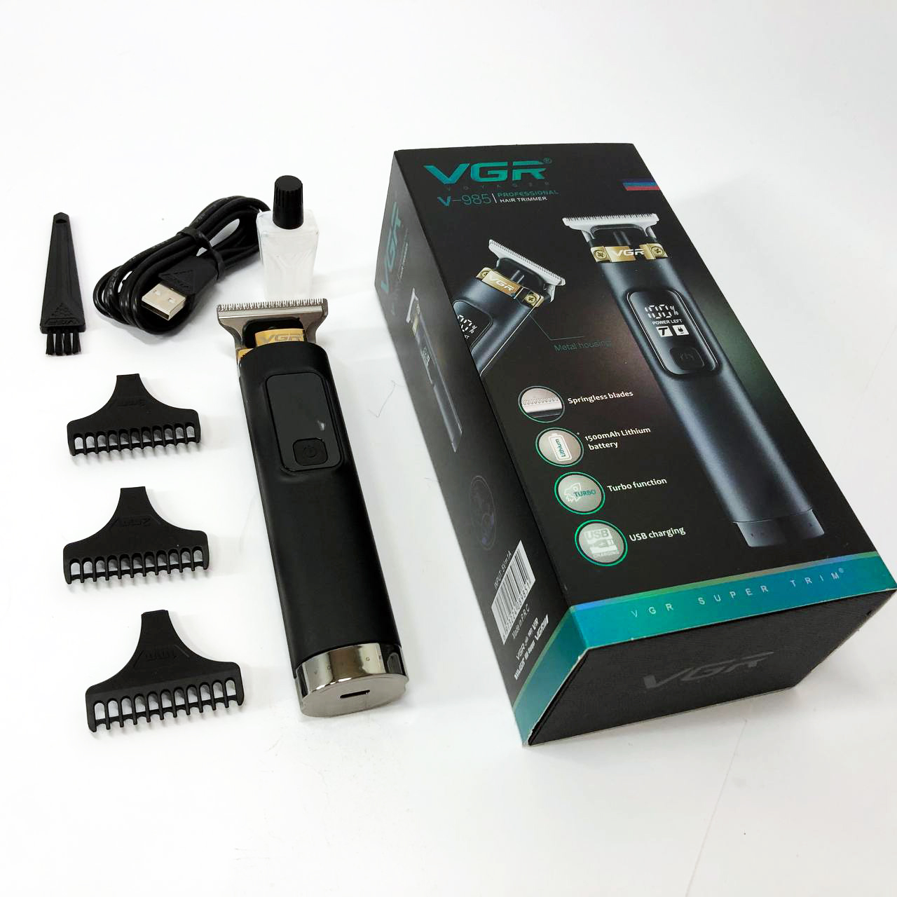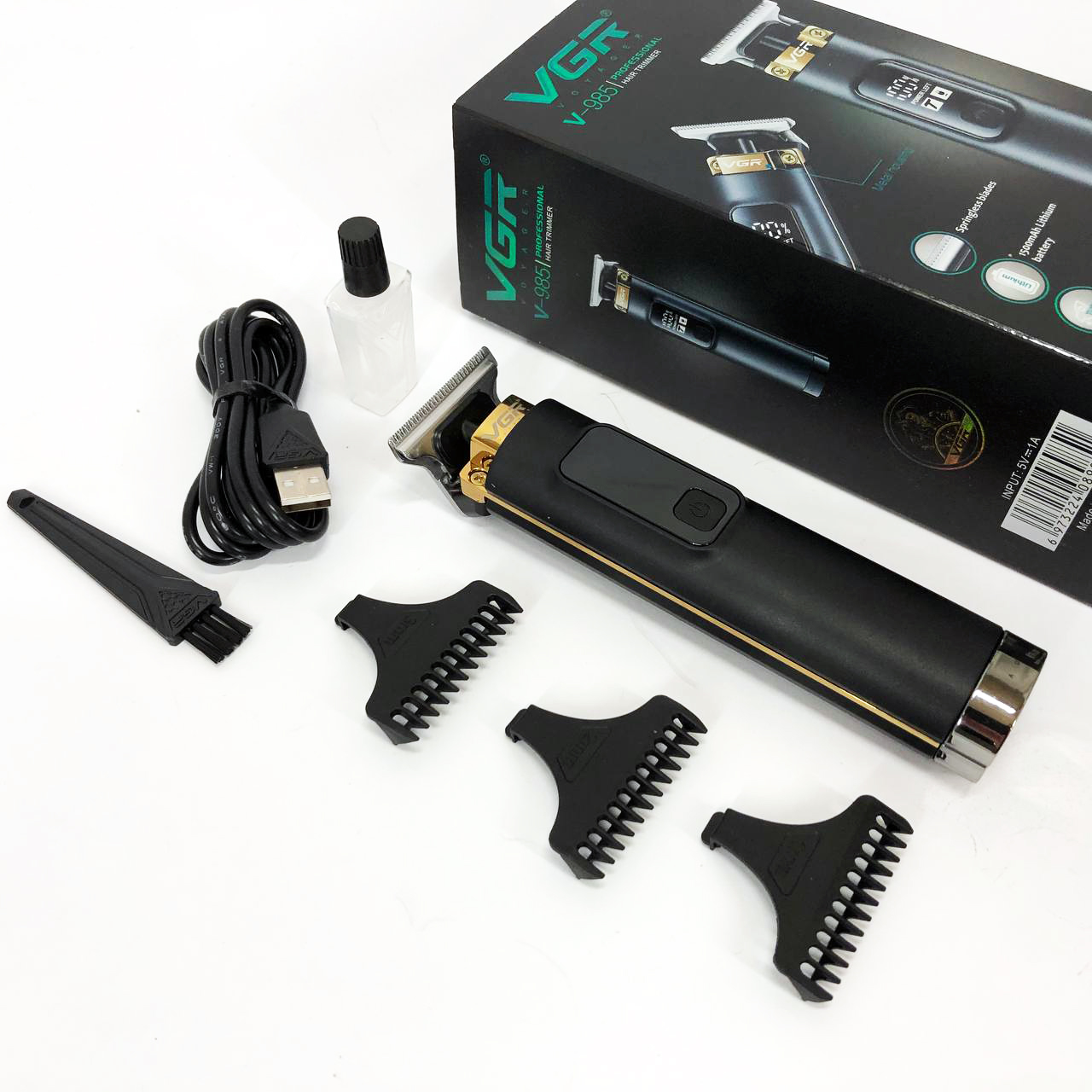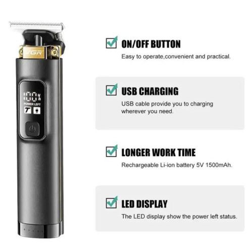 VGR V-985 — це першокласний триммер для чоловіків з міцним корпусом та гострим лезом з нержавіючої сталі. Завдяки літієвій батареї ємністю 1500 мАч і блоку живлення 5 В ви можете насолоджуватися 200 хвилинами безперервної роботи після 2,5-годинної зарядки . Цей триммер підходить як для мережного, так і для бездротового використання і оснащений кнопкою УВІМК/ВИМК з турборежумом, а також світлодіодним дисплеєм для індикації заряду акумулятора. За допомогою насадок (1/2/3 мм) і захистіть лезо за допомогою захисного ковпачка, що додається. Кабель USB Type-C, олія та щіточка для очищення доповнюють комплект.