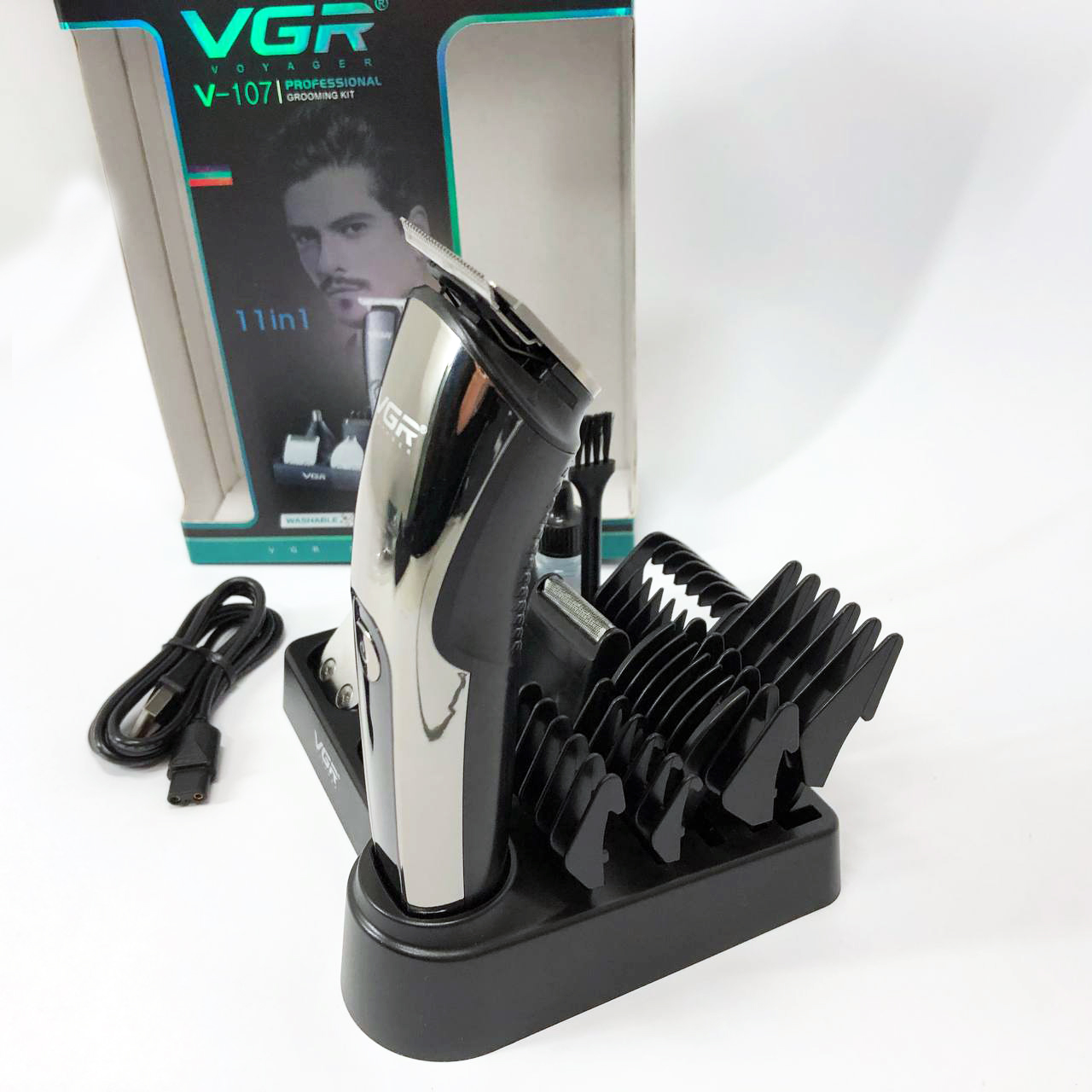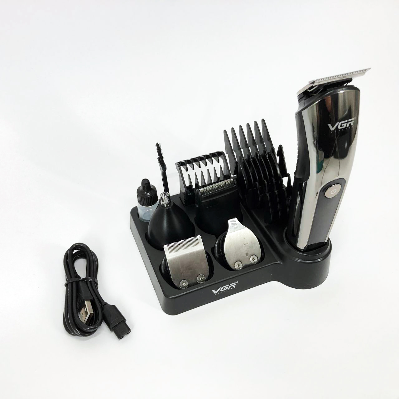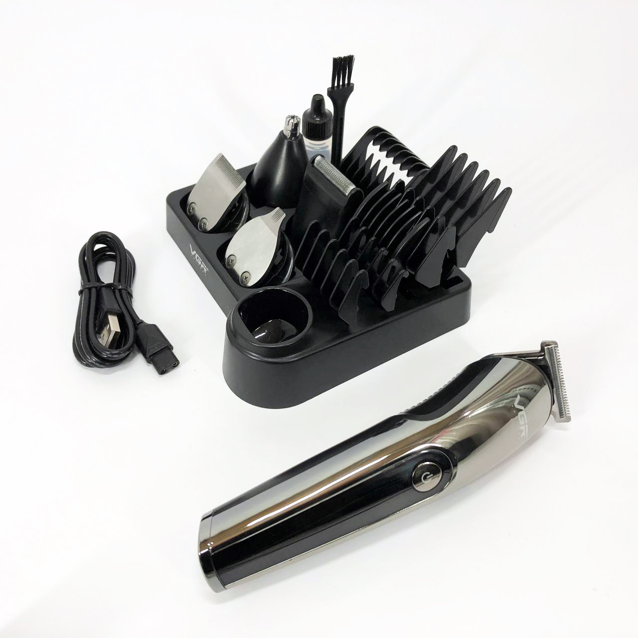 Бездротова машинка для стрижки волосся VGR V-107 тример для бороди та вусів зі змінними насадками