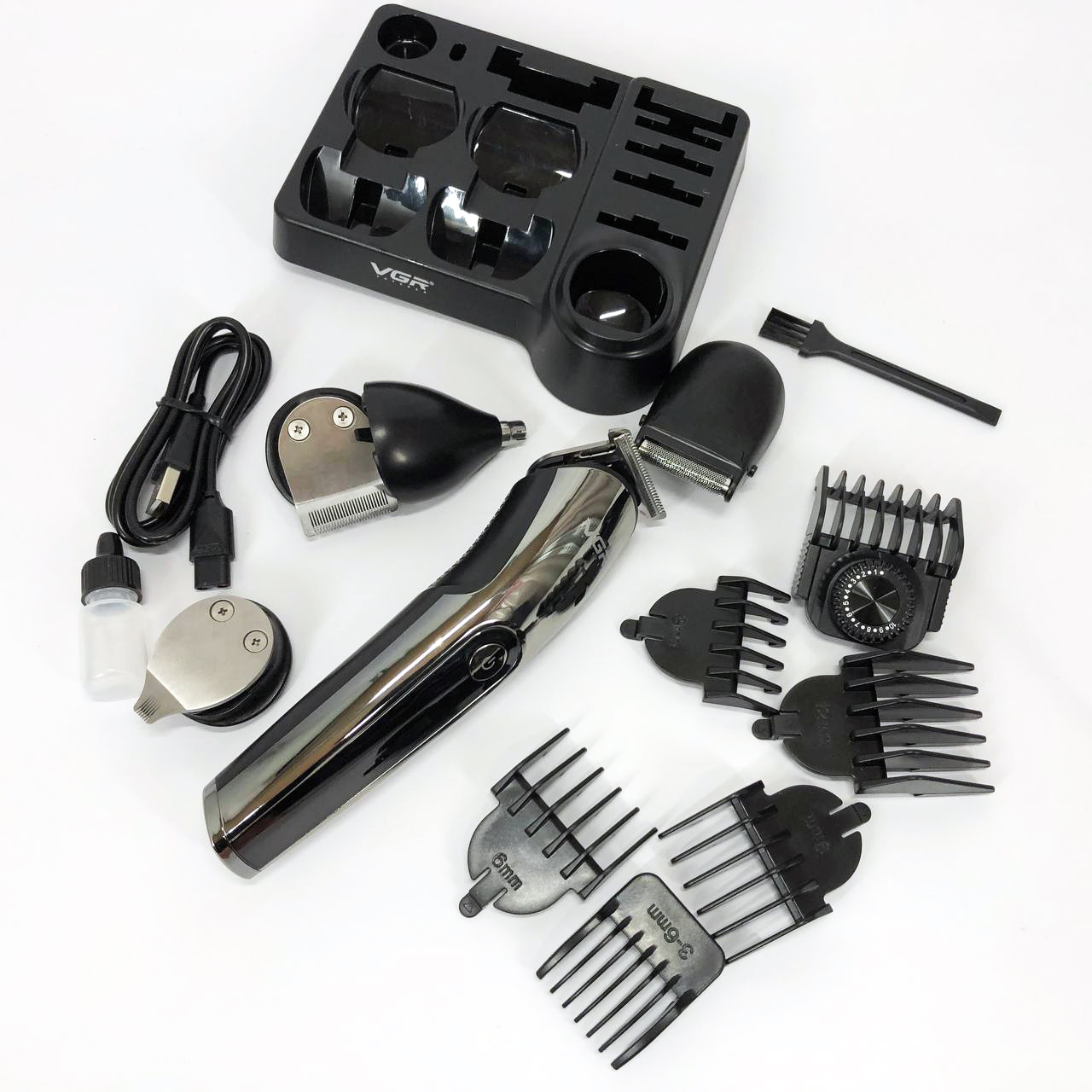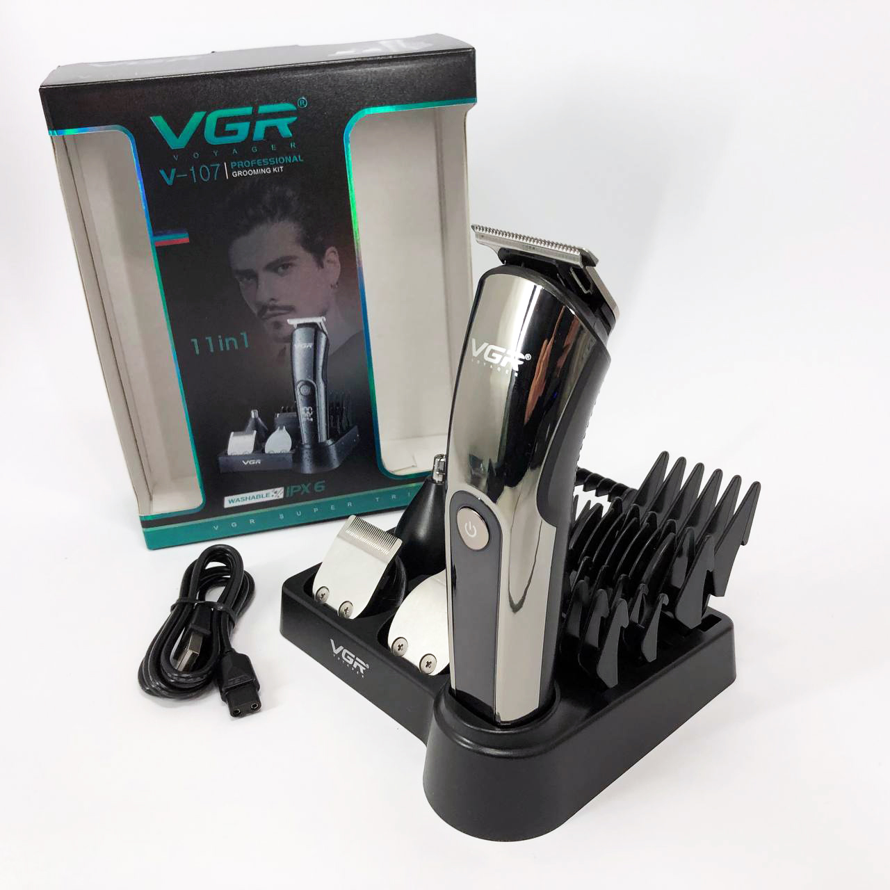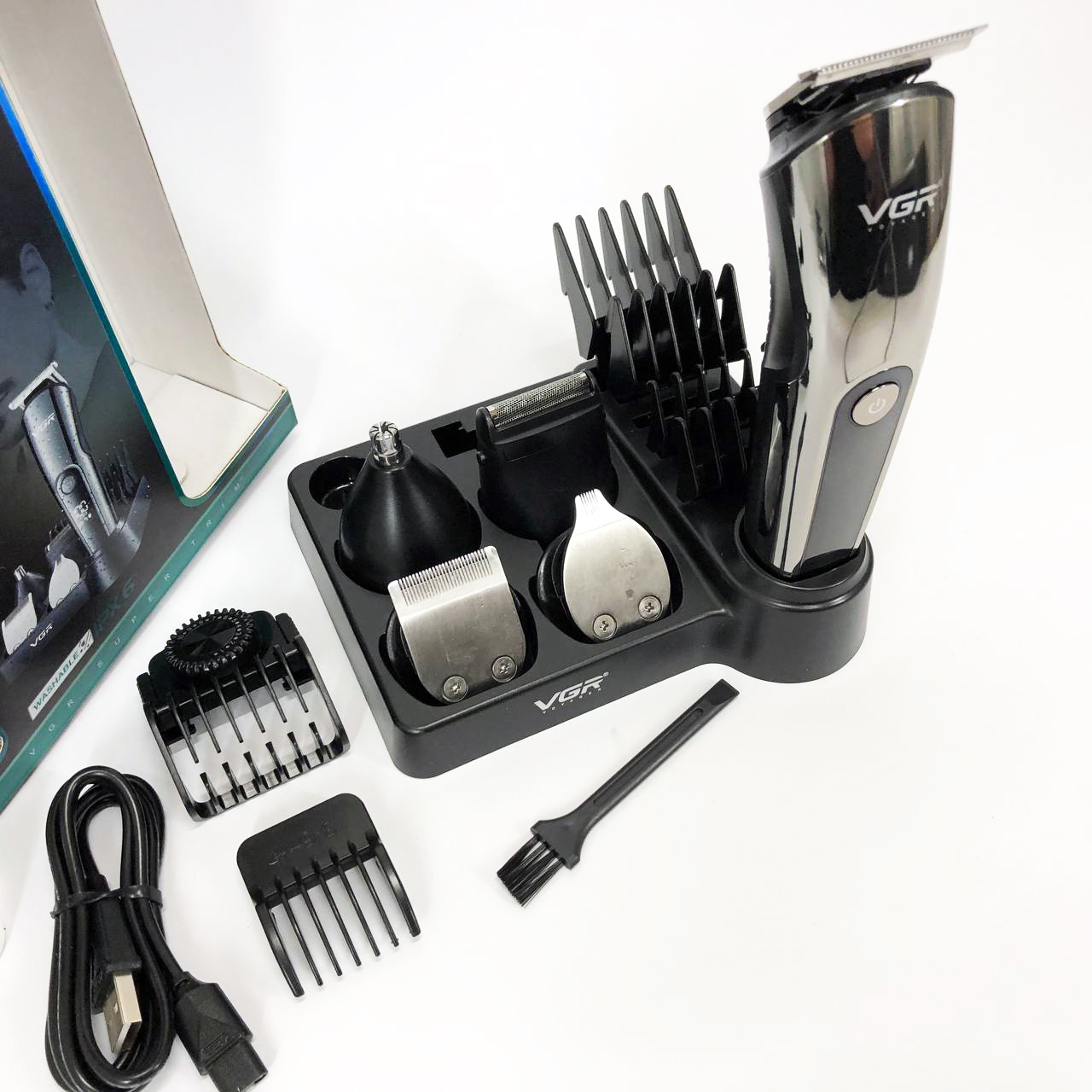 Бездротова машинка для стрижки волосся VGR V-107 тример для бороди та вусів зі змінними насадками