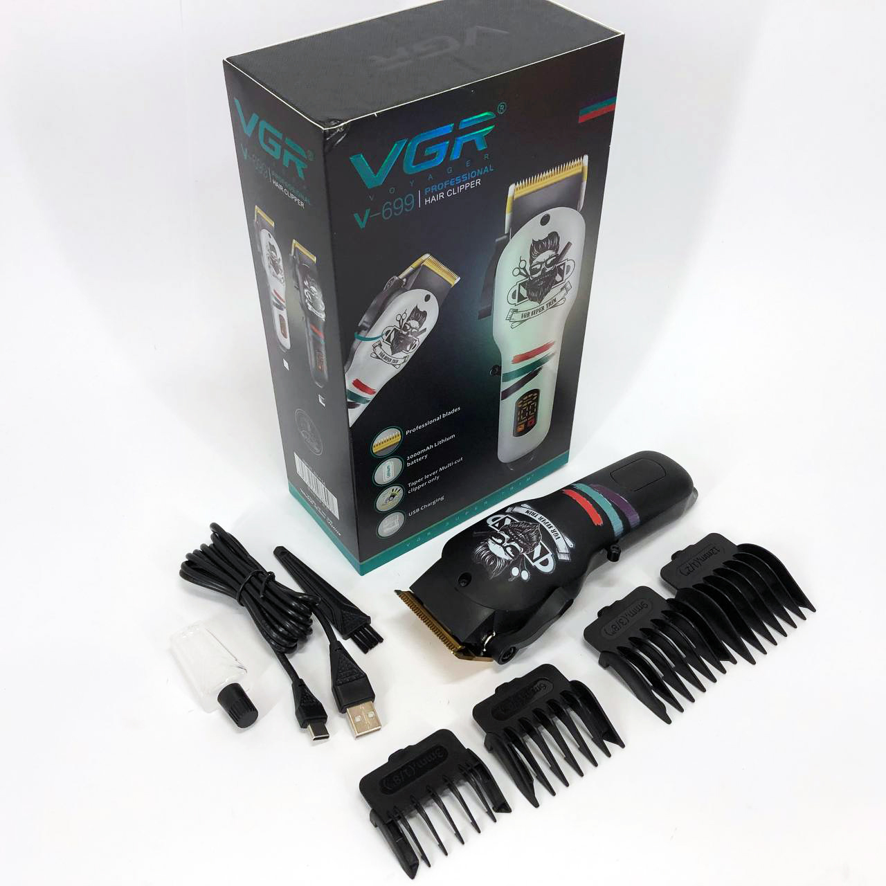 Машинка для стрижки волосся та бороди професійна VGR V-699 з насадками та LED дисплеєм. Колір: чорний