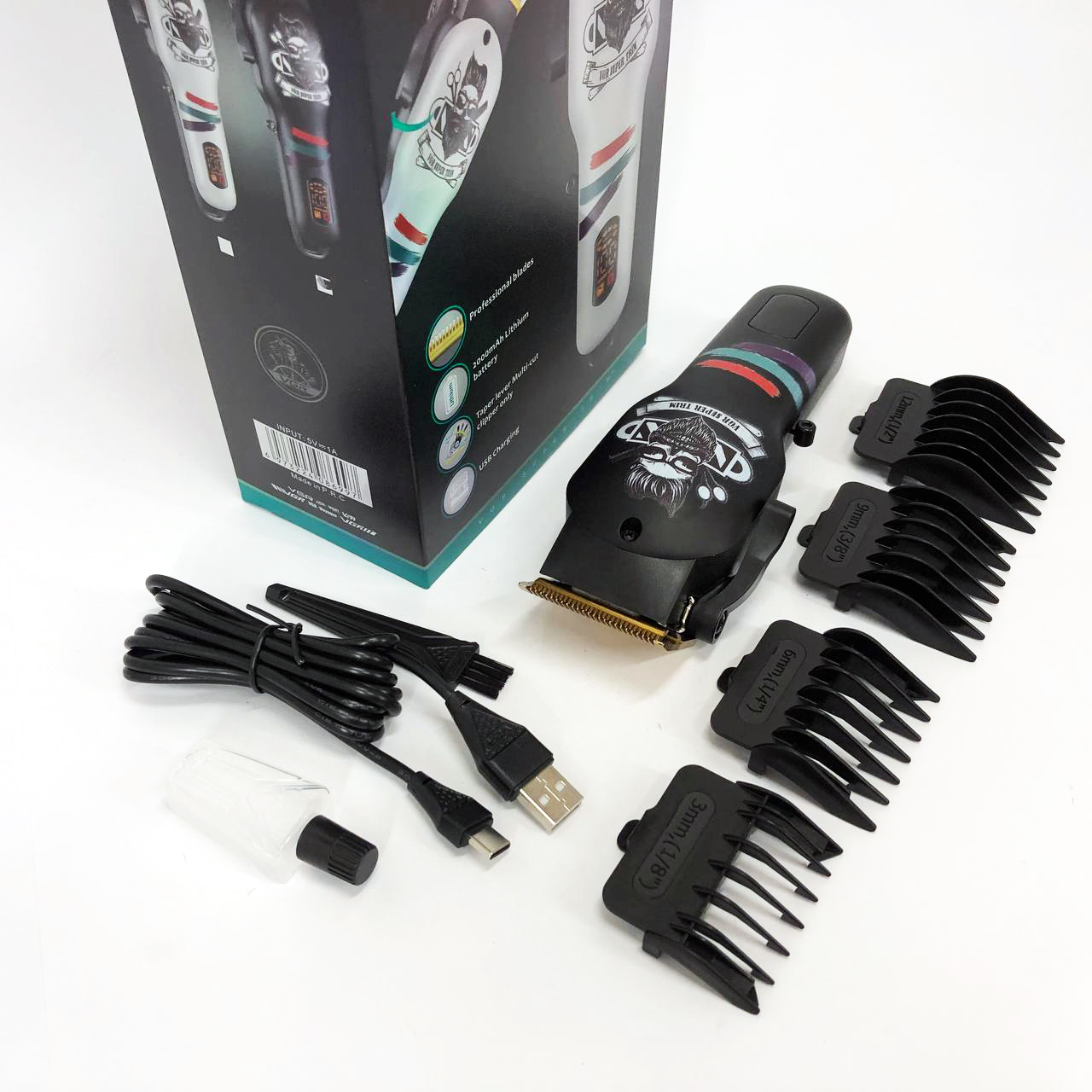 - Usb-заряджання: ця машинка для стрижки волосся заряджається через USB, що усуває необхідність у традиційних зарядних пристроях і полегшує заряджання за допомогою різних джерел живлення. Ця функція є дуже зручною для використання на ходу.