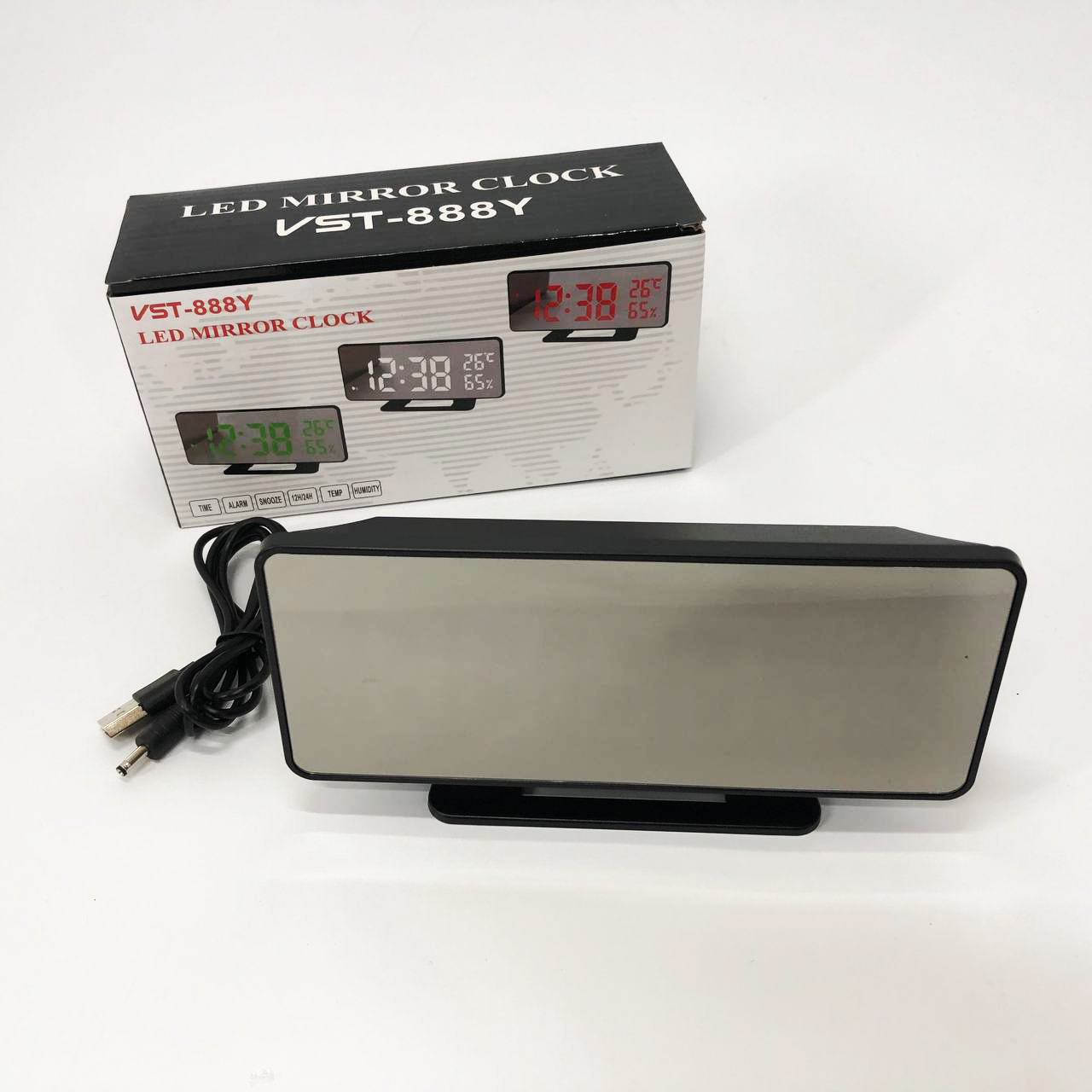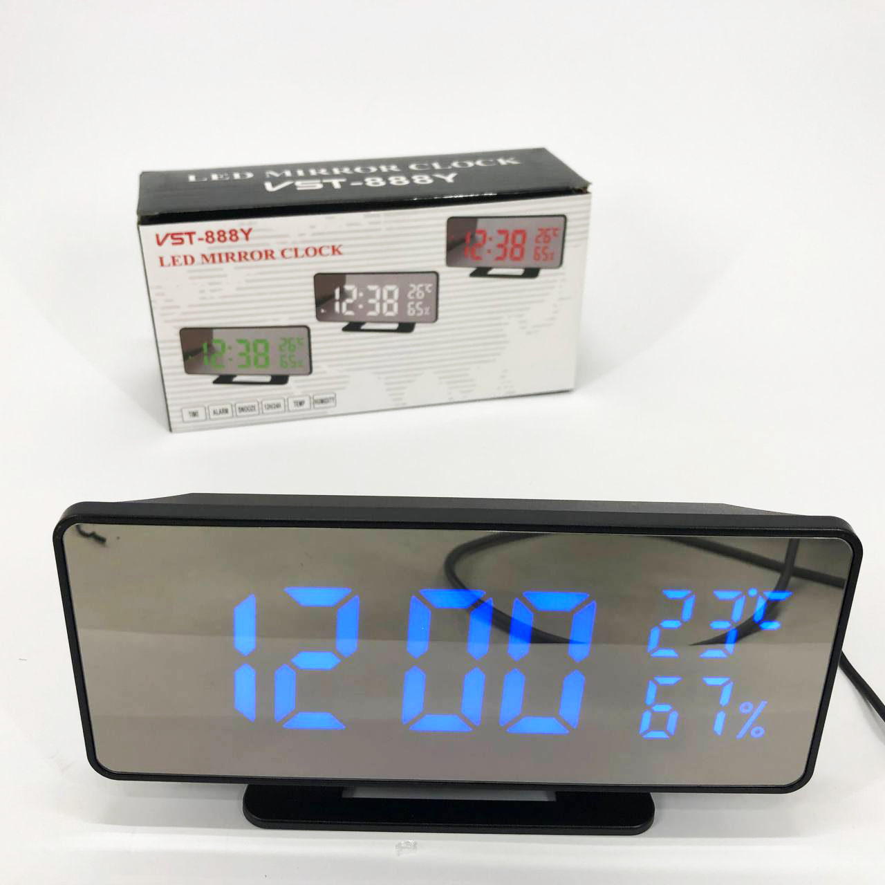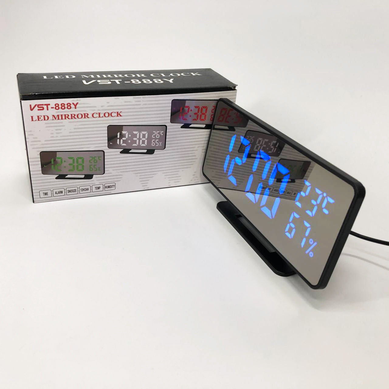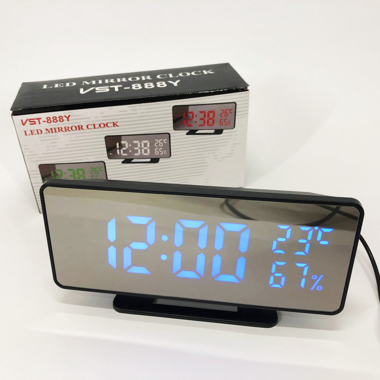 Годинник настільний дзеркальний VST-888Y-5 USB з синім циферблатом, Настільний годинник з підсвічуванням