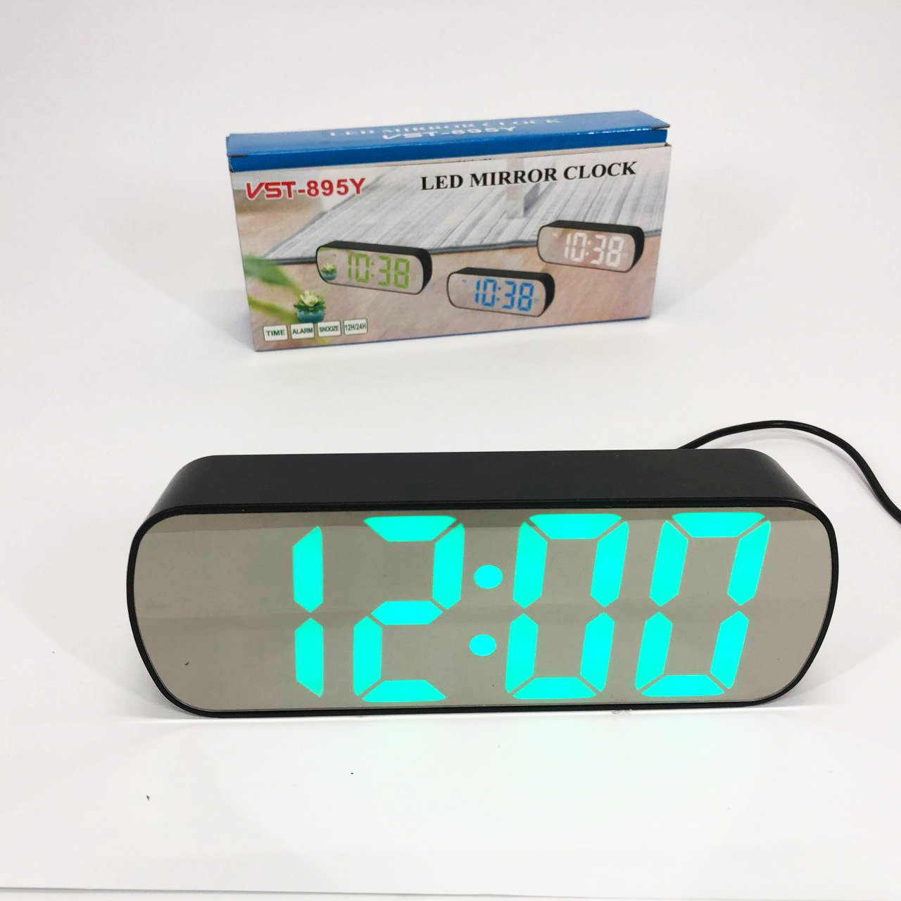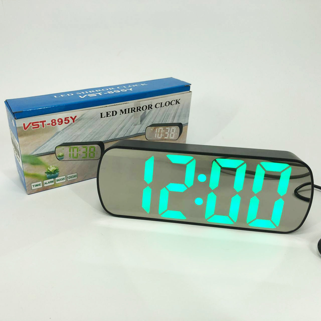 Годинник настільний VST-895Y-4 USB з зеленим циферблатом, Настільний електронний годинник з великими цифрами