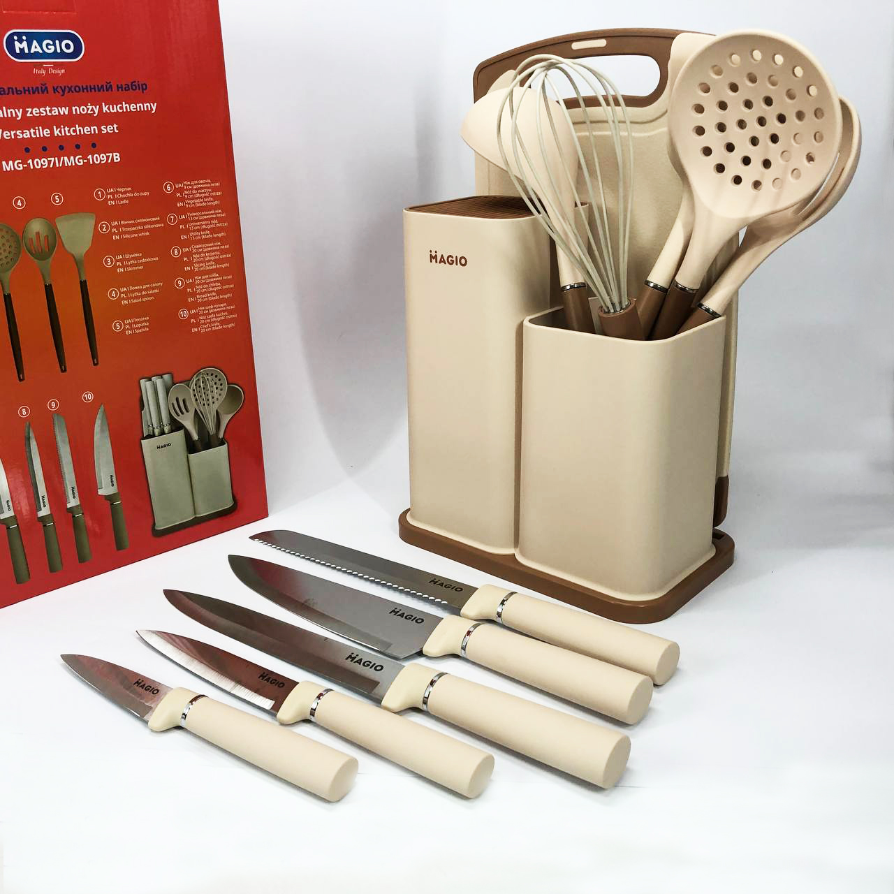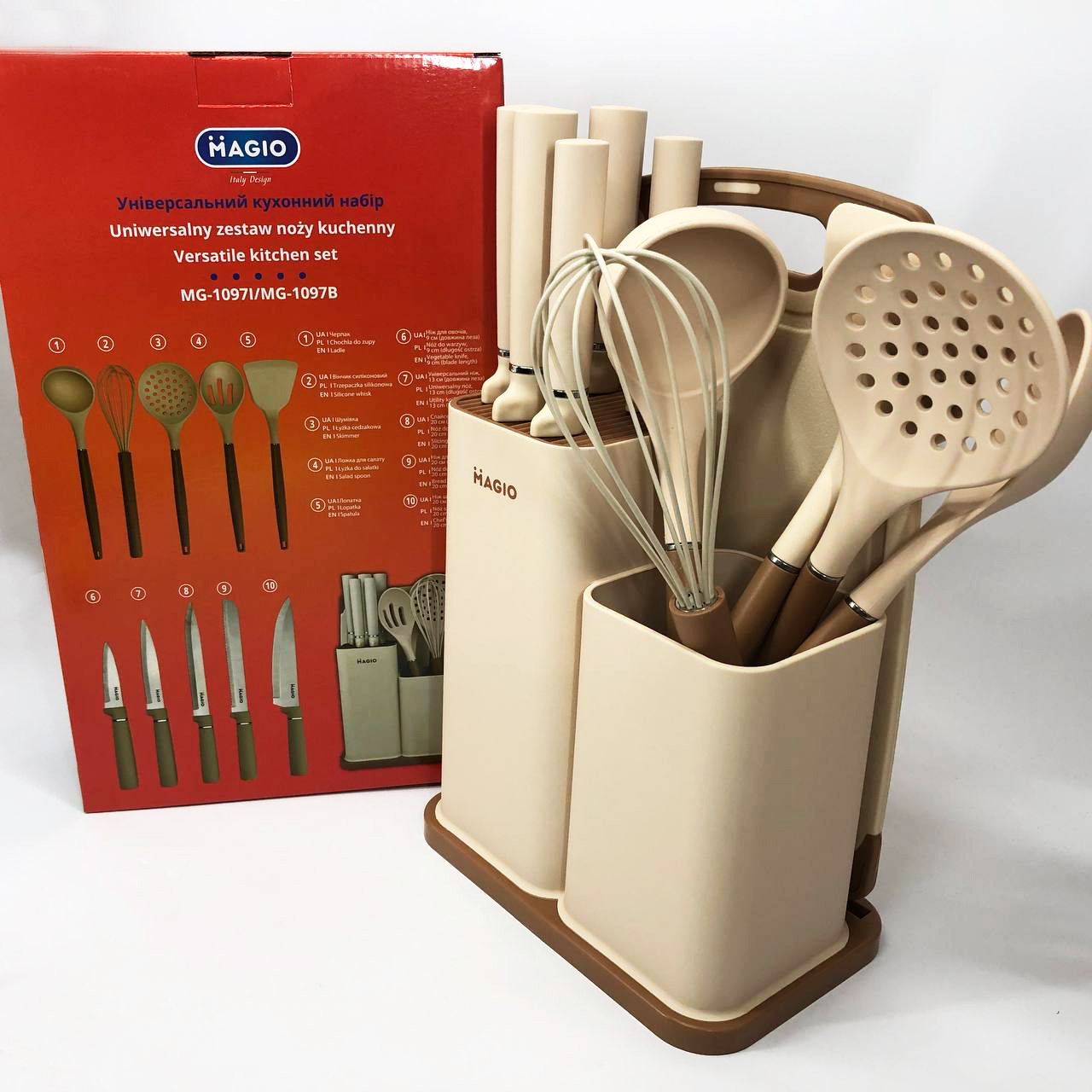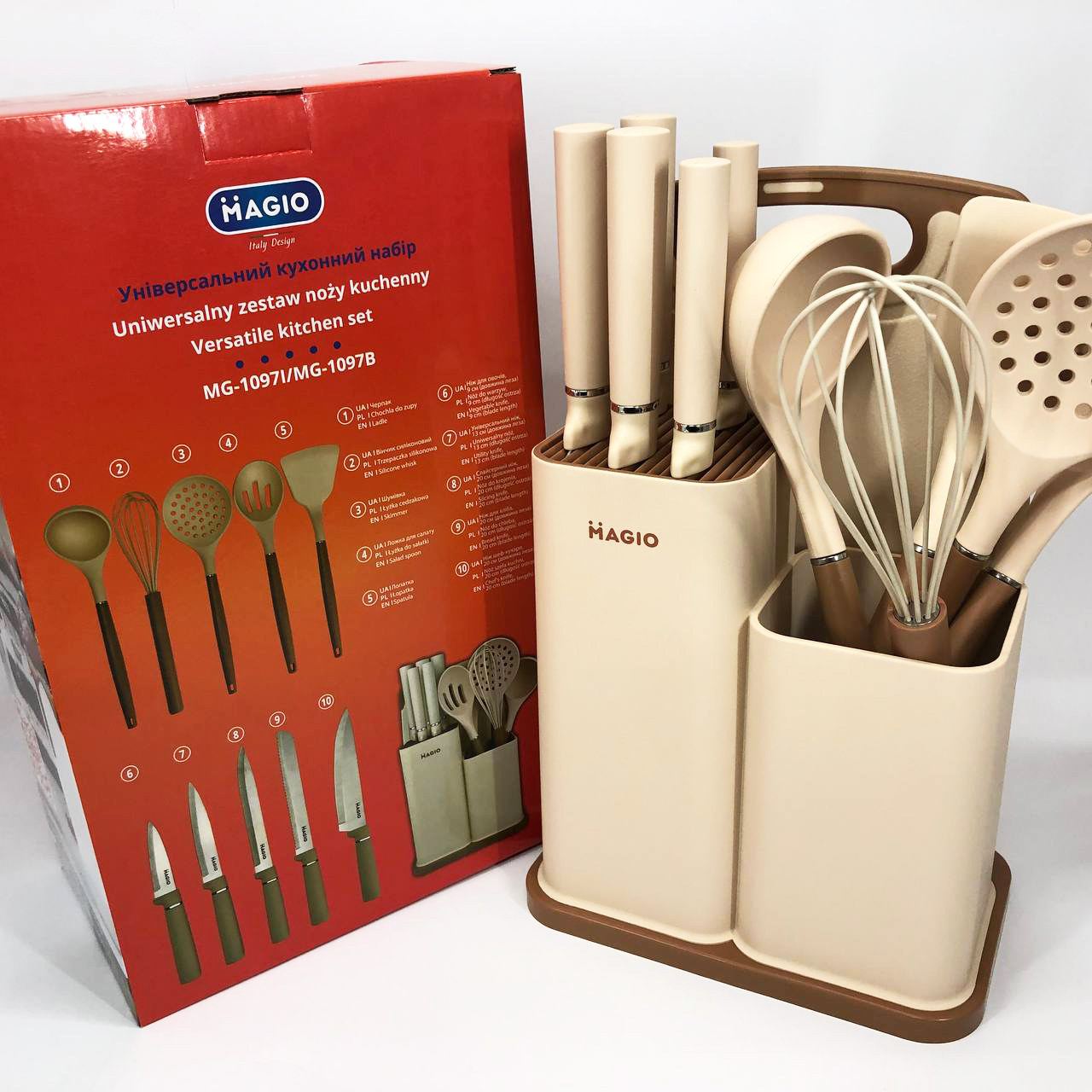 Універсальний кухонний набір Magio MG-1097 – це ідеальний вибір для тих, хто любить з комфортом готувати різноманітні страви. У наборі ви знайдете 12 предметів, які зроблять вашу роботу на кухні легкою та приємною.
