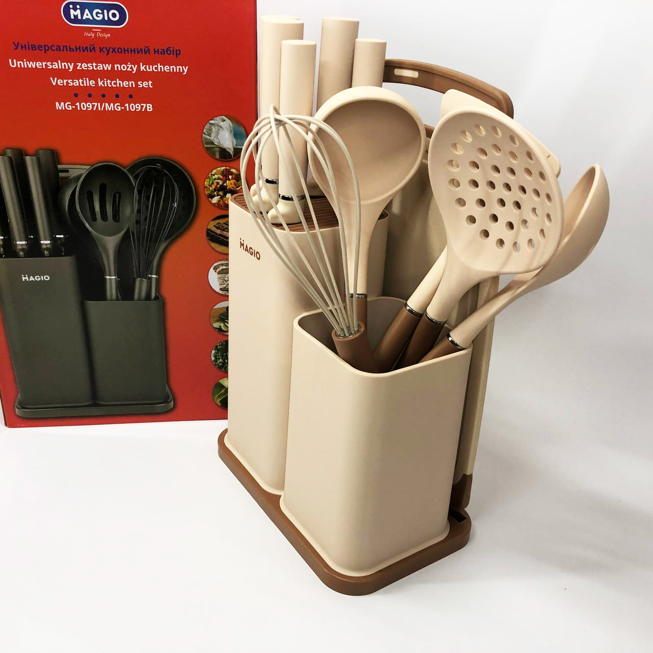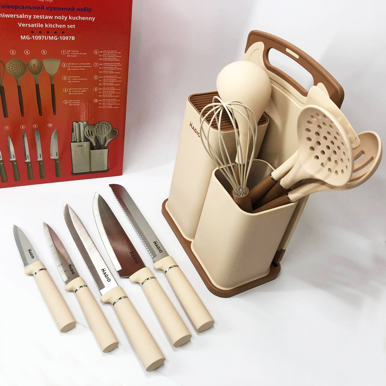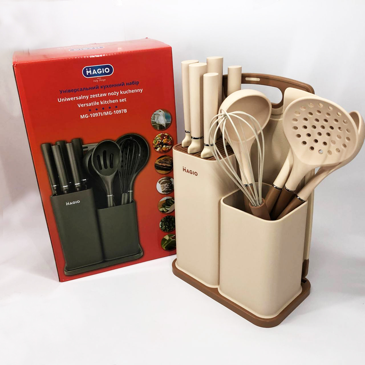 Універсальний кухонний набір Magio MG-1097 – це ідеальний вибір для тих, хто любить з комфортом готувати різноманітні страви. У наборі ви знайдете 12 предметів, які зроблять вашу роботу на кухні легкою та приємною.