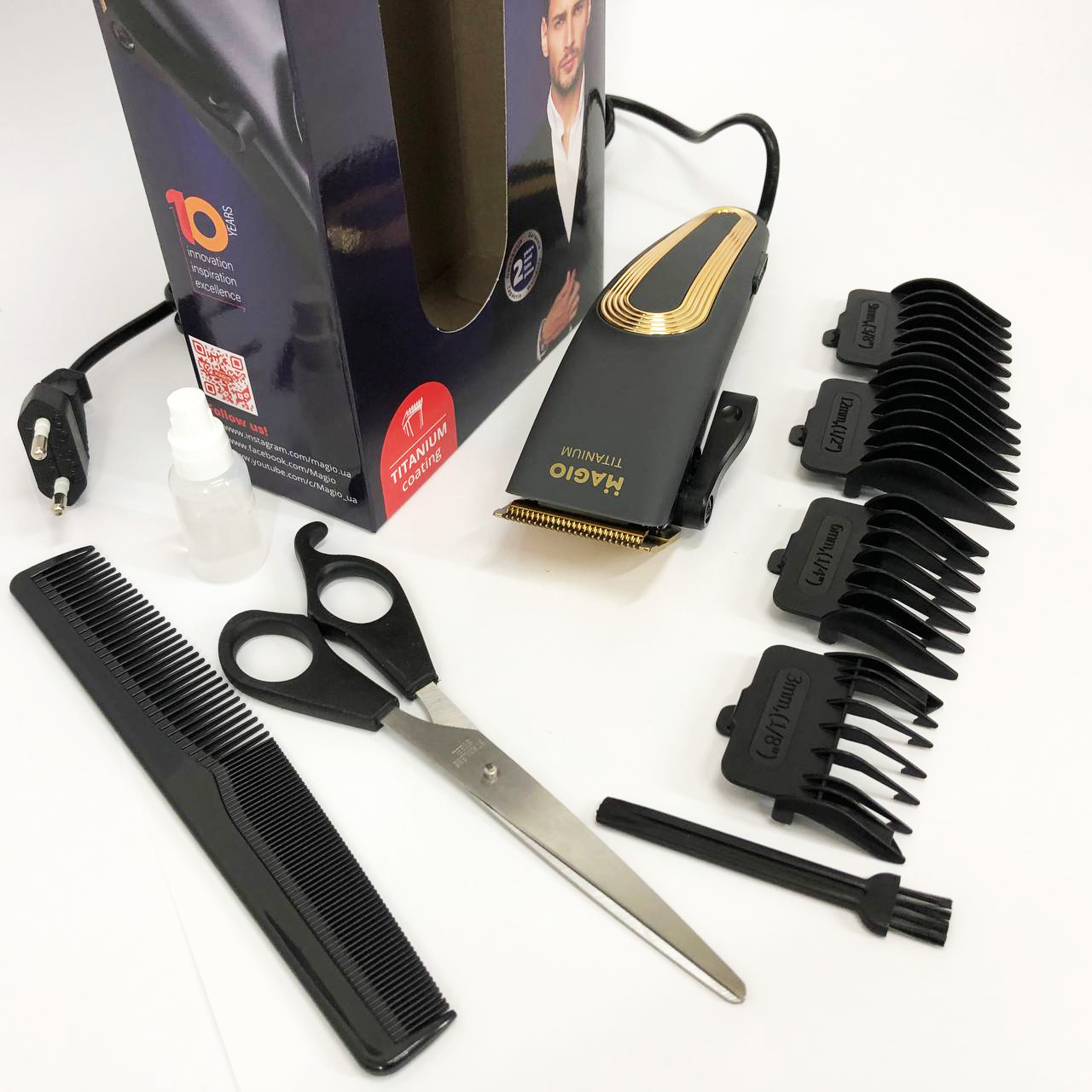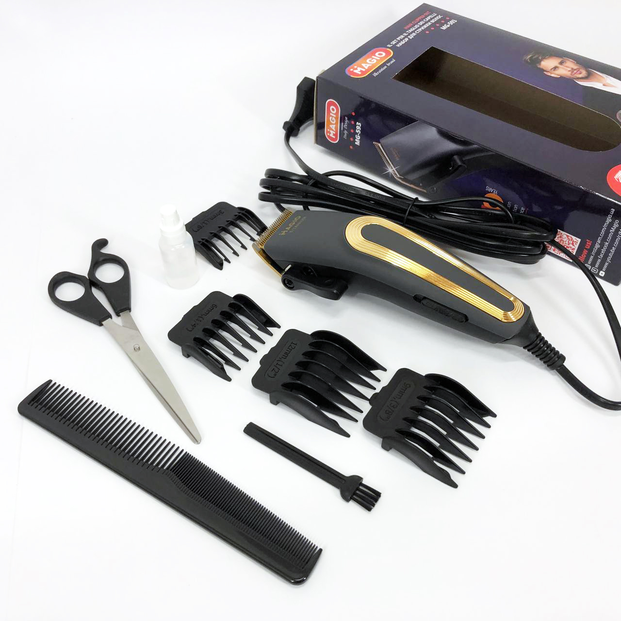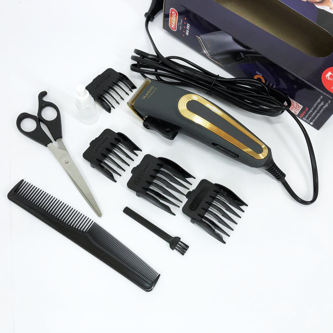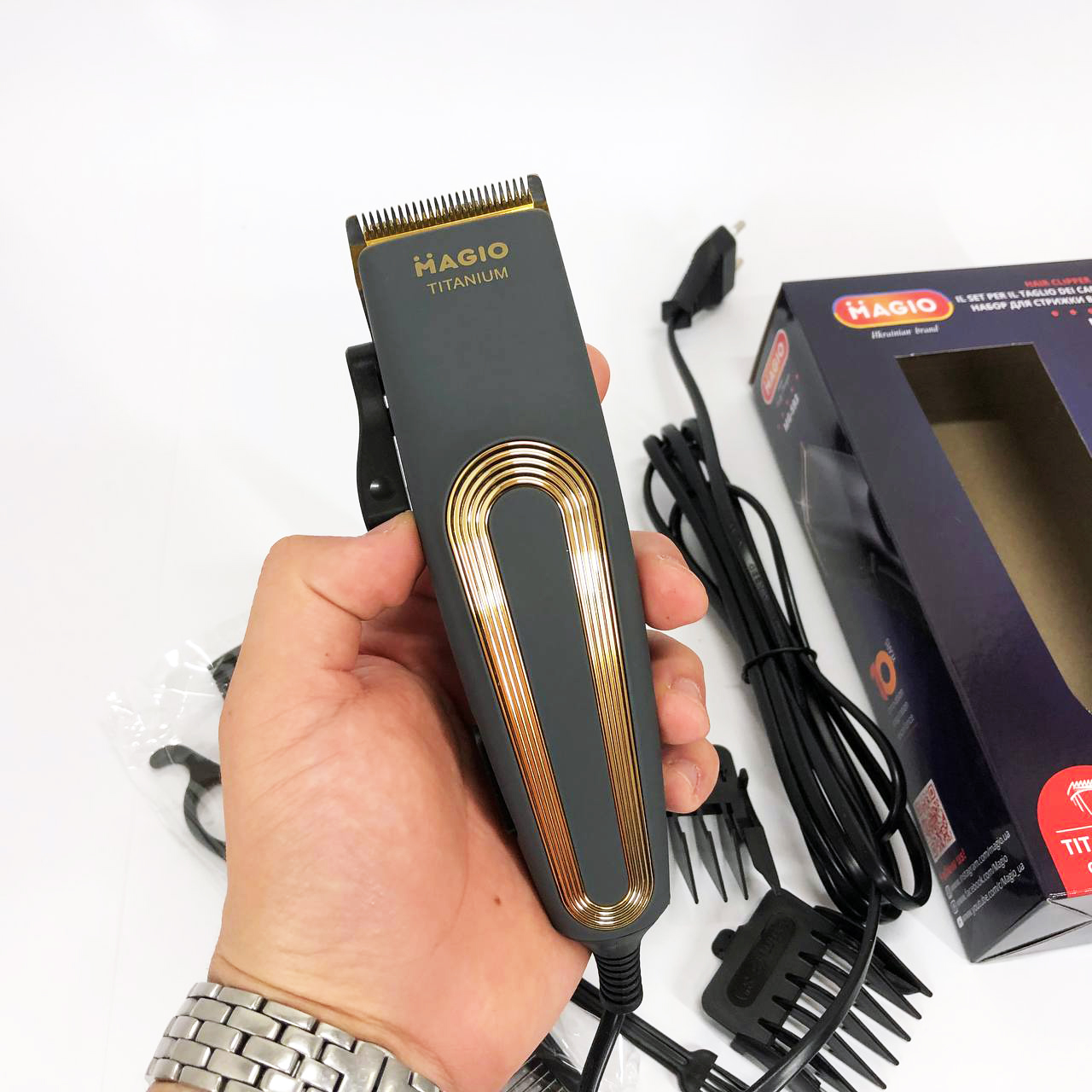 Машинка для стрижки волосся Magio (MG-593) обладнана потужним двигуном потужністю 25 Вт і працює з низьким рівнем шуму. Лезо з покриттям титану забезпечує довговічність і точність стрижки. В комплект входять 4 насадки (3 мм, 6 мм, 9 мм, 12 мм), гребінець, ножиці, масло та щітка для догляду за пристроєм.