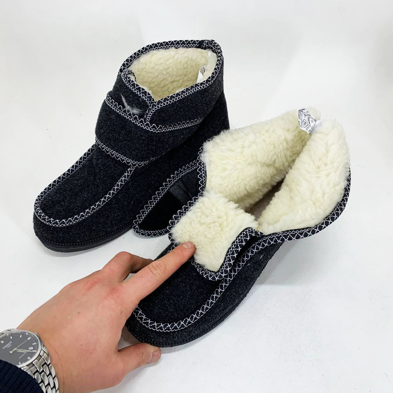 Виконані в класичному темно-сірому кольорі, черевики мають охайний вигляд, доповнений декоративною контрастною строчкою. Всередині — м’яке штучне хутро, яке не лише гріє, а й створює відчуття домашнього затишку. Плоска гумова підошва гарантує стійкість на різних поверхнях, а легка вага взуття робить його ідеальним вибором для щоденних справ у місті чи за його межами.