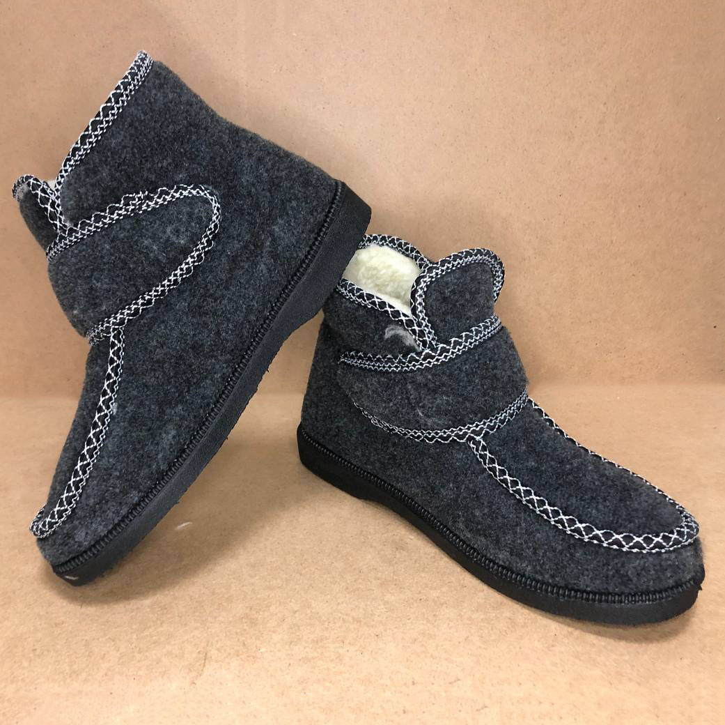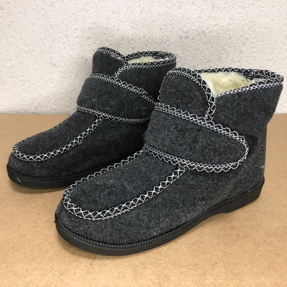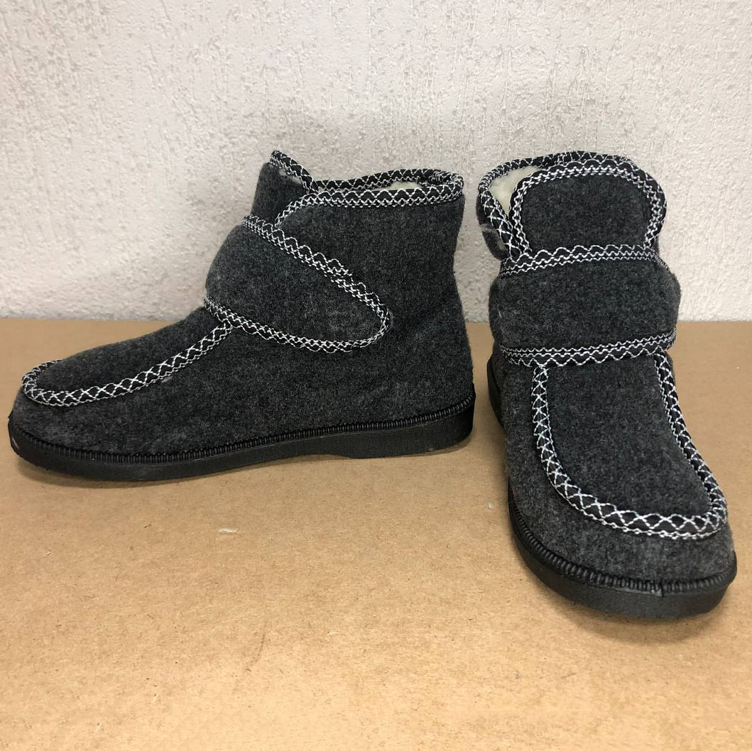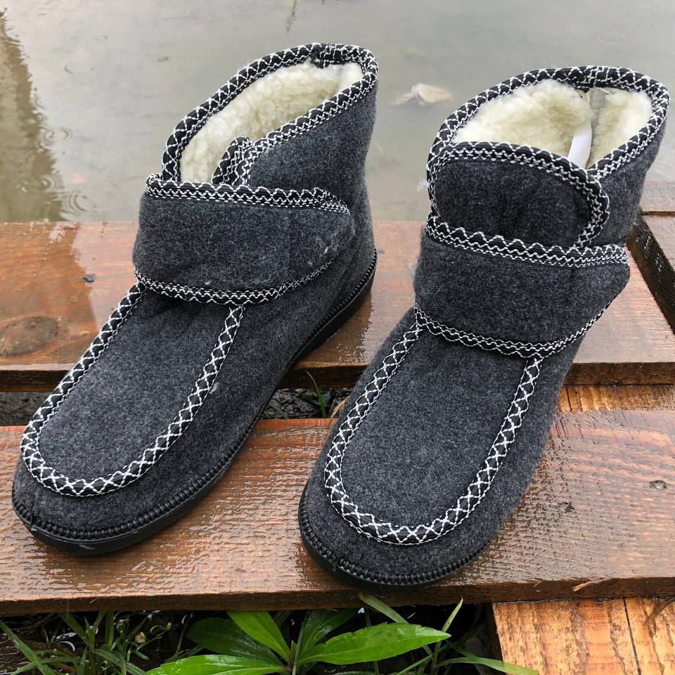 Виконані в класичному темно-сірому кольорі, черевики мають охайний вигляд, доповнений декоративною контрастною строчкою. Всередині — м’яке штучне хутро, яке не лише гріє, а й створює відчуття домашнього затишку. Плоска гумова підошва гарантує стійкість на різних поверхнях, а легка вага взуття робить його ідеальним вибором для щоденних справ у місті чи за його межами.