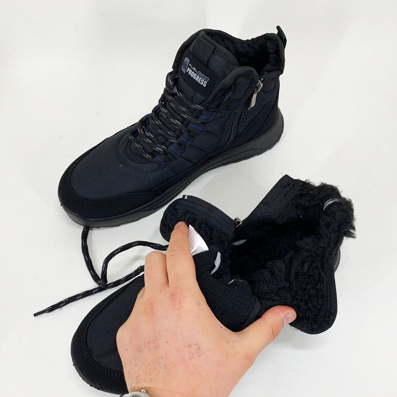 Чоловічі черевики — це зручне, легке та функціональне взуття для щоденного використання в холодну пору року. Модель виготовлена з щільного зносостійкого текстилю з додатковими вставками, що підвищують міцність. Внутрішнє утеплення зі штучного хутра гарантує тепло та комфорт у прохолодну погоду. Шнурівка дозволяє точно регулювати посадку, забезпечуючи надійну фіксацію стопи.
