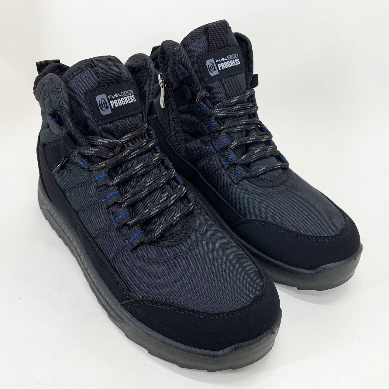Чоловічі черевики — це зручне, легке та функціональне взуття для щоденного використання в холодну пору року. Модель виготовлена з щільного зносостійкого текстилю з додатковими вставками, що підвищують міцність. Внутрішнє утеплення зі штучного хутра гарантує тепло та комфорт у прохолодну погоду. Шнурівка дозволяє точно регулювати посадку, забезпечуючи надійну фіксацію стопи.