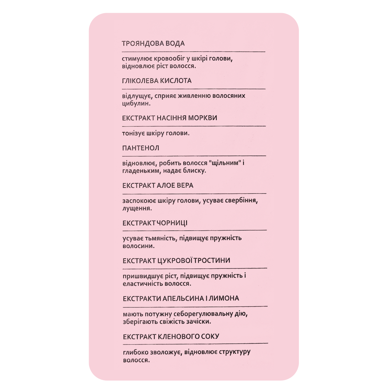 екстракт алое віра - заспокоює шкіру голови, зменшує свербіння, кількість білих сухих лусочок;