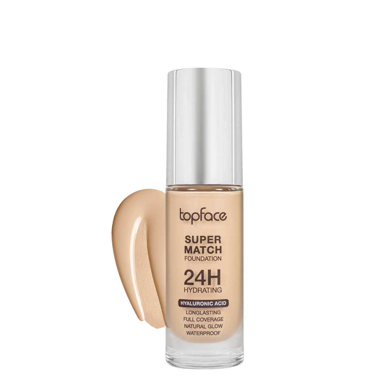 Водостійкий тональний крем TopFace Super Match 24H Foundation PT475 з гіалуроновою кислотоюЦей крем вирівнює тон обличчя, зволожує шкіру й дарує вам бездоганний макіяж упродовж усього дня. Шкіра має сяйний вигляд і випромінює свіжість із ранку до вечора.Завдяки легкій текстурі тональний крем TopFace Super Match 24H Foundation легко розподіляється, приховуючи вади, не створюючи водночас ефекту маски.Тональна основа має підвищену водостійкість. Тому макіяж допомагає вам мати бездоганний вигляд навіть у снігопад, дощ, влітку на пробіжці.Активний компонент тоналки — гіалуронова кислота. Потужний зволожувач допомагає шкірі зберегти природний водний баланс і запобігає зневодненню навіть під шаром макіяжу.Тональна основа від турецького бренда TopFace доступна у 8 відтінках, тому ви з легкістю підберете свій варіант тонального засобу.Переваги тонального крему для обличчя TopFace Super Match Foundation 24H:глибоке зволоження шкіри;