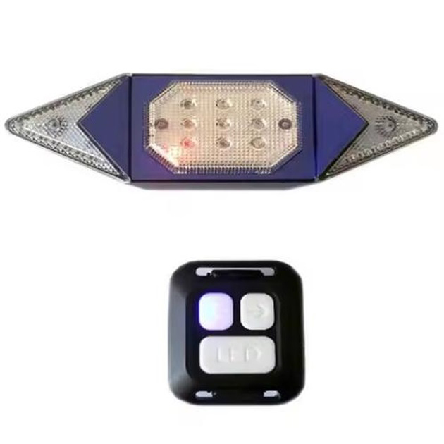 Задній габаритний вело ліхтар із поворотами LY-6700 – це яскрава задня габаритна стоп фара у пластиковому водонепроникному корпусі з опцією покажчика поворотів. Червоний габаритний сигнал та жовті повороти. Тип діодів SMD.