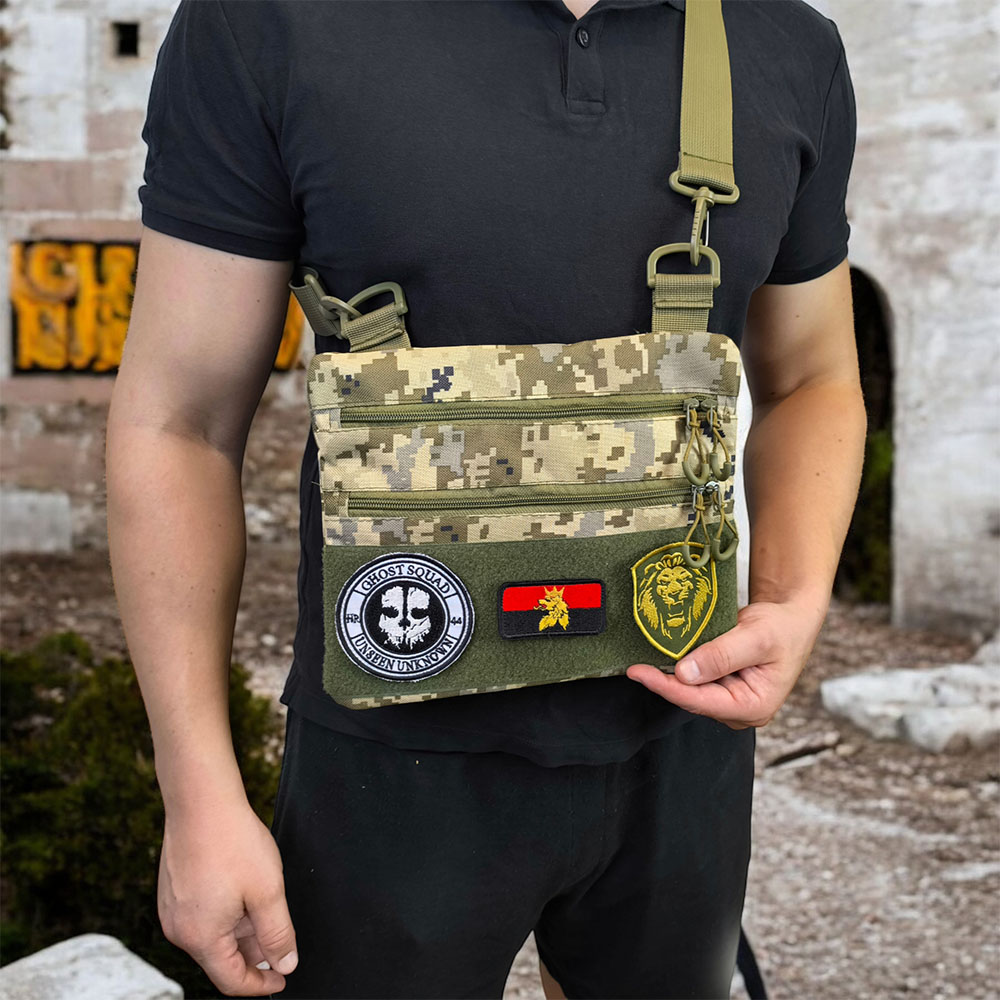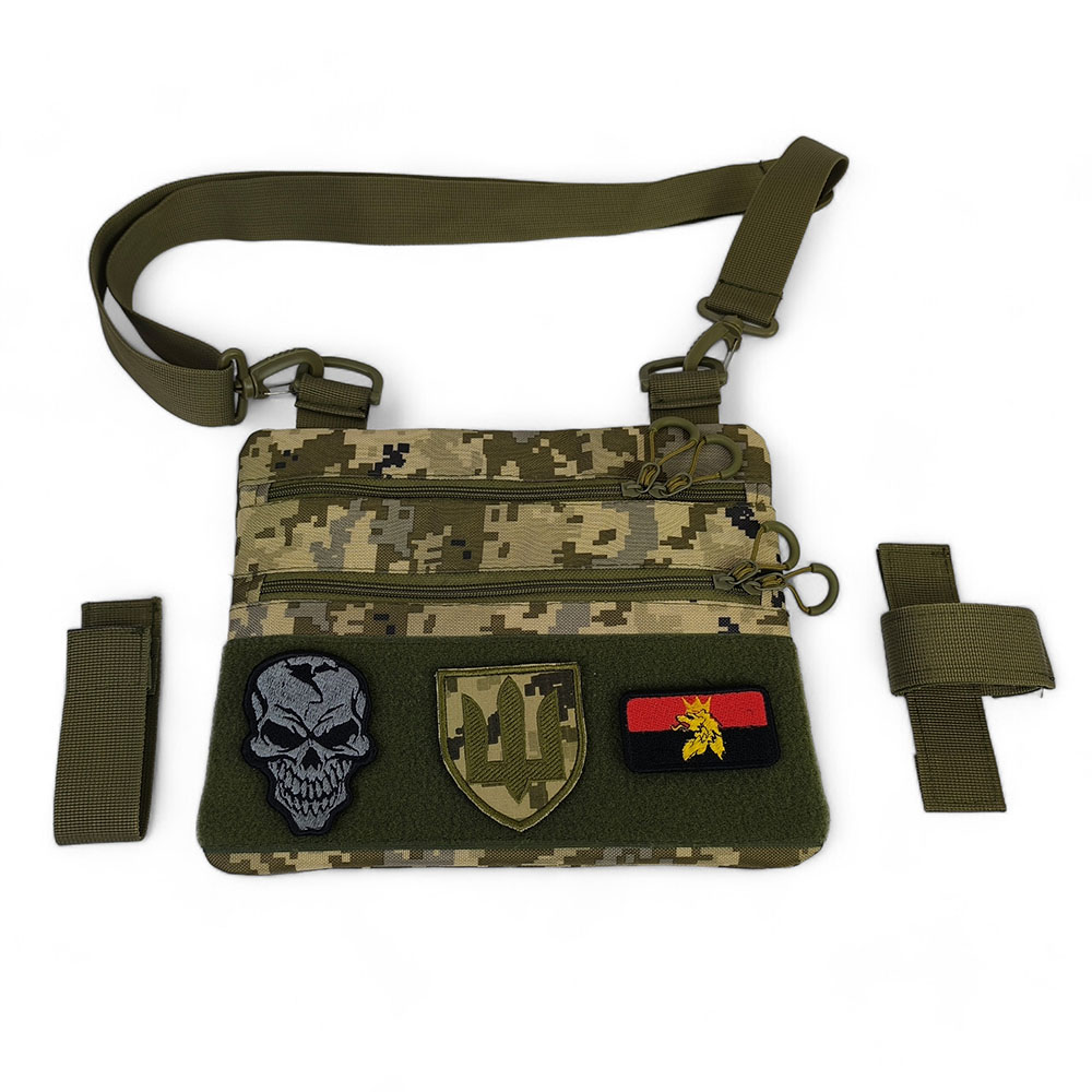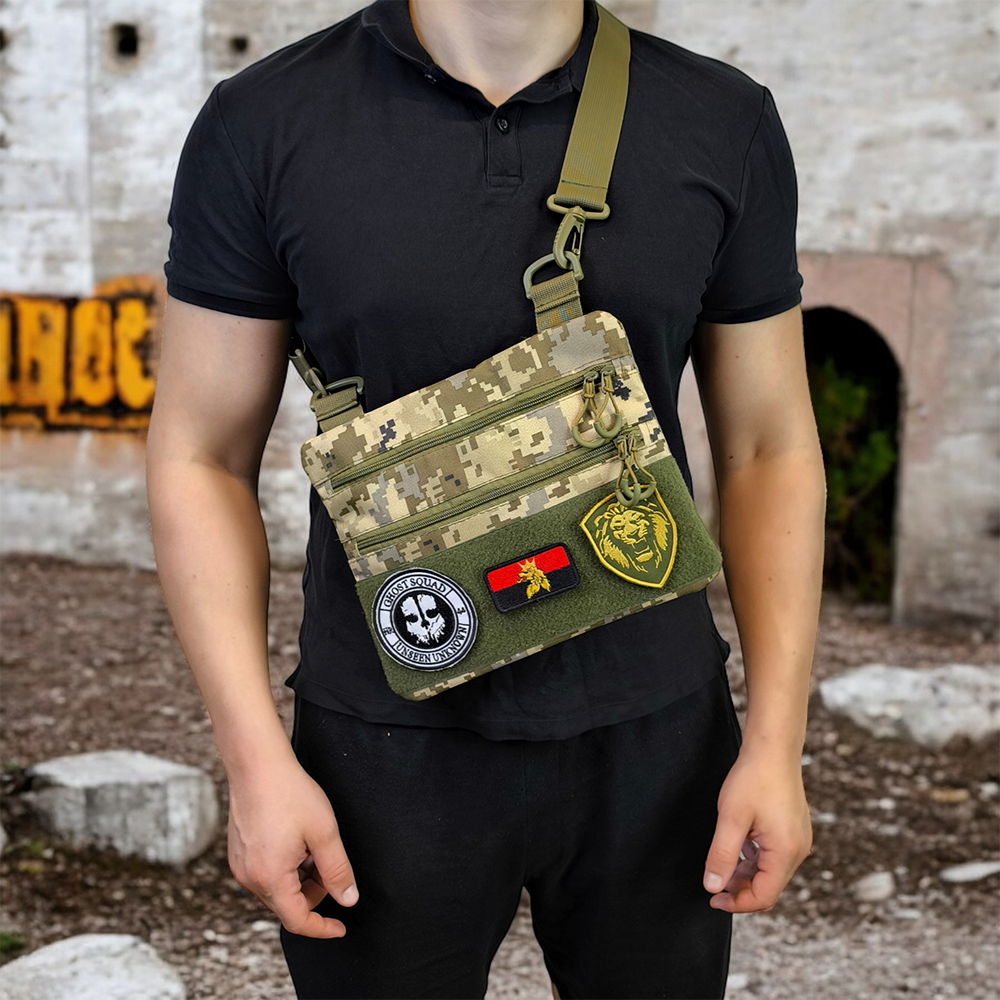 - Патч панель: Наявність патч панелі дозволяє розміщувати ваші патчі та шеврони для персоналізації сумки.