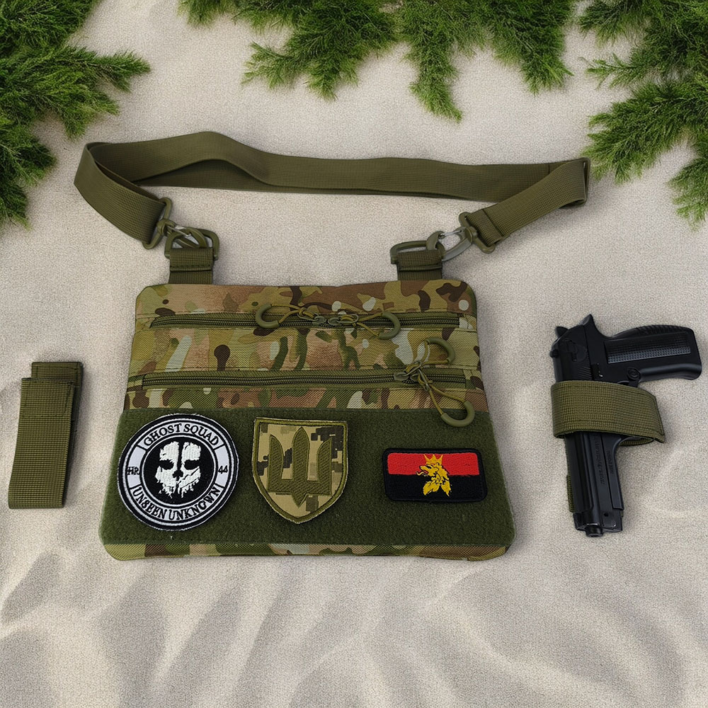 Тактичний рюкзак через плече, Нагрудна сумка чоловіча тактична тканинна, Нагрудна сумка кобура