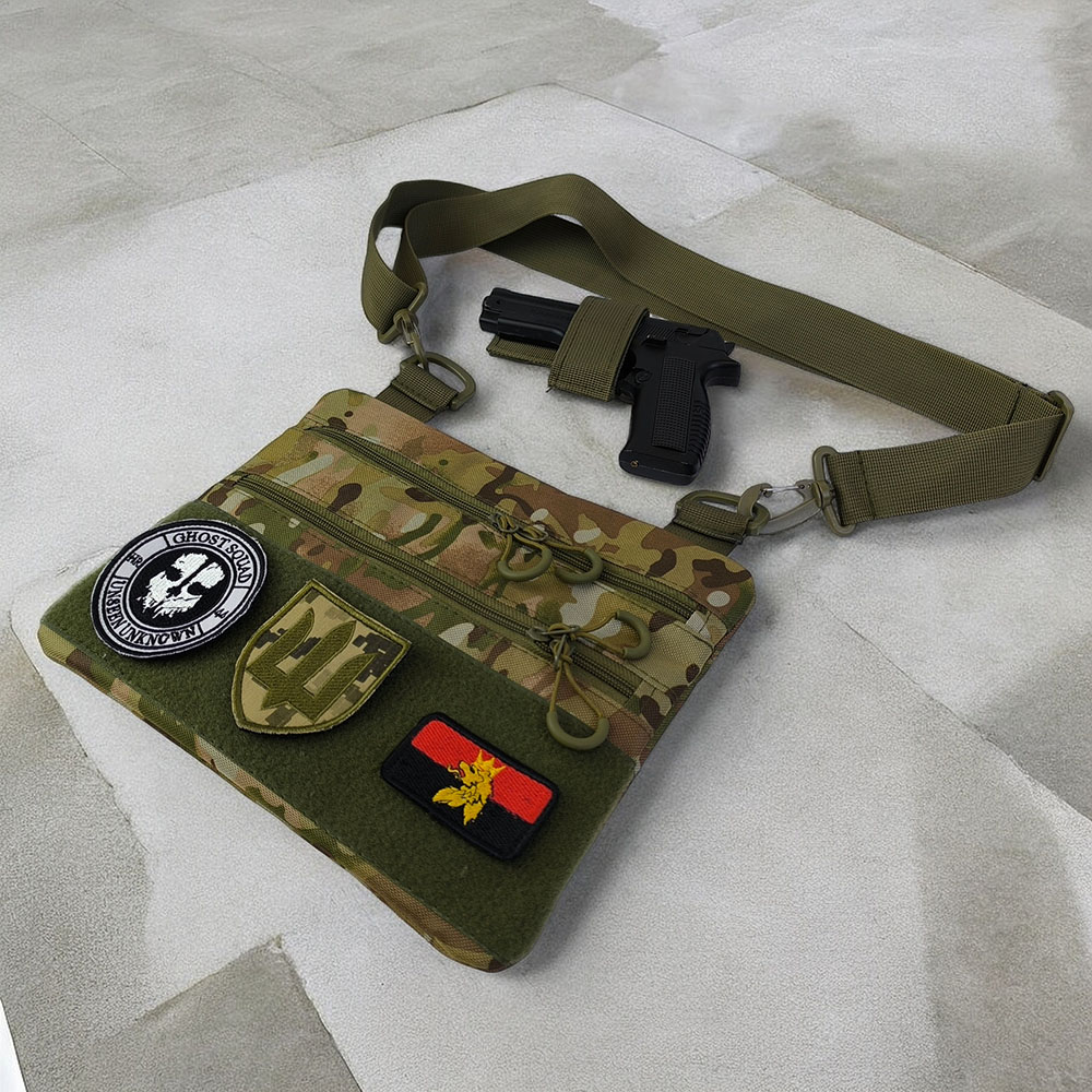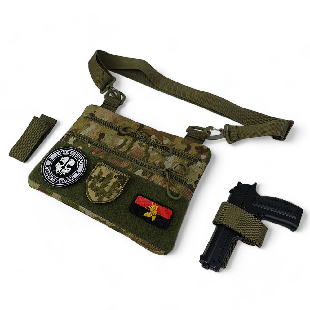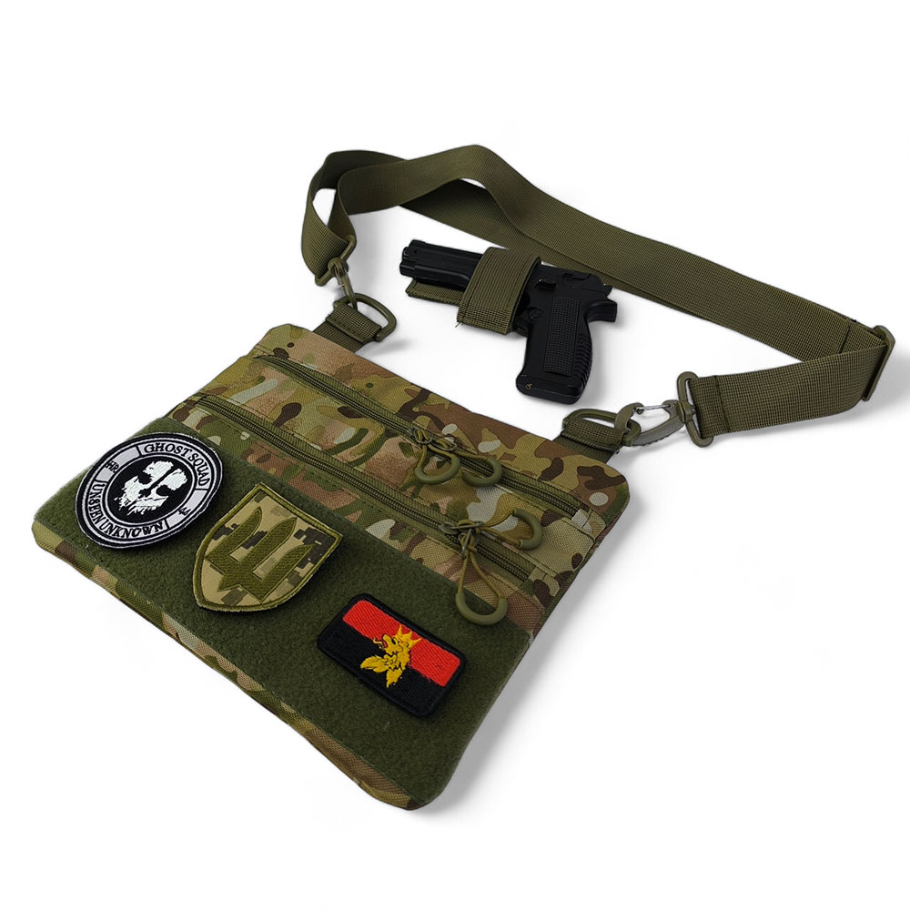 Ця стильна і функціональна тактична сумка-кобура з мультикам камуфляжем розроблена для безпечного і зручного носіння пістолета. Виготовлена з високоякісної кордура, вона забезпечує надійний захист і тривалий термін служби. Розмір сумки складає 30 х 24 см, що робить її компактною та місткою одночасно.