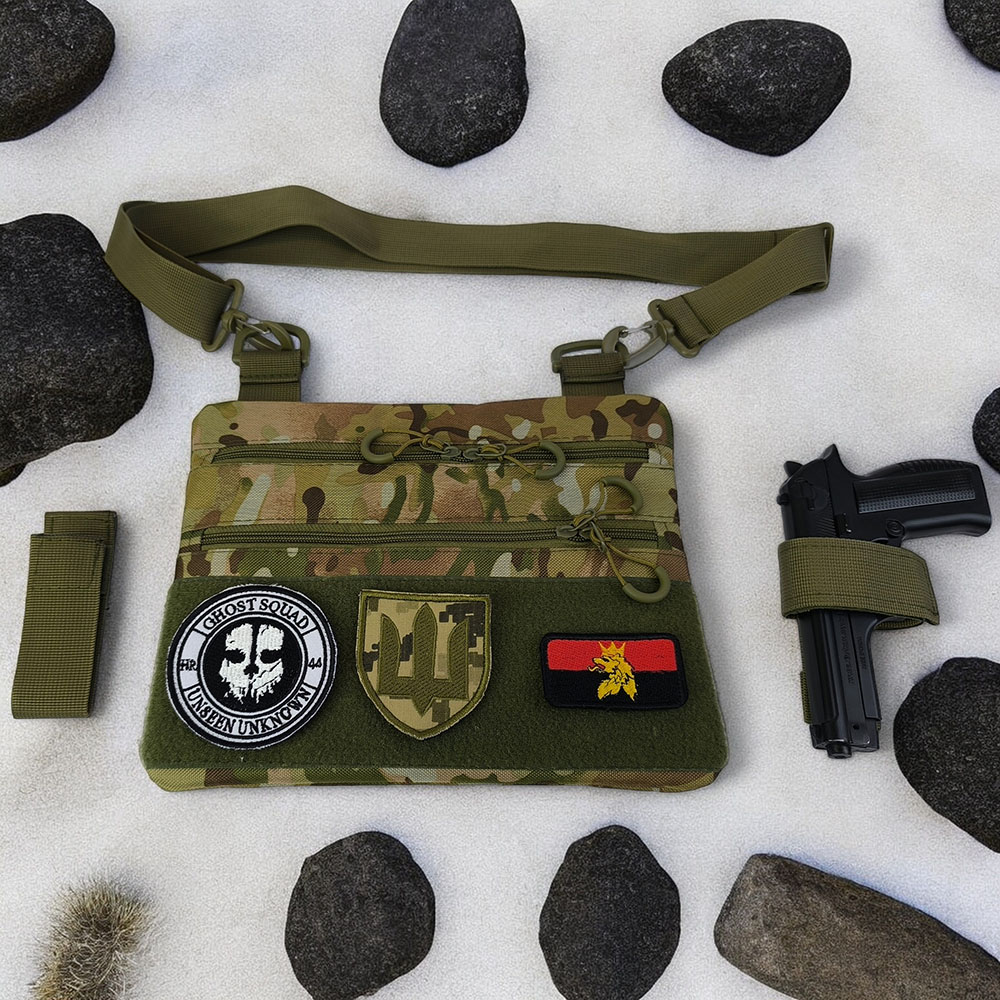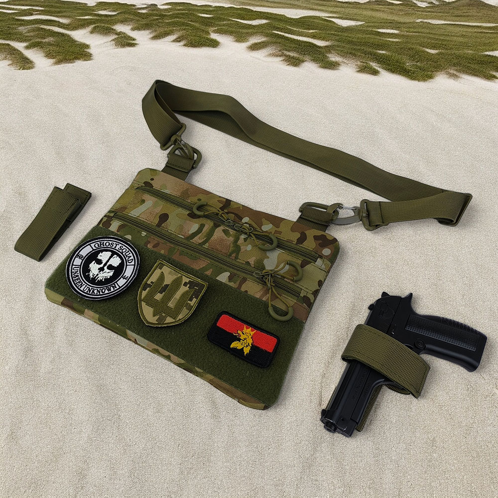 - Зйомна кобура і чохол для магазина: Сумка укомплектована зйомною кобурою для пістолета та зйомним чохлом для магазина, що гарантує надійну фіксацію зброї.