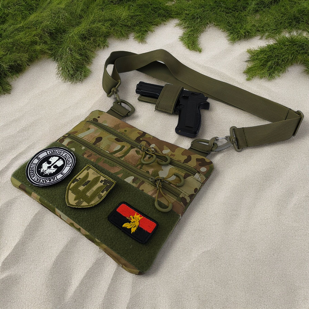 Ця стильна і функціональна тактична сумка-кобура з мультикам камуфляжем розроблена для безпечного і зручного носіння пістолета. Виготовлена з високоякісної кордура, вона забезпечує надійний захист і тривалий термін служби. Розмір сумки складає 30 х 24 см, що робить її компактною та місткою одночасно.