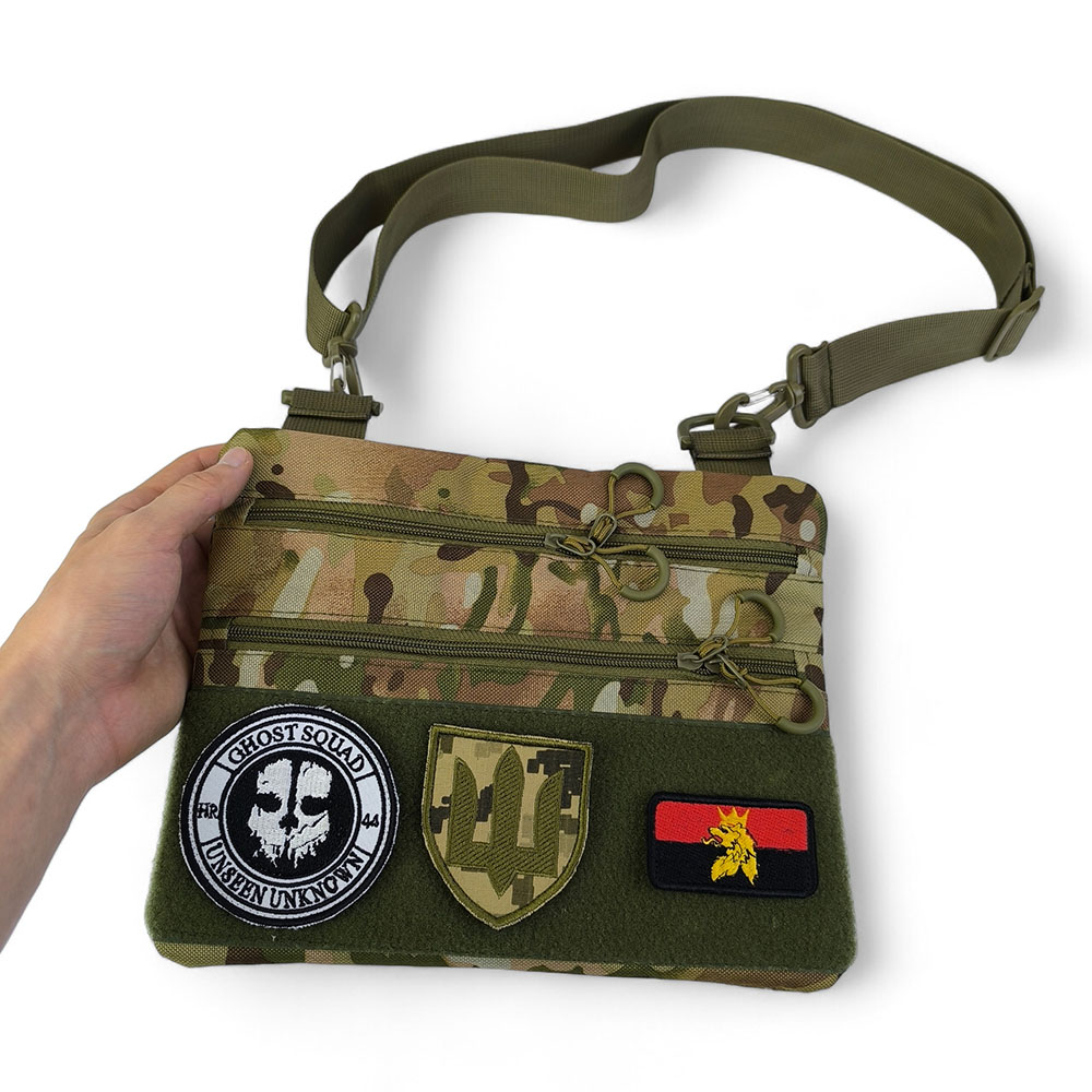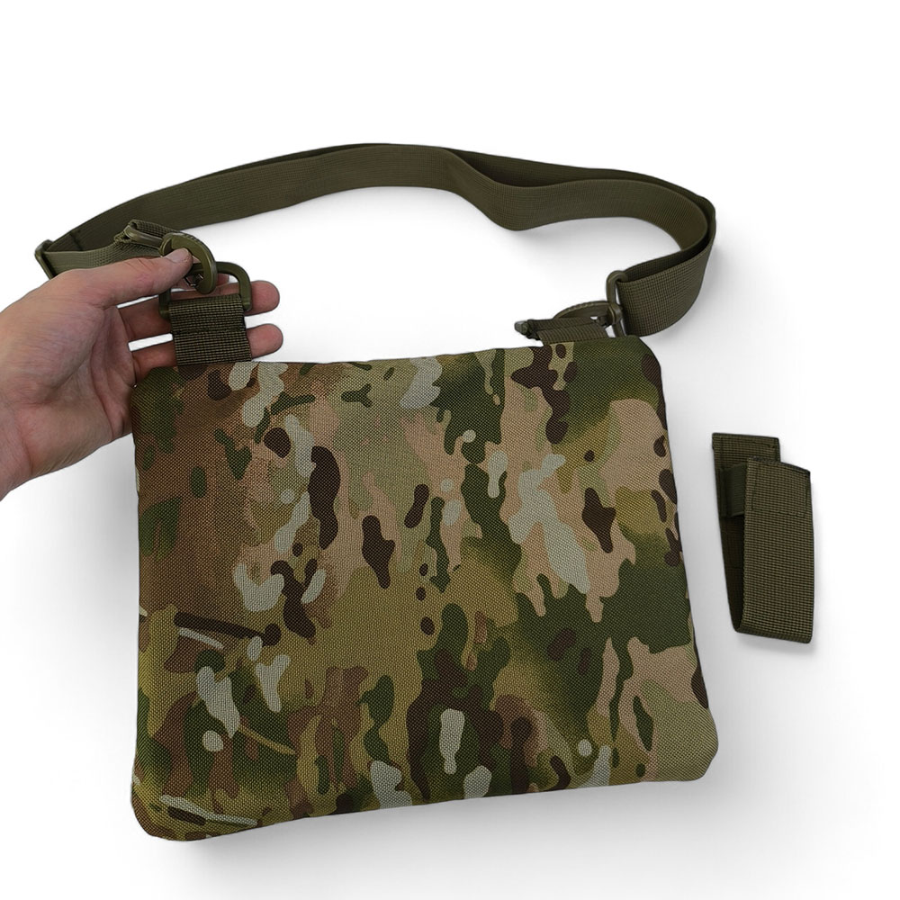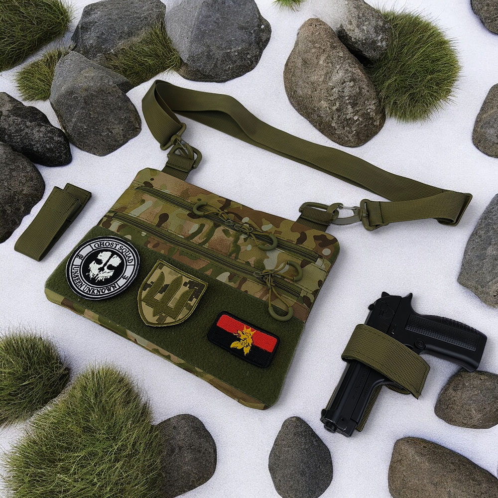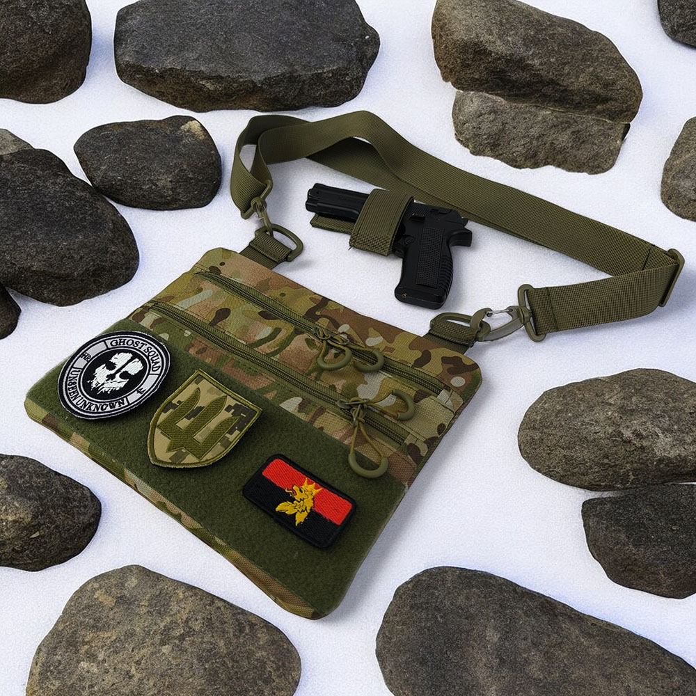 Ця стильна і функціональна тактична сумка-кобура з мультикам камуфляжем розроблена для безпечного і зручного носіння пістолета. Виготовлена з високоякісної кордура, вона забезпечує надійний захист і тривалий термін служби. Розмір сумки складає 30 х 24 см, що робить її компактною та місткою одночасно.