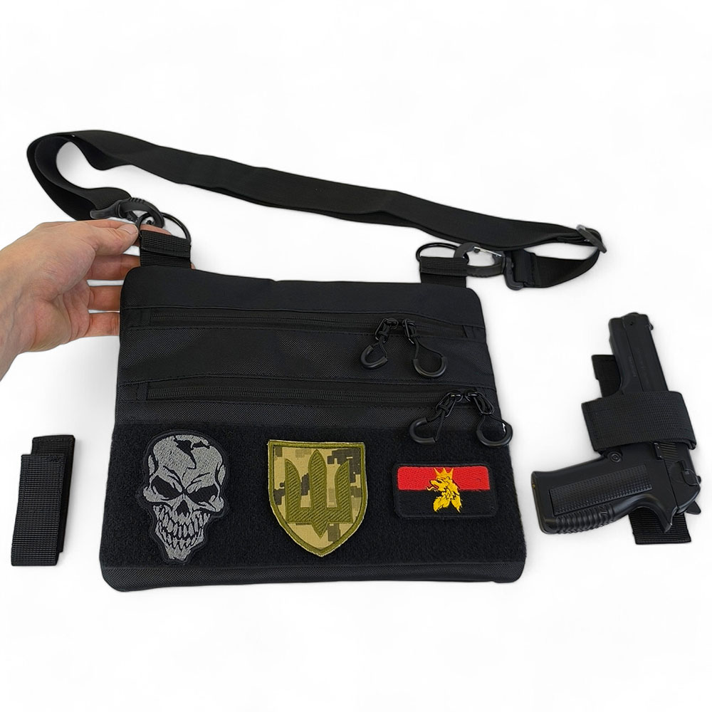 - Зйомна кобура і чохол для магазина: Сумка включає зйомну кобуру, яка надійно фіксує ваш пістолет, та зйомний чохол для магазина, забезпечуючи зручність і безпеку.