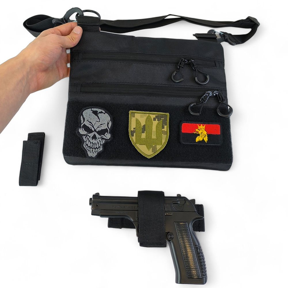 - Зйомна кобура і чохол для магазина: Сумка включає зйомну кобуру, яка надійно фіксує ваш пістолет, та зйомний чохол для магазина, забезпечуючи зручність і безпеку.