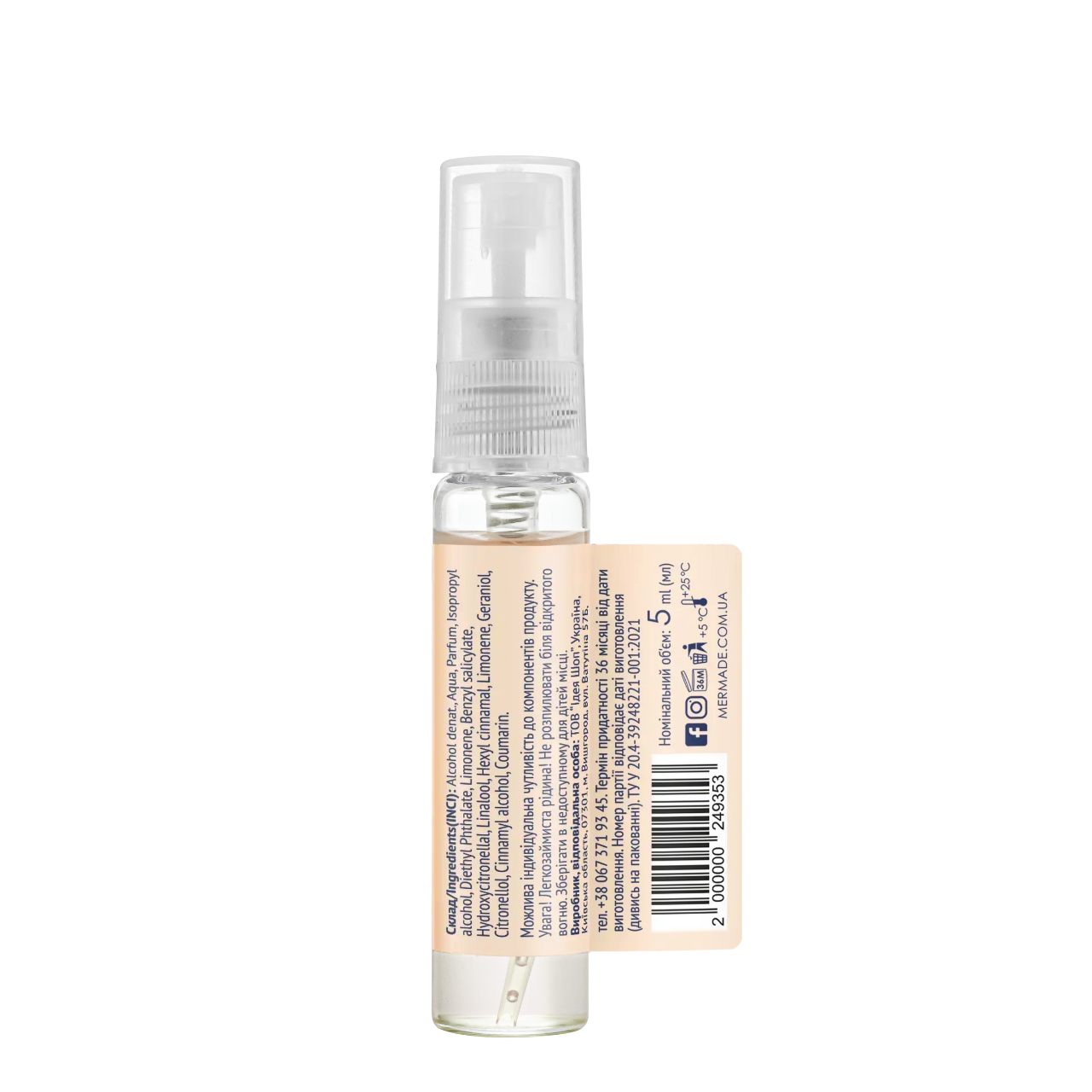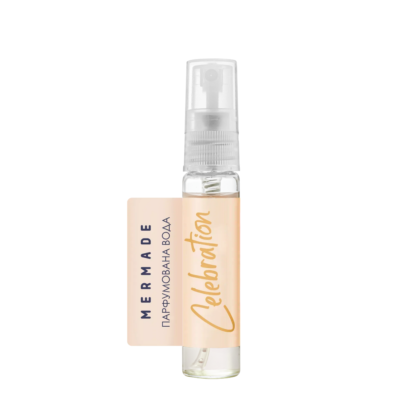 Парфумована вода для жінок Mermade CelebrationПарфуми Mermade Celebration – яскравий, святковий аромат. Композиція розкривається соковитою грушею та пряним рожевим перцем.Далі у гру вступає нота серця, пронизана ароматною кавою, п'янким жасмином і гірким мигдалем. У шлейфі залишається акорд ніжної ванілі та кашемірового дерева.Парфумована вода Mermade Champagne для впевнених та енергійних жінок, які люблять бути у центрі уваги та цінують атмосферу свята. Аромат підкреслить їхню індивідуальність усюди — на ділових зустрічах, особливих заходах та вечірках.Тип аромату: квіткові.Початкова нота: груша, рожевий перець.Нота серця: кава, жасмин, гіркий мигдаль.Кінцева нота: ваніль, кашемірове дерево.Об'єм: 5 мл