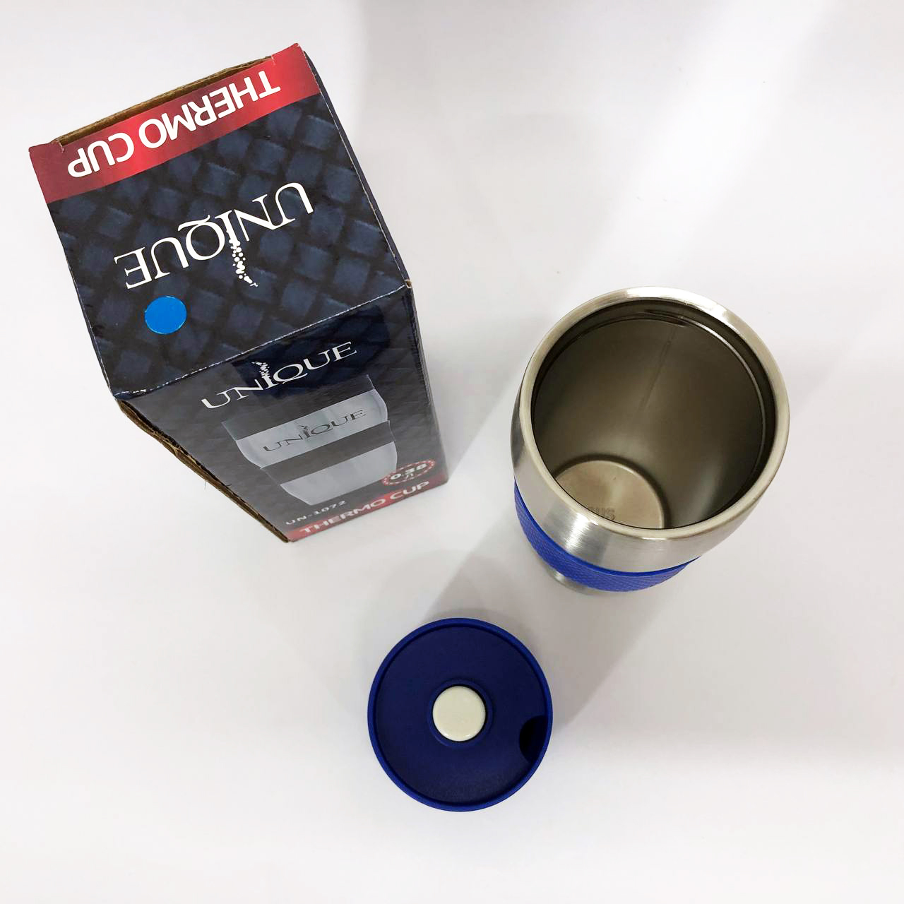 Термокухоль UNIQUE 0,38 л (UN-1072) ― це термокухоль, виконаний з нержавіючої сталі з емальованим глянсовим покриттям стійким до подряпин і механічних пошкоджень.Кружка має прогумовану вставку різних кольорів, завдяки чому вона не ковзає в руках і її зручно тримати.Стильний та яскравий дизайн додасть гарного настрою у будь-яку погоду.