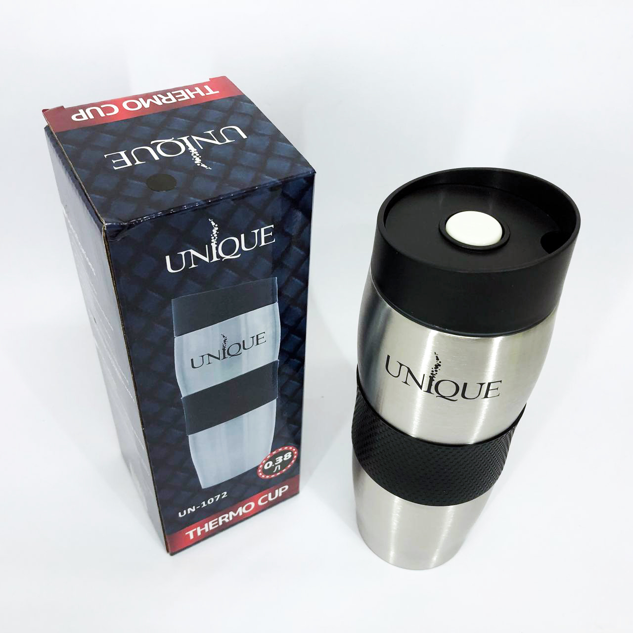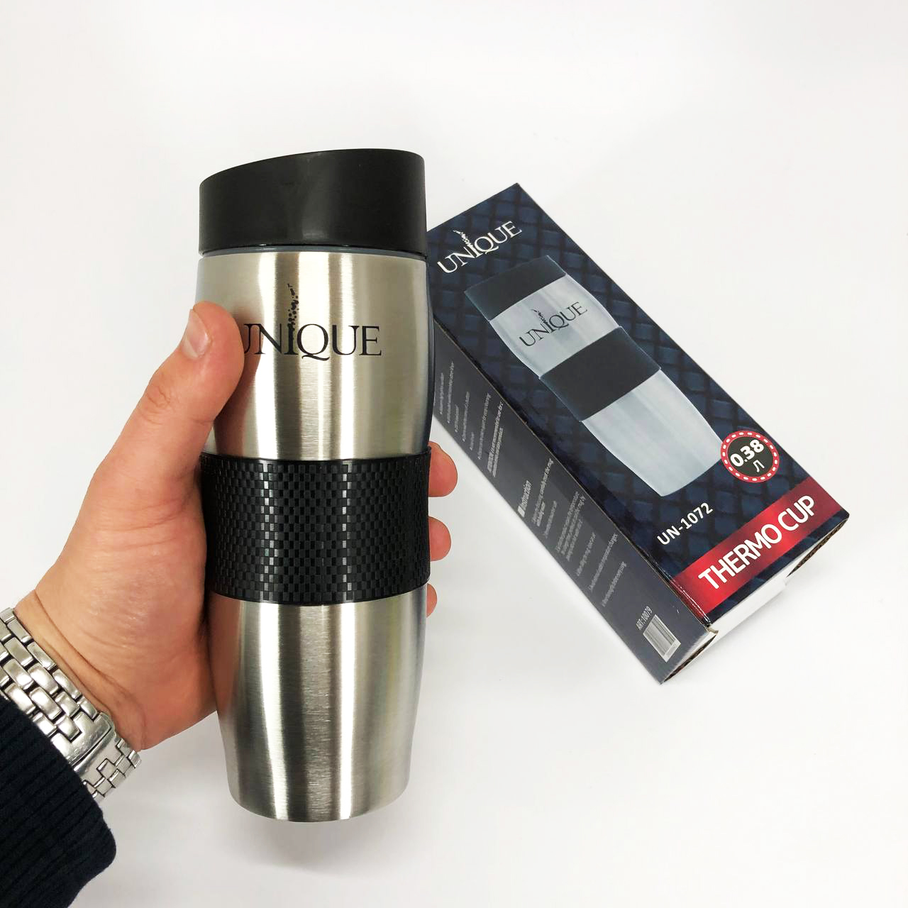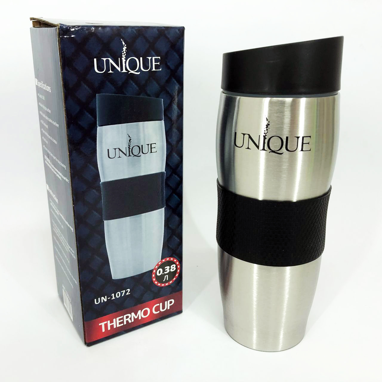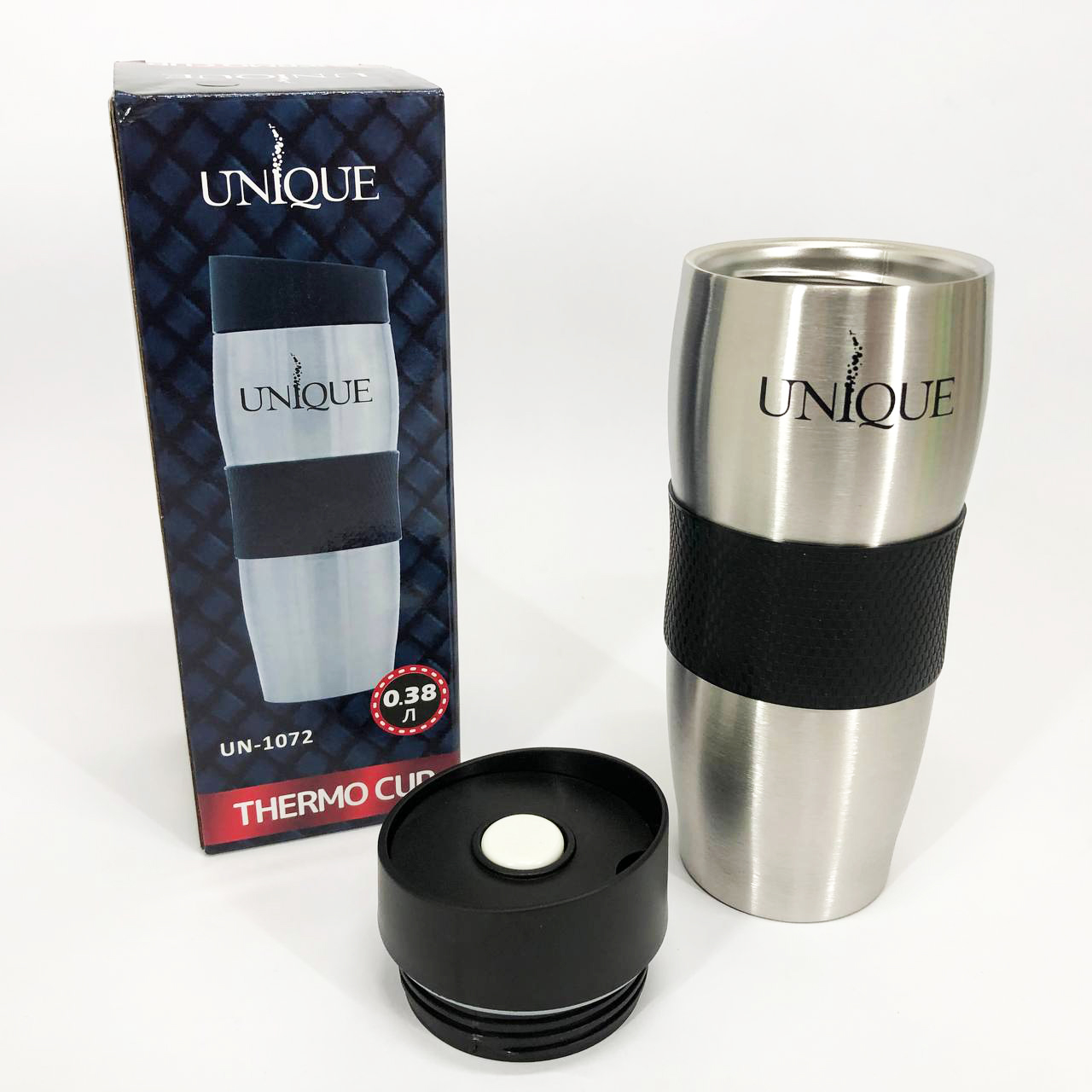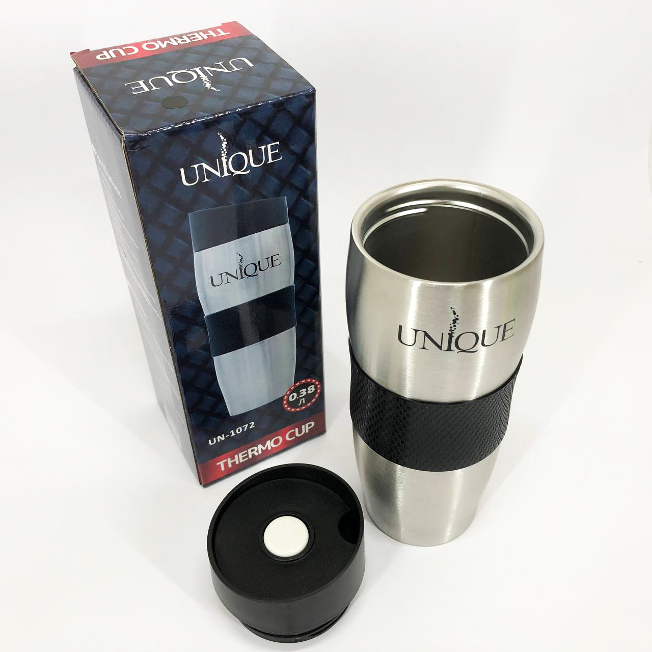 Термокухоль UNIQUE UN-1072 0.38 л, Термос туристичний для напоїв, Фляга для пікніка. Колір: чорний