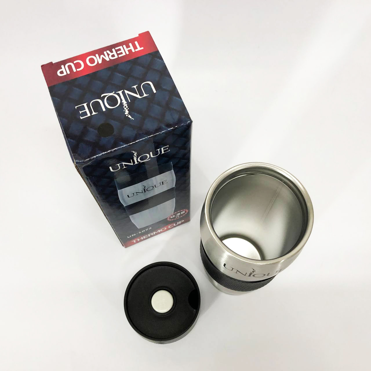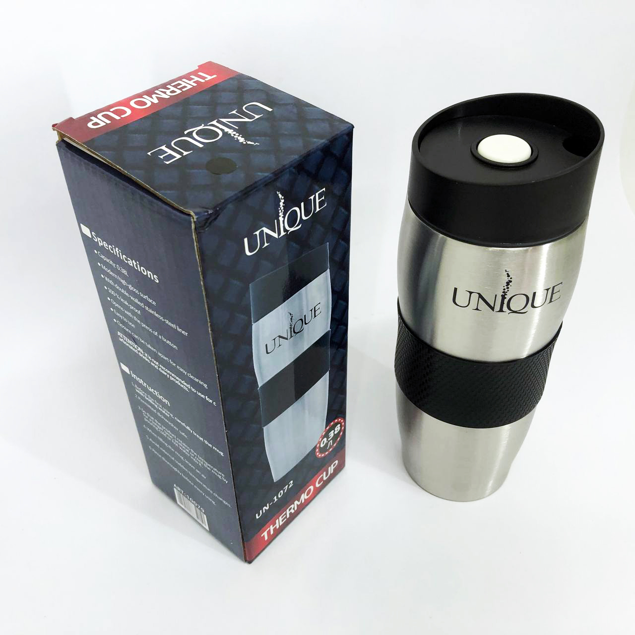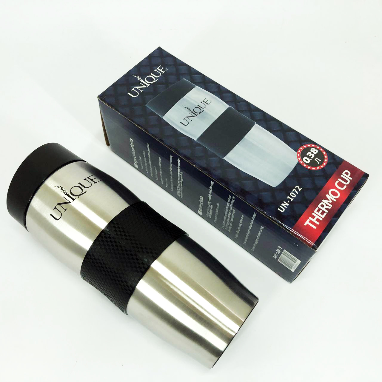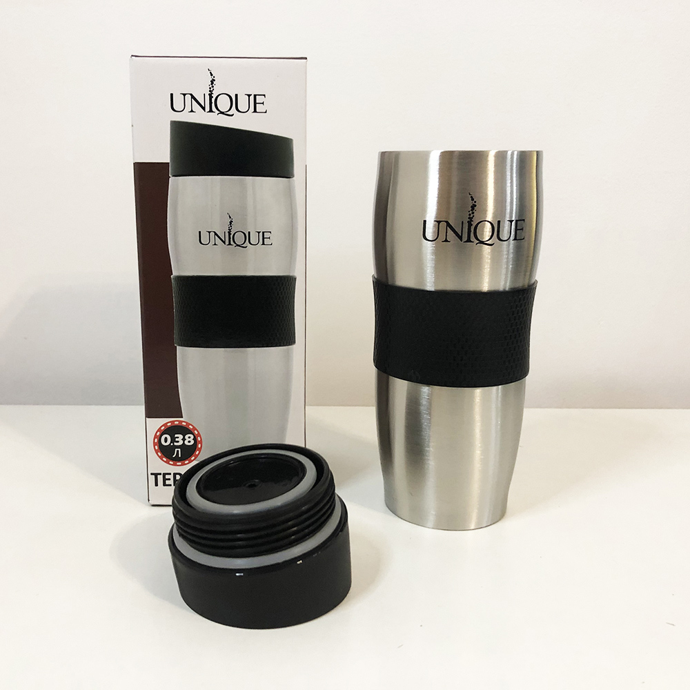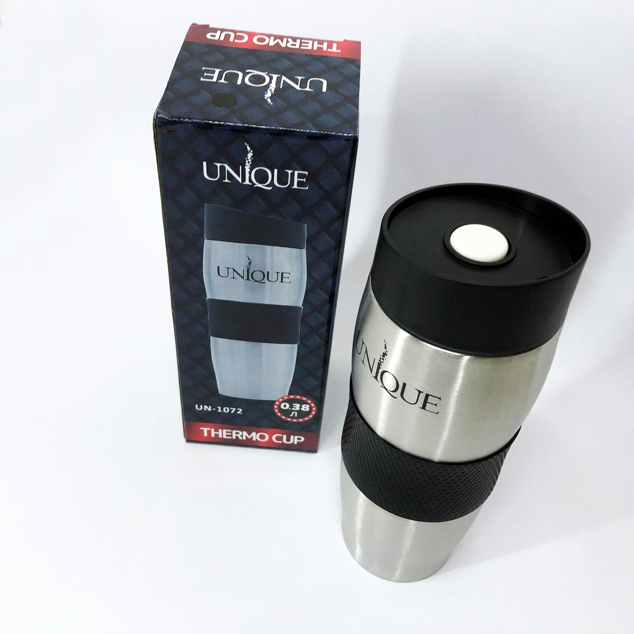 Термокухоль UNIQUE UN-1072 0.38 л, Термос туристичний для напоїв, Фляга для пікніка. Колір: чорний