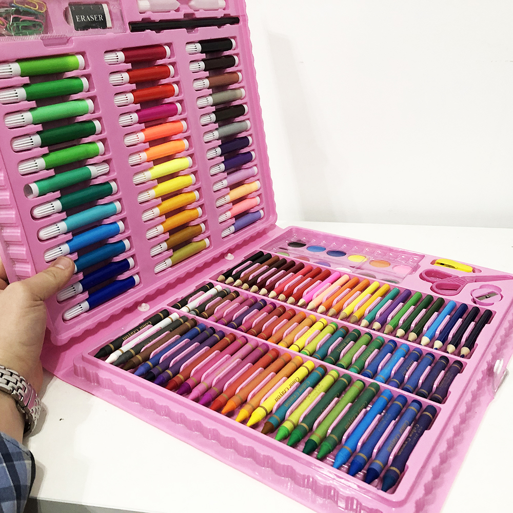 Художній набір для творчості 208 предметів – це знахідка для творця. У наборі знаходяться відразу всі предмети, необхідні створення малюнків, аплікацій та інших шедеврів. Діти будуть особливо раді такому подарунку – всі яскраві предмети акуратно розміщені у зручній валізці. Величезний вибір канцелярських товарів допоможе швидше розвиватись дитині.