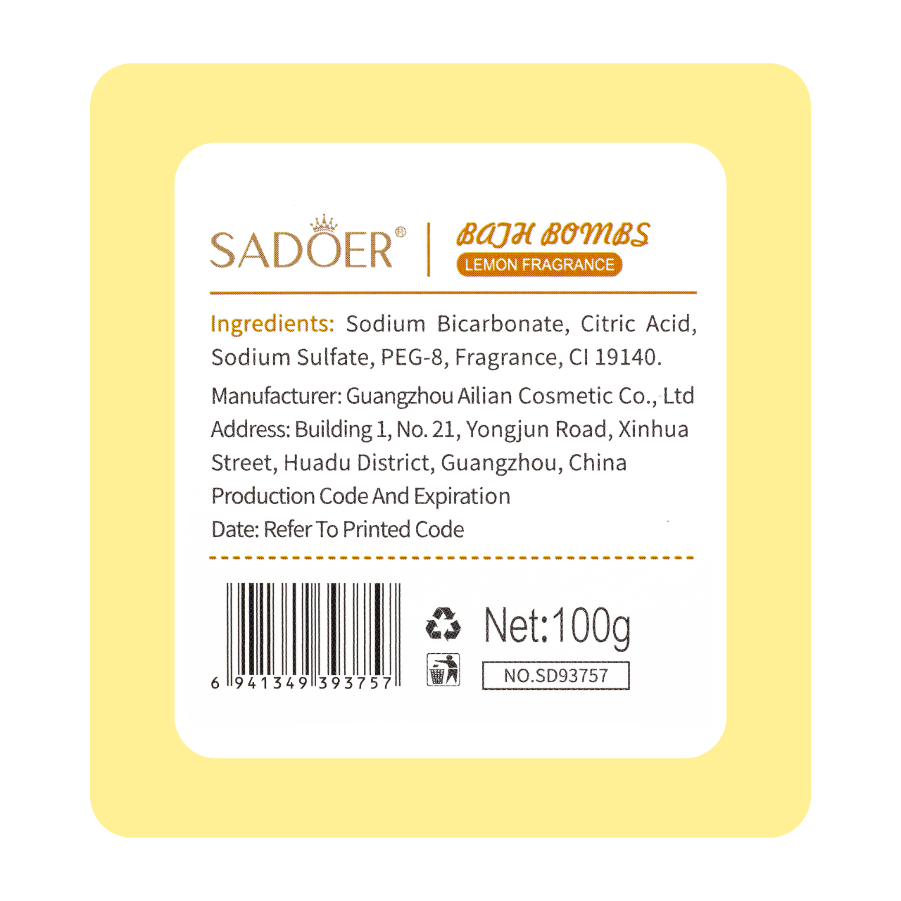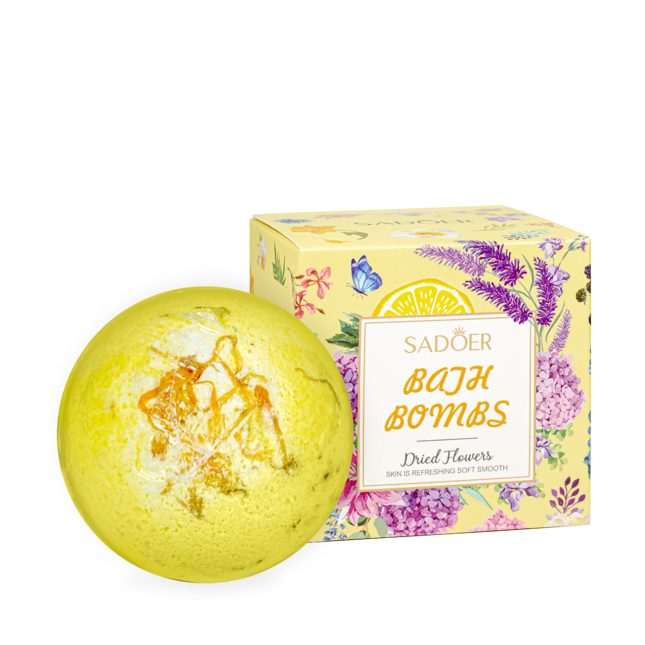 Пінна бомбочка для ванни із сухими квітами Sadoer Lemon Fragrance "Лимон" (SD93771)Пориньте у світ релакса з ароматизованими пінними бомбочками для ванни від Sadoer! Насолоджуйтеся розкішним освіжним ароматом лимона, який огорне вас ніжною хмарою й допоможе зняти напруження та втому, делікатно очистити шкіру та зберегти її м'якою, зволоженою. А ніжні сухоцвіти в незвичайній бомбочці для прийняття ванни додадуть нотку елегантності та прикрасять піну, перетворюючи звичайне купання на спа-ритуал для душі та тіла.Спосіб застосування: Зніміть із бомбочки плівку. Опустіть пінну кульку у ванну, спіньте. Приймайте ванну 15-20 хвилин, поки процедура приносить комфорт і задоволення.Вага: 100 г.