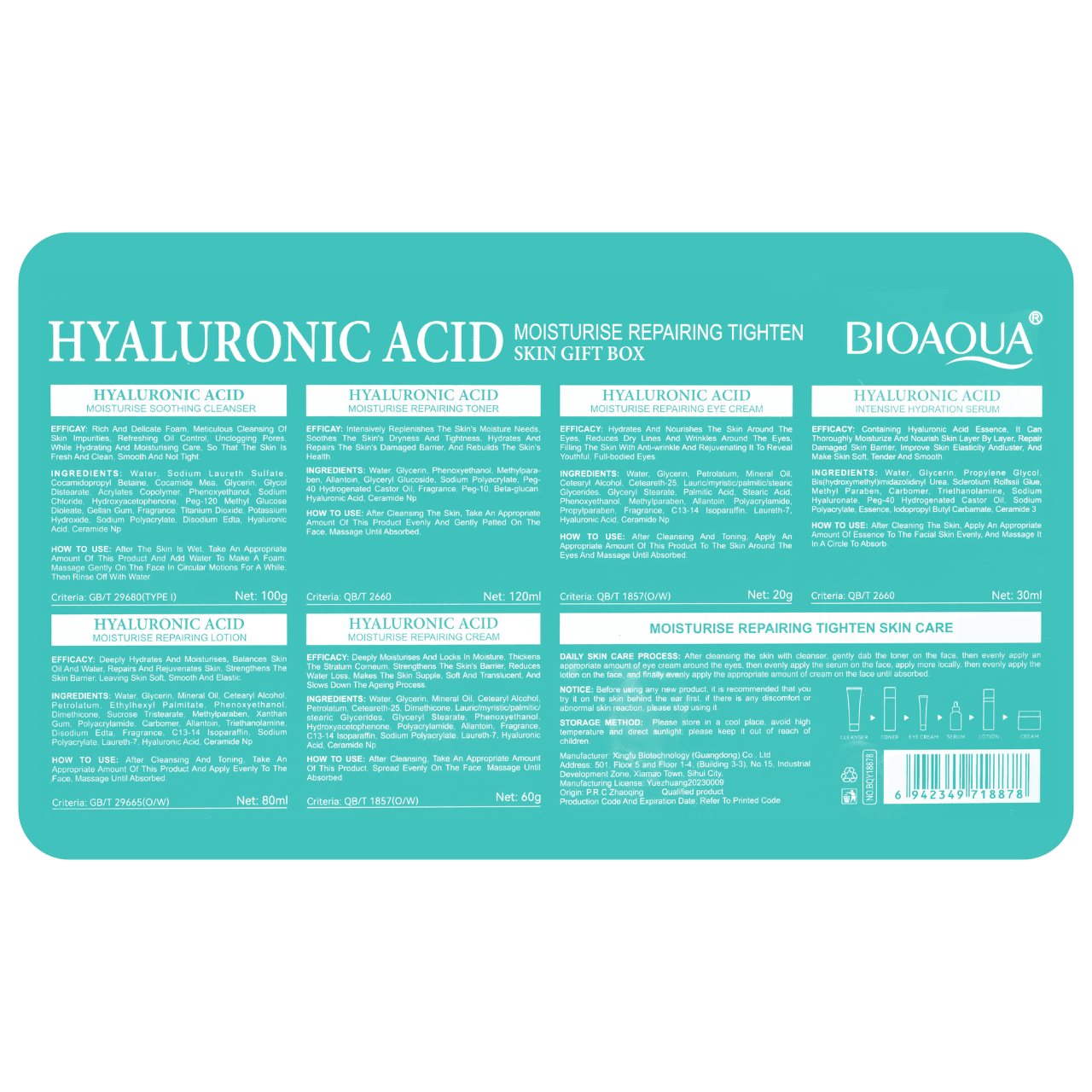 Подарунковий набір косметики для догляду за обличчям Bioaqua Hyaluronic 6 в 1 для жінок.