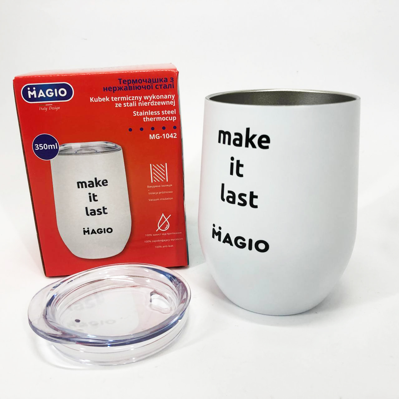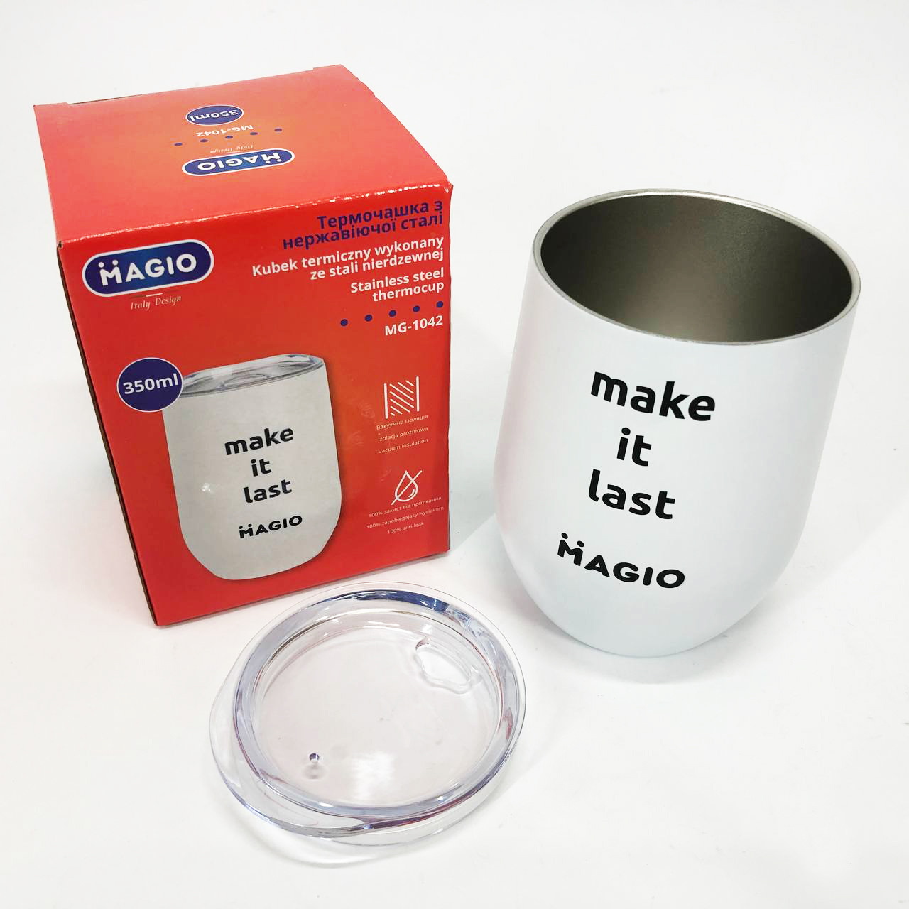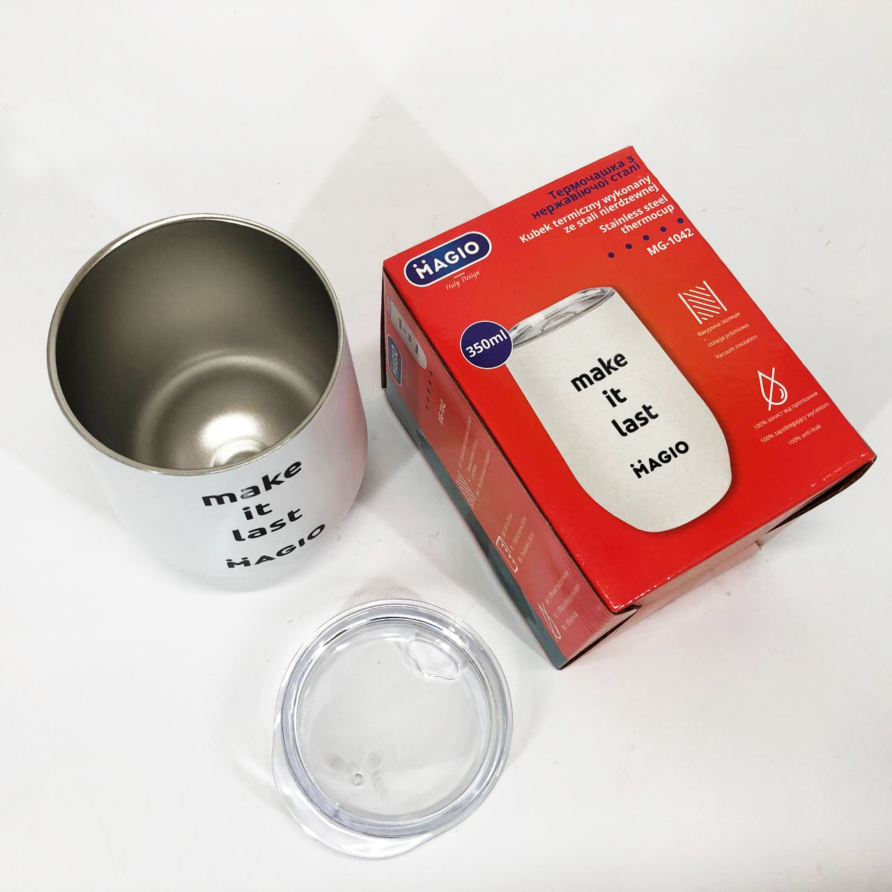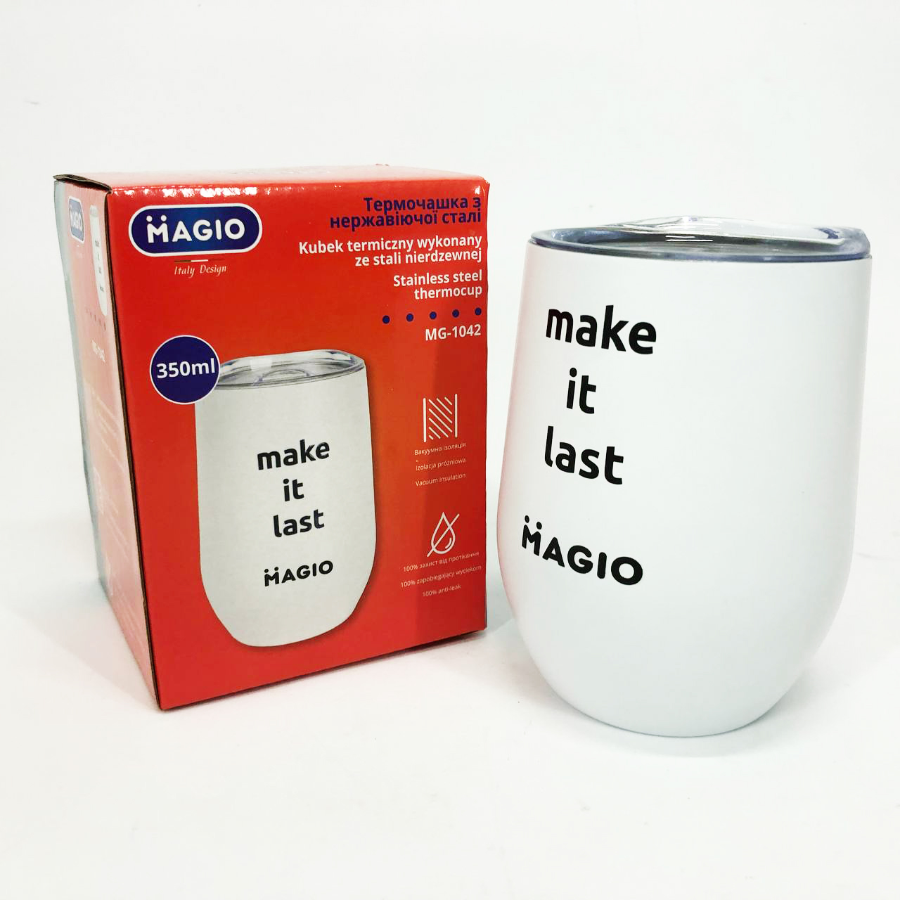 Термокухоль Magio виготовлений в ергономічному дизайні з високоякісної нержавіючої сталі, подвійні стінки надовго збережуть температуру вашого напою і стане в нагоді в будь-якій ситуації, оскільки здатна підтримувати температуру напою довше за будь-яку чашку. Це ідеальне рішення для великого міста, надійний помічник у дорозі.