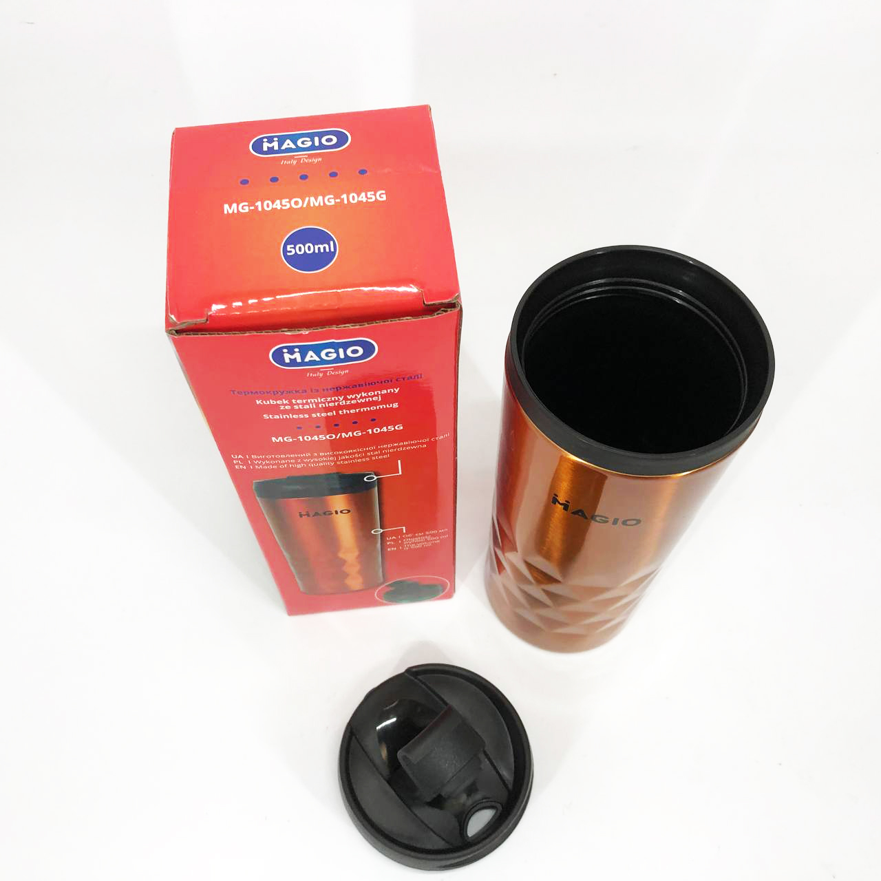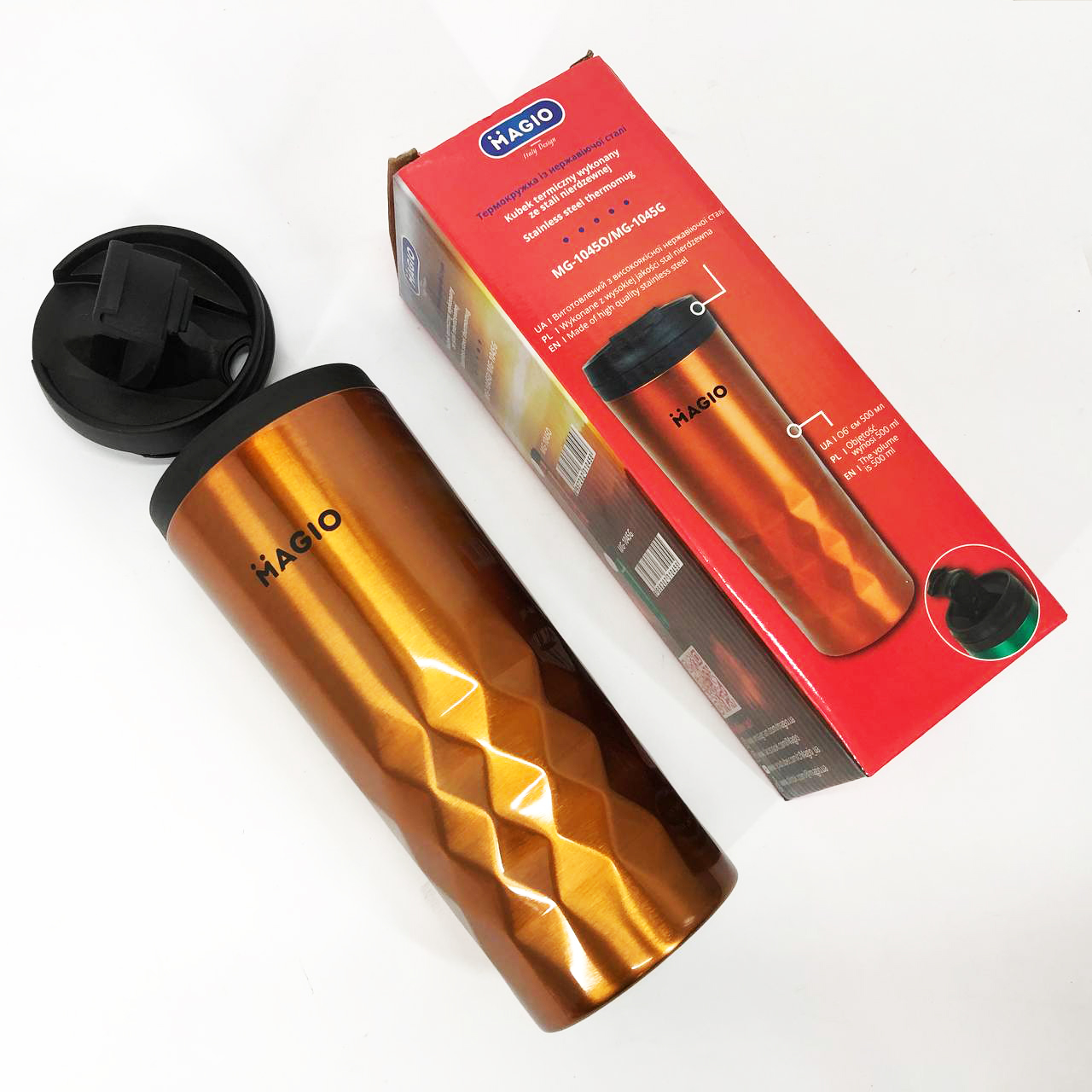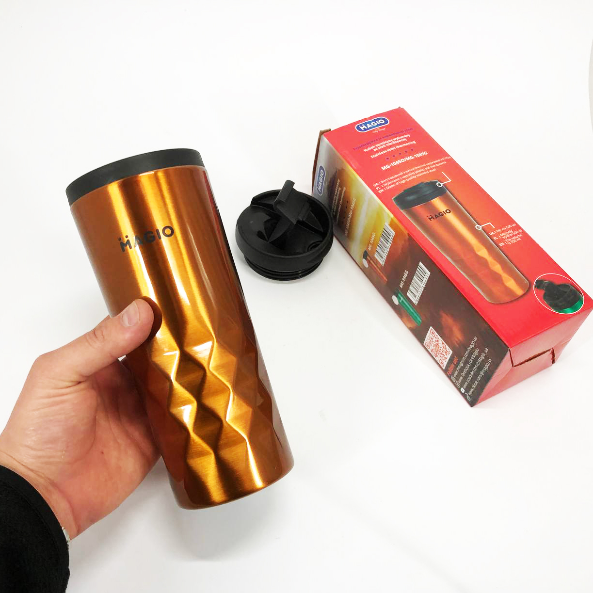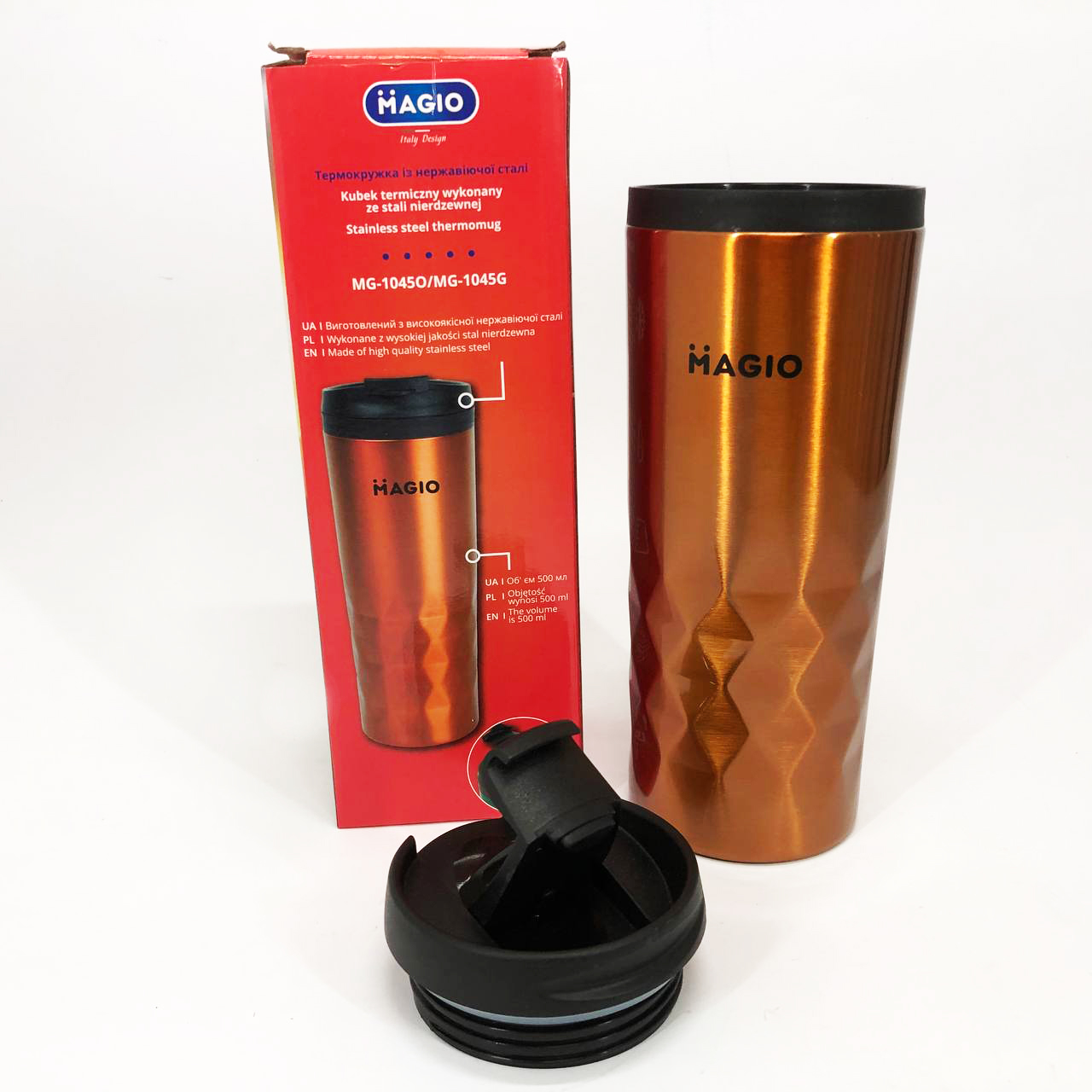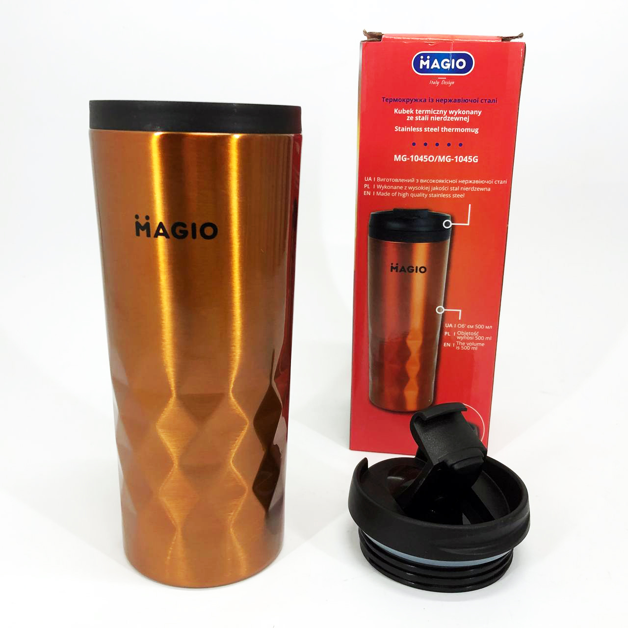 Термокухоль Magio виготовлений в ергономічному дизайні з високоякісної нержавіючої сталі, подвійні стінки надовго збережуть температуру вашого напою і стане в нагоді в будь-якій ситуації, оскільки здатна підтримувати температуру напою довше за будь-яку чашку. Це ідеальне рішення для великого міста, надійний помічник у дорозі.