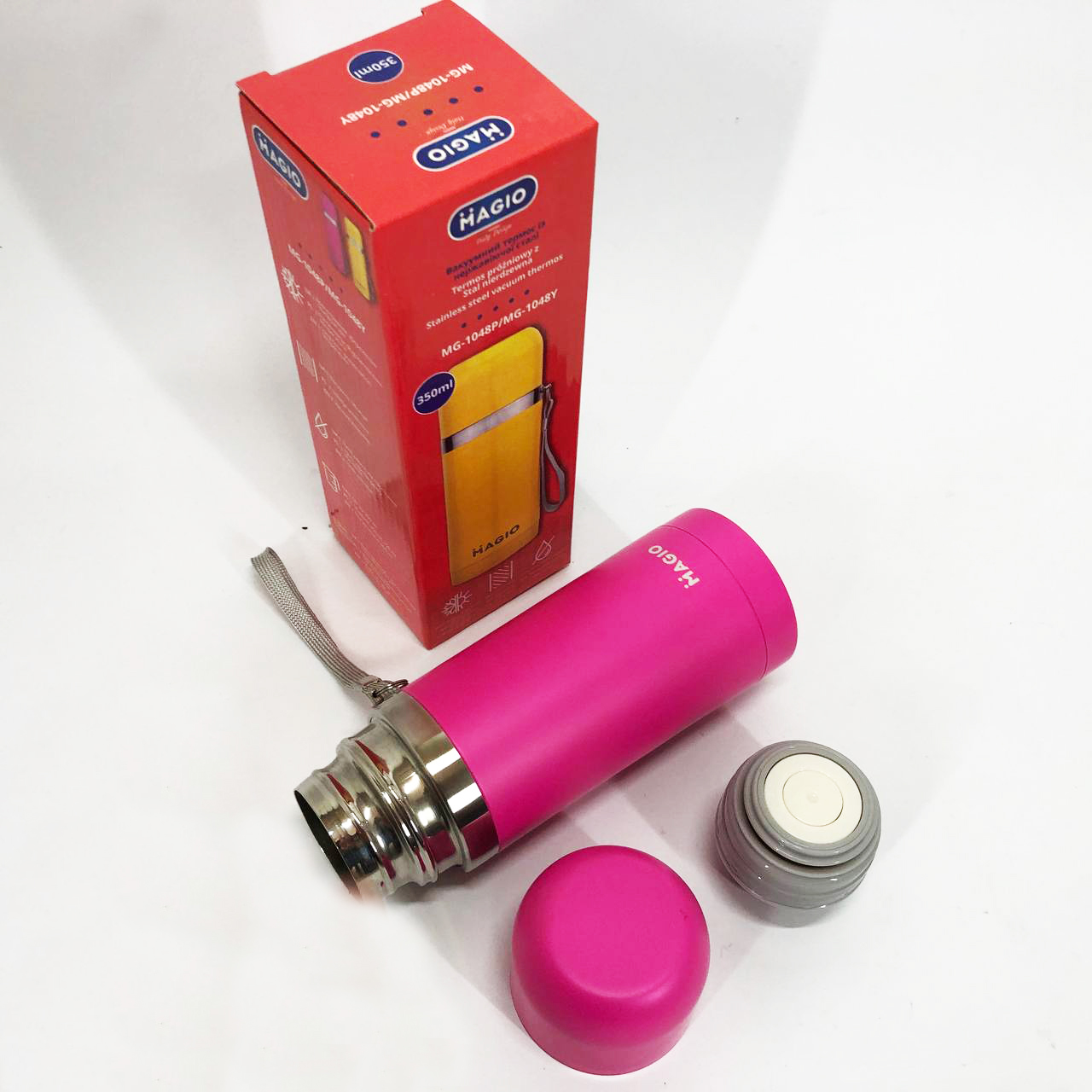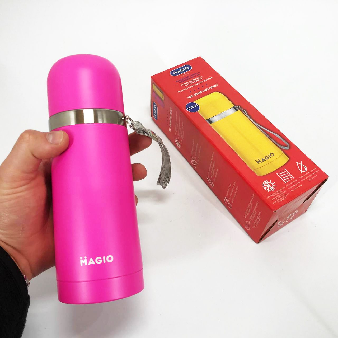 Термос питний Magio MG-1048P 350 мл, Термочашки для гарячих напоїв, Фляга для пікніка. Колір: рожевий