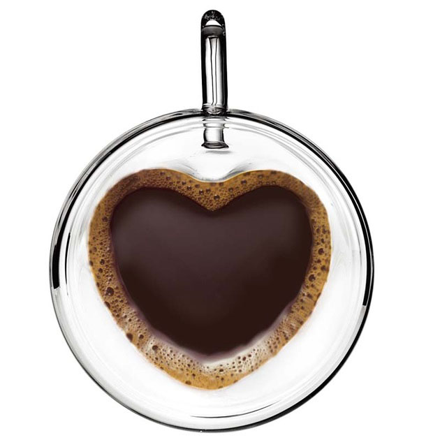 Набір скляних чашок із подвійними стінками (серце) Con Brio СВ-8908-2, 2шт, 80 мл