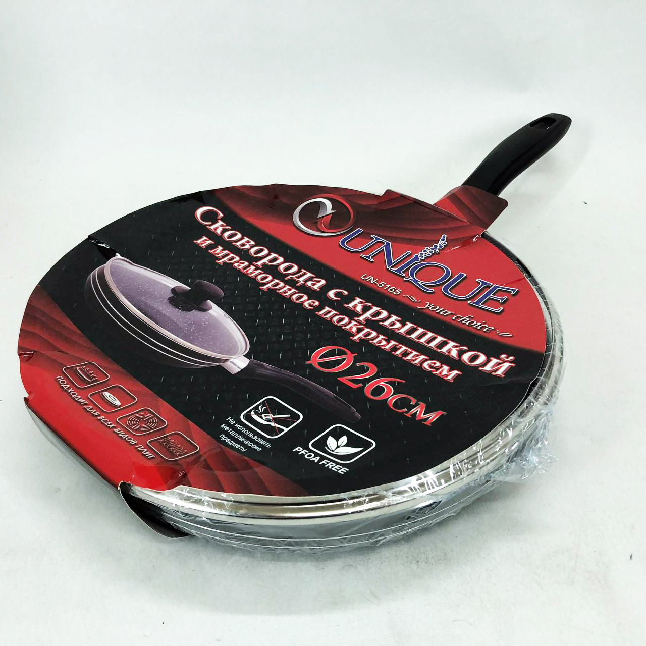 Сковорода з кришкою UNIQUE UN-5165 26 см і із зовнішнім та внутрішнім антипригарним покриттям