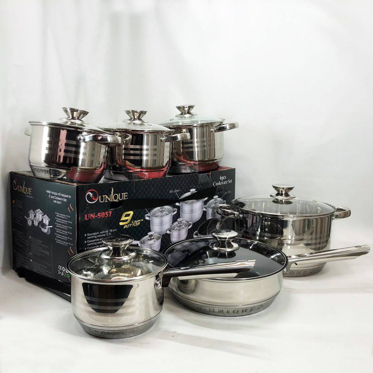 Набір посуду UNIQUE UN-5037 12 предметів (16; 16; 18; 20; 24; сковорода 24 см)