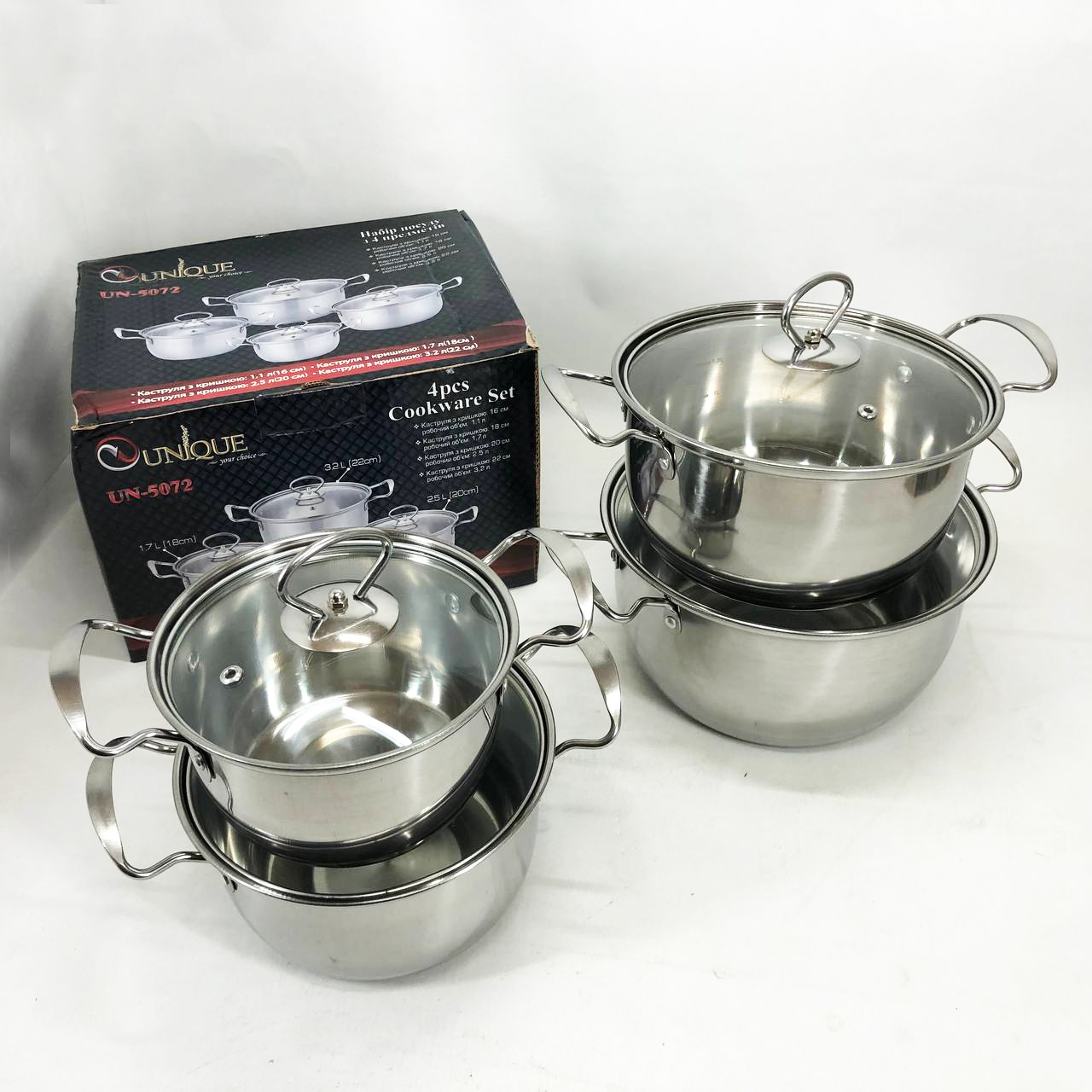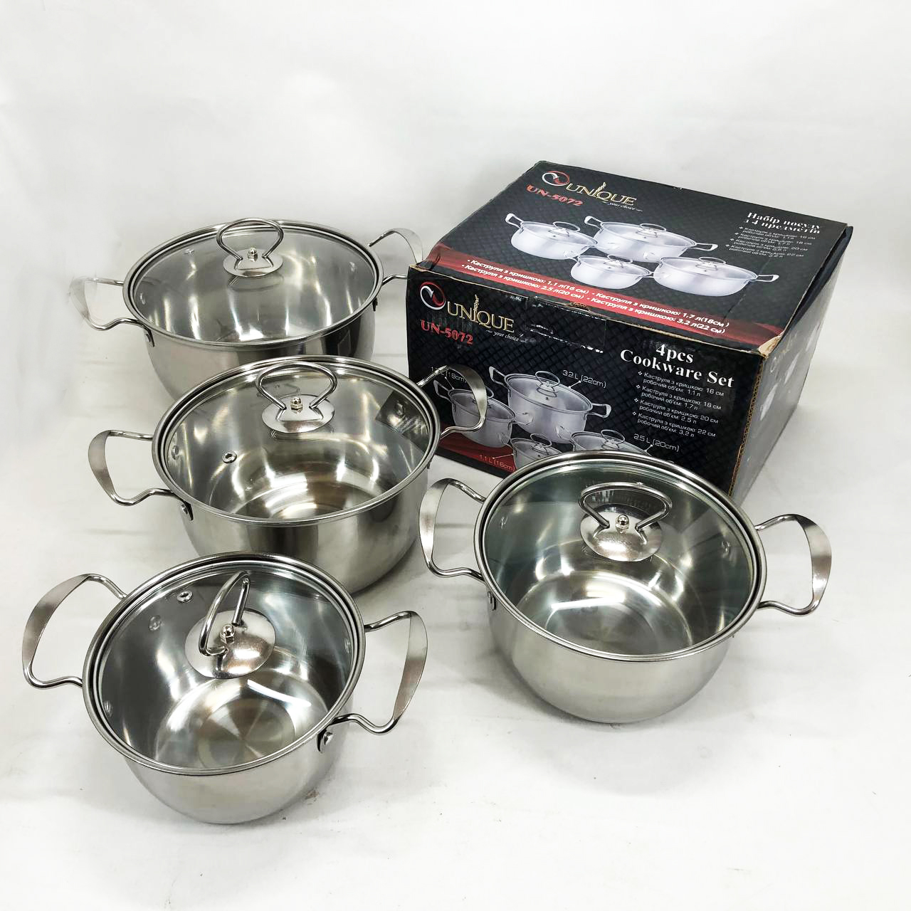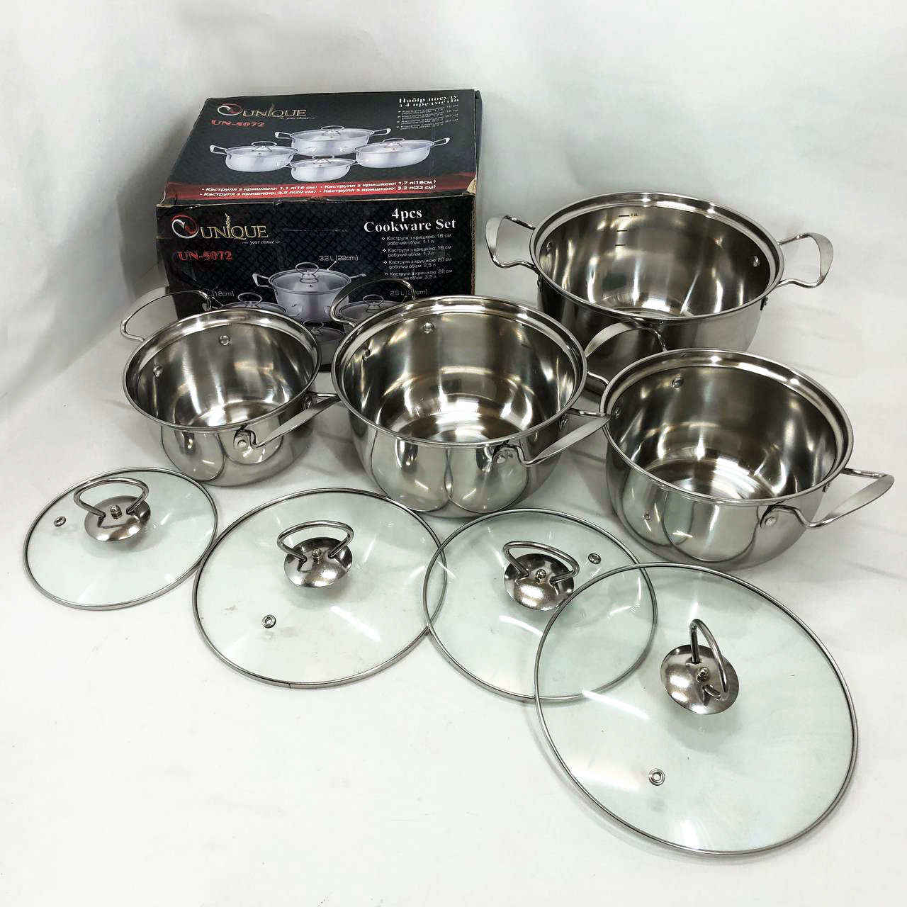 Набір каструль високоякісний UNIQUE UN-5072 8 предметів (1.3/ 1.7/ 2.4/ 3.9 л.) – 4 каструлі з кришками з нержавіючої сталі