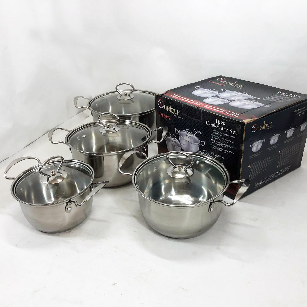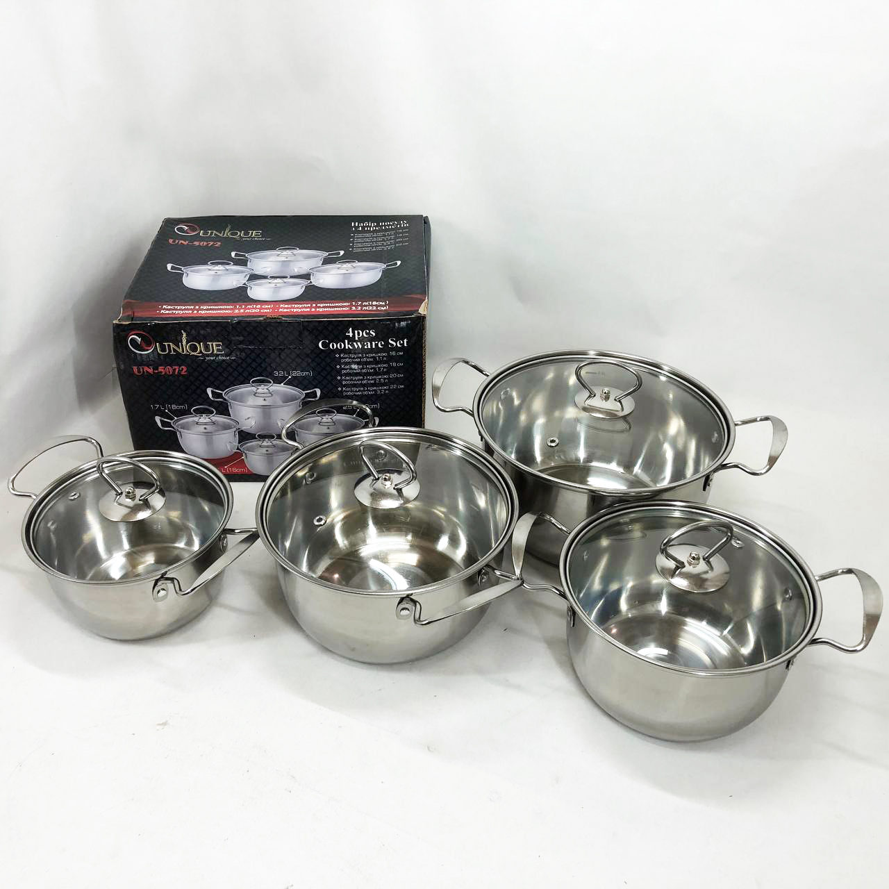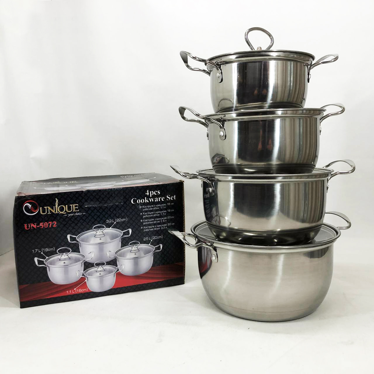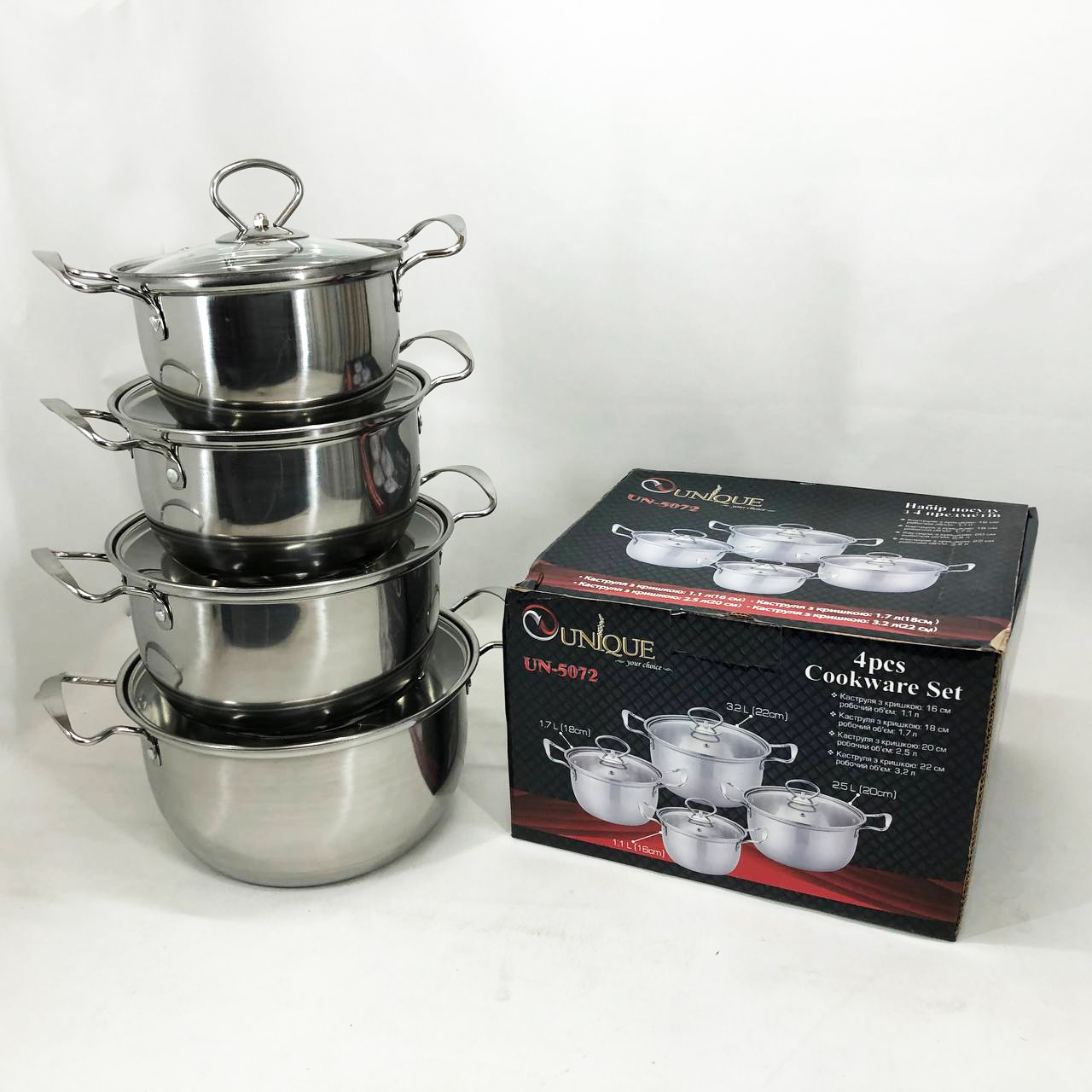 Набір каструль високоякісний UNIQUE UN-5072 8 предметів (1.3/ 1.7/ 2.4/ 3.9 л.) – 4 каструлі з кришками з нержавіючої сталі
