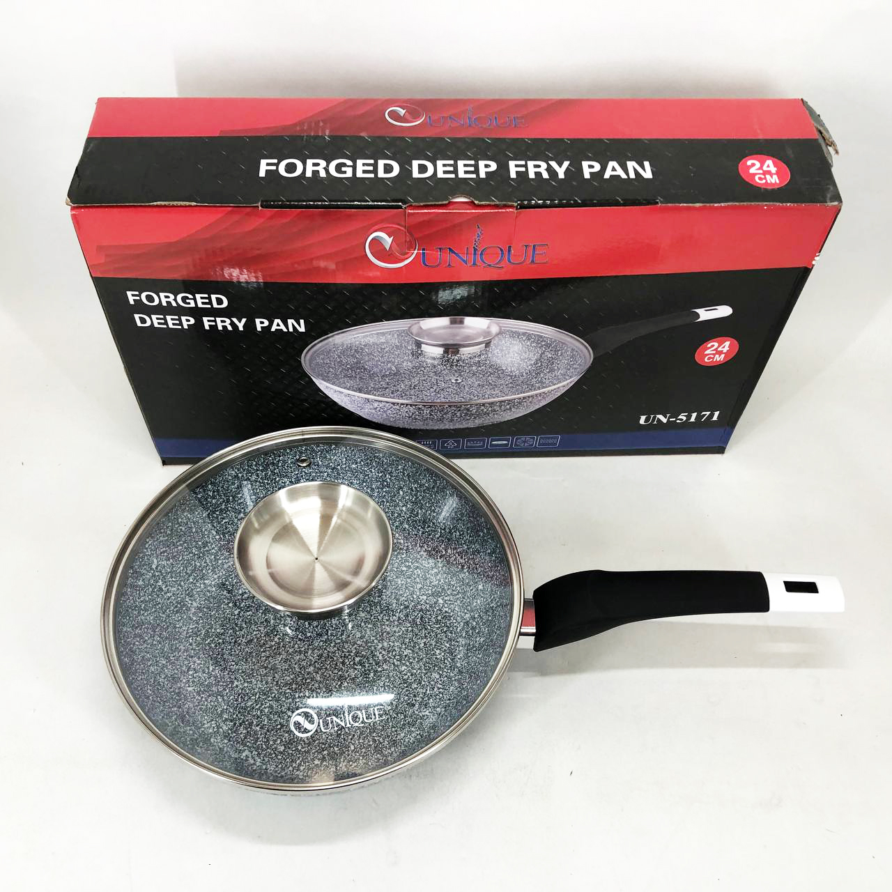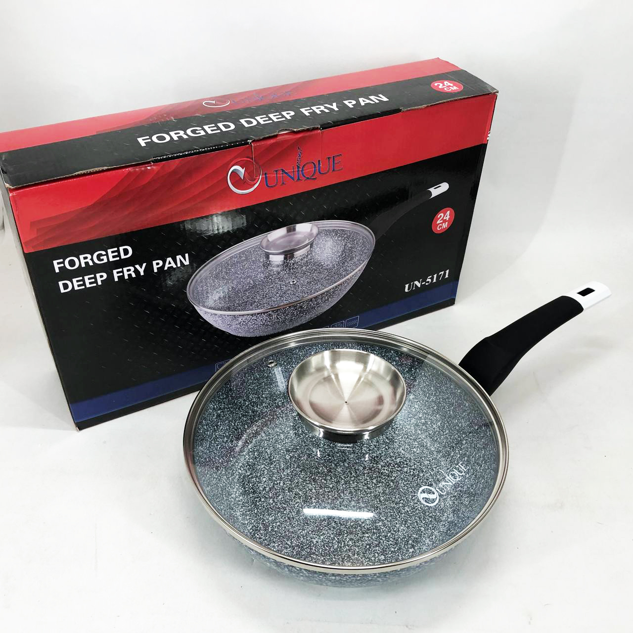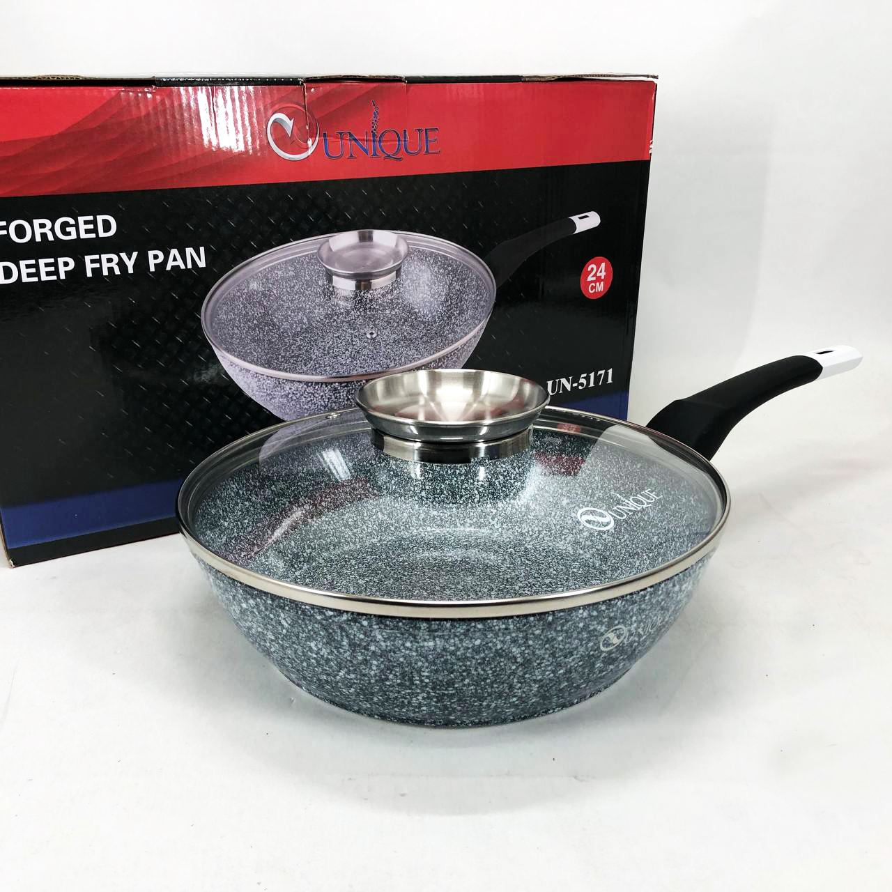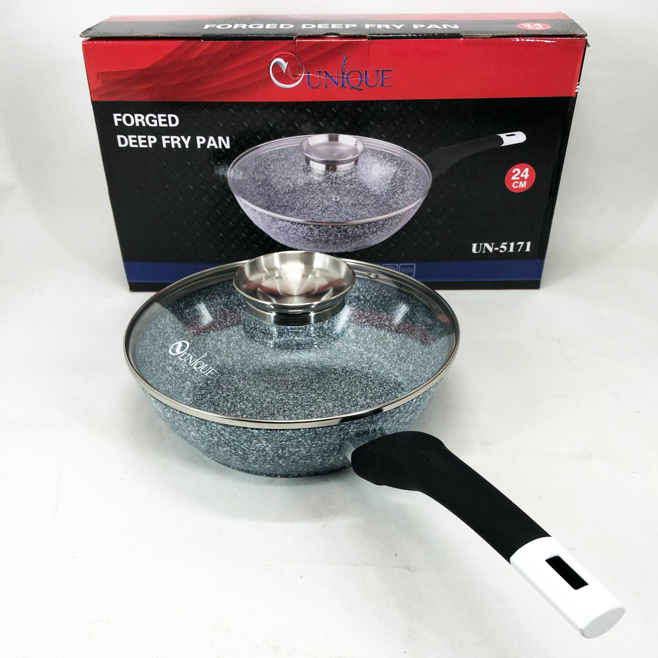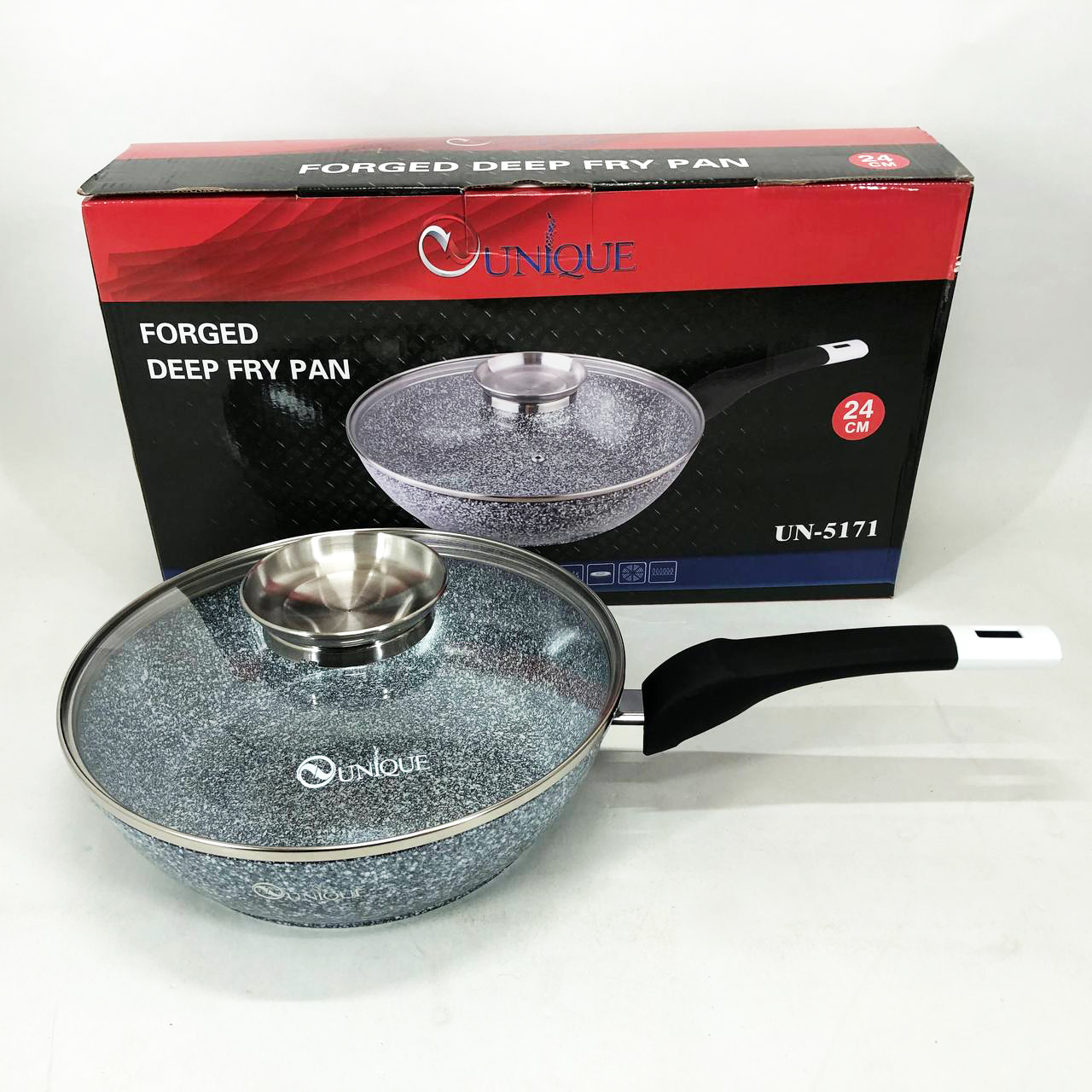 Глибока сковорода з кришкою Unique UN-5171 24 см, Сковорода для приготування на плиті, зручна на кухню